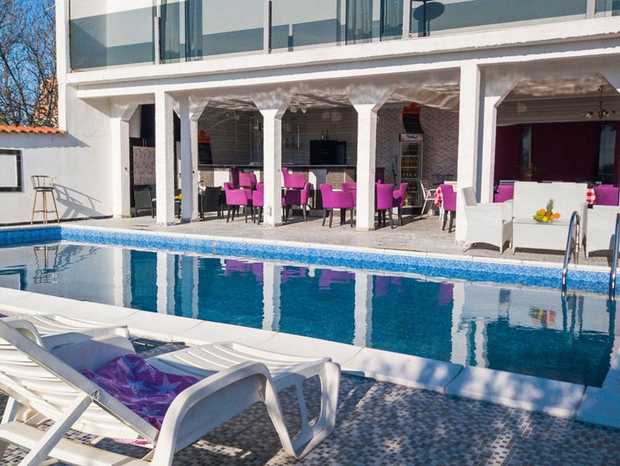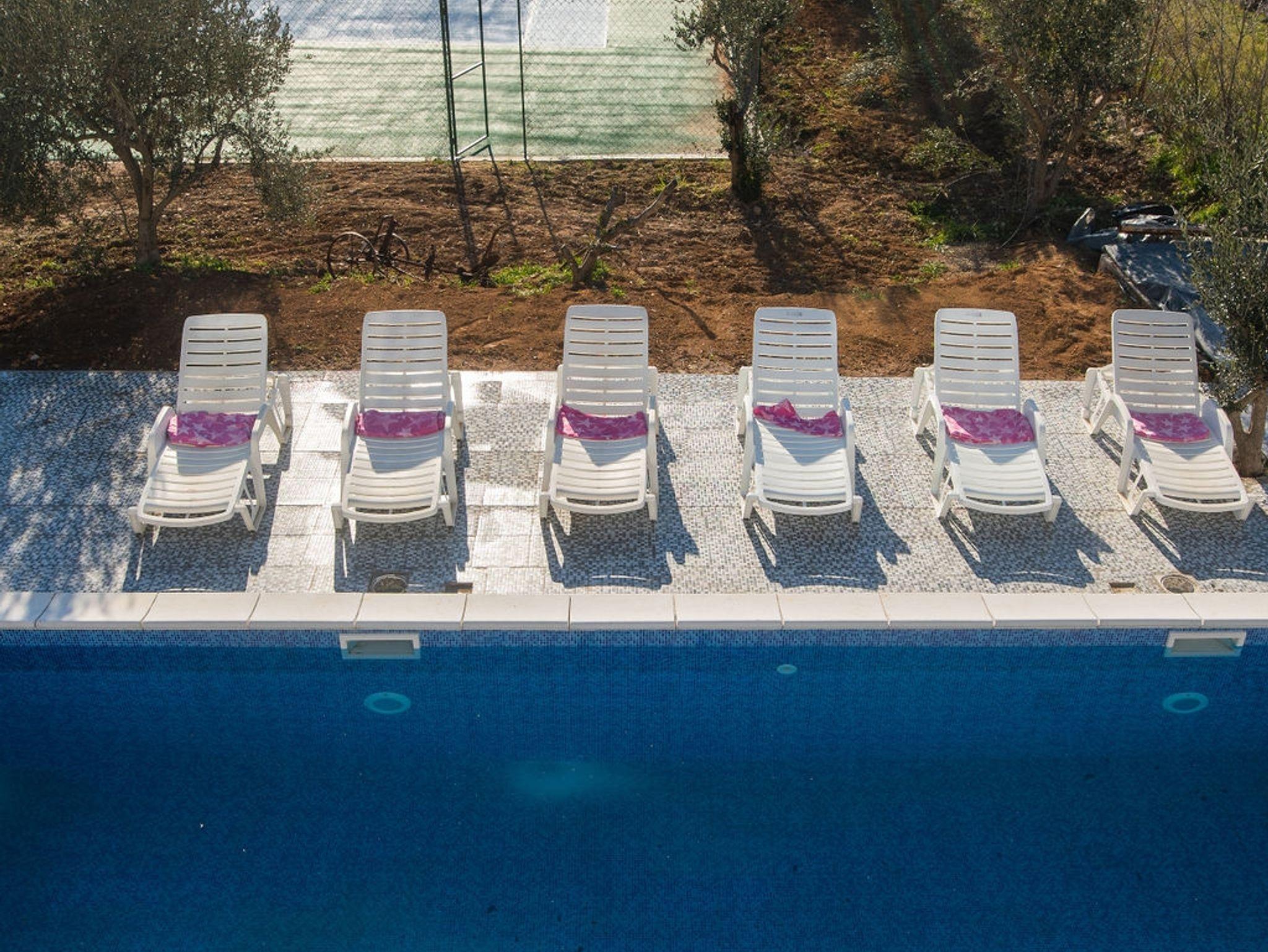 Haus bietet Platz für 15 Gäste. Die Betten sind in Schlafzimmern, die es 6 gibt, und in Wohnzimmer, innerhalb einer Gesamtfläche von 161m2, angeordnet. Die Gäste haben eine eigene Terrasse zur Verfügung, auf der sie in warmen Sommernächten genießen können. Das Haus bietet Meerblick. Für vollen Genuss und Entspannung gibt es einen privaten Grill für Gäste dieser Unterkunft. Während ihres Aufenthalts können sich Gäste im privaten Schwimmbad entspannen. In der Unterkunftseinheit besteht die Möglichkeit des Mitbringens von Haustieren, und die Dienstleistung ist im Preis der Unterkunft enthalten. IM PREIS INBEGRIFFEN: Kurtaxe, Endreinigung, Klimatisierung, Pool, Parkplatz, Internet, Haustiere, Bügeleisen, Föhn. Die Verfügbarkeit zusätzlicher Dienstleistungen in Ihrem reservierten Termin und die Preise derselben (falls nicht aufgeführt) müssen im Voraus überprüft werden. Zusätzliche Dienstleistungen die in der Zahlungsaufforderung nicht aufgeführt sind werden direkt beim Vermieter bezahlt, angenommen der Gast nutzt auch diese.