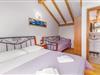 Den fortryllende landsby Lubenice på øen Cres ligger i en højde af 378 meter over havets overflade. Dette traditionelt og kærligt møblerede rækkehus med panoramaudsigt over havet strækker sig fra stueetagen til loftet med en åben hems, hvor der er en enkeltseng og en dobbeltseng. Dette feriehus er perfekt til aktive feriegæster og naturelskere, da omgivelserne er naturlige og varierede. Ved kysten kan I se Sveti Ivan, som er en stenstrand, der er meget berømt, men svær at nå for nogle. I kan nå stedet til fods via en stejl sti, men det er lettere at tage derhen med båd fra havnen, og på den måde får I også en fin sejltur. Minimumshøjden på loftet i soveværelset ovenpå er ca. 100 cm.