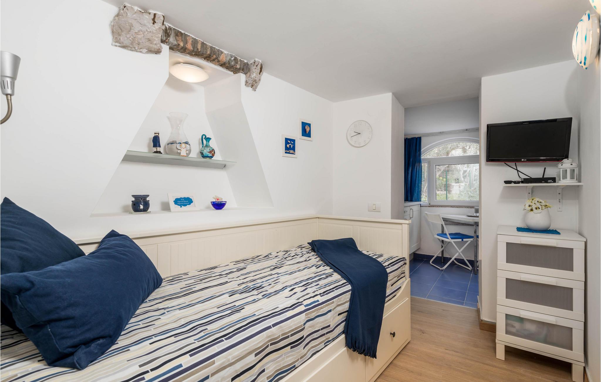 Tilbring en dejlig ferie nær en smuk kiesstrand på den smukke ø Cres i den lille by Miholašcici, hvor dette feriehus ligger. Bopælen er et rækkehus, som er et traditionelt eksempel på øens arkitektur. De hyggelige møbler og traditionelle funktioner er bevaret, og der er en parkeringsplads i nærheden, da hytten ligger cirka 30 meter fra vejen, der fører gennem landsbyen.