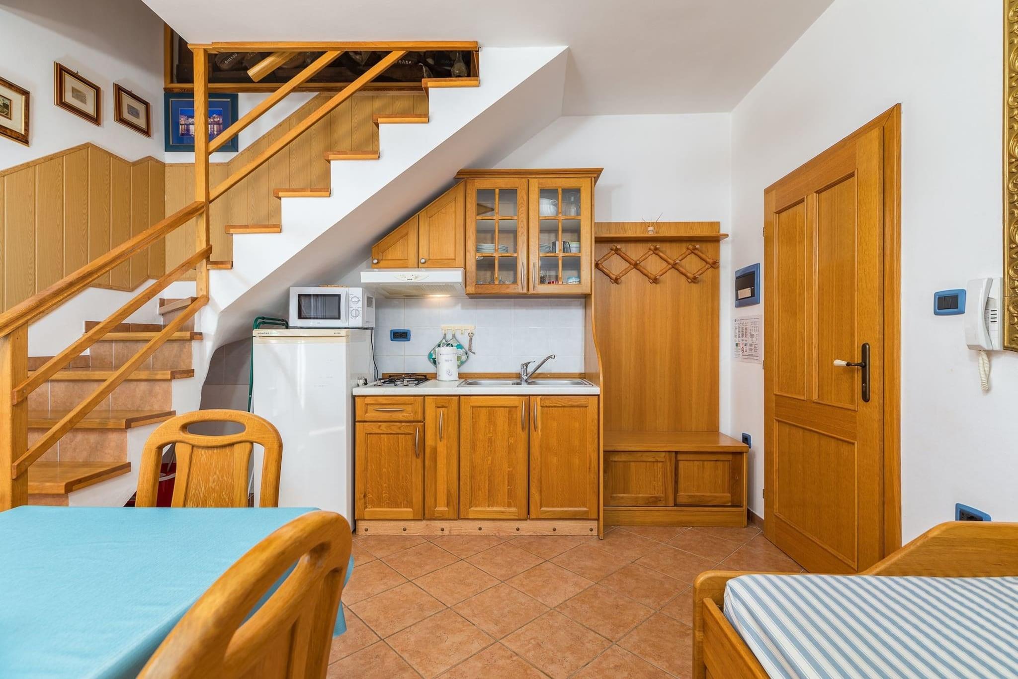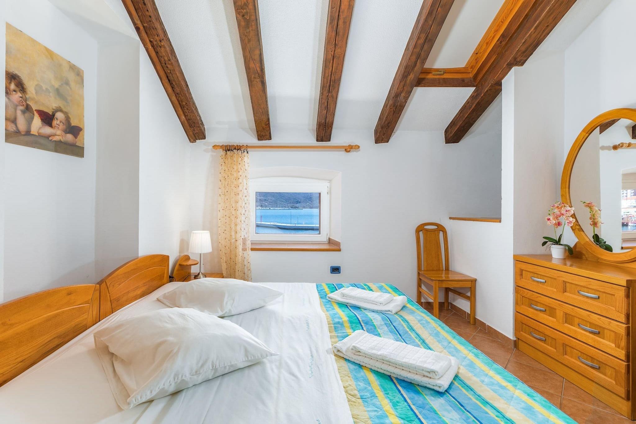 Beliggende i hjertet af den maleriske by Cres, tilbyder lejlighederne et perfekt tilflugtssted med en blanding af middelhavscharme og moderne komfort. Denne dejlige lejlighed på 1. sal kan rumme op til 5 gæster, og byder på en fortryllende havudsigt fra køkkenvinduet. Opholdsområdet omfatter en fleksibel seng ved siden af spisebordet, mens galleriværelset byder på en fantastisk havudsigt og en dobbeltseng med en ekstra enkeltseng. Badeværelset leveres med både bruser og badekar for din bekvemmelighed. Gæsterne vil nyde nem adgang til den smukke gamle bydel i Cres, kun få skridt væk fra bygningen. Udforsk de charmerende gader og nyd middelhavsatmosfæren. Selvom ejendommen ikke tilbyder parkering på selve ejendommen, er der flere parkeringsmuligheder placeret 300 meter til 1 km væk, og gæsterne kan midlertidigt parkere ved siden af bygningen for at læsse bagage af. For ekstra bekvemmelighed har gæsterne adgang til et fælles vaskerum med vaske- og strygefaciliteter (tilgængelig efter fælles aftale med ejeren). Øen Cres er tilgængelig med færge, og dens rige historie og naturlige skønhed vil helt sikkert fange enhver besøgende. Området er perfekt til svømning, vandreture i naturen eller til at udforske de omkringliggende øer, herunder det nærliggende Krk. Med aircondition, Wi-Fi og et tv giver denne lejlighed et behageligt og afslappende ophold, ideelt for dem, der søger et fredeligt tilflugtssted i en historisk rig beliggenhed. Kæledyr er tilladt (mod et ekstra gebyr), hvilket gør det til et godt valg for familier eller kæledyrsejere.