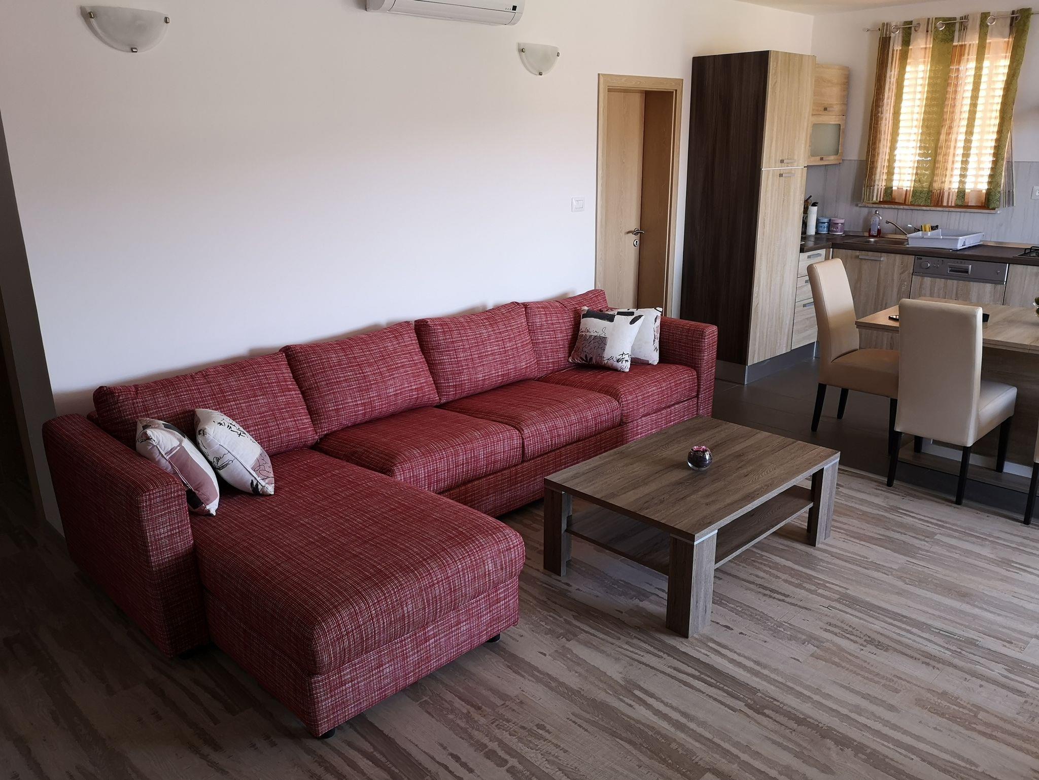 Ferienwohnung bietet Platz für 4 Gäste. Die Betten sind in Schlafzimmern, die es 2 gibt, innerhalb einer Gesamtfläche von 72m2, angeordnet. Die Gäste haben eine eigene Terrasse zur Verfügung, auf der sie in warmen Sommernächten genießen können. Für vollen Genuss und Entspannung gibt es einen privaten Grill für Gäste dieser Unterkunft. IM PREIS INBEGRIFFEN: Kurtaxe, Endreinigung, Klimatisierung, Parkplatz, Internet, Bügeleisen, Bügelbrett, Föhn. VERBINDLICHE ZUSÄTZLICHE KOSTEN: Aufzahlung für Kurzaufenthalte (prozentualer Zuschlag pro Nächtigungsanzahl: 30% - 1, 20% - 2, 10% - 3). Die Verfügbarkeit zusätzlicher Dienstleistungen in Ihrem reservierten Termin und die Preise derselben (falls nicht aufgeführt) müssen im Voraus überprüft werden. Zusätzliche Dienstleistungen die in der Zahlungsaufforderung nicht aufgeführt sind werden direkt beim Vermieter bezahlt, angenommen der Gast nutzt auch diese. Ermäßigung auf den Grundpreis: Gratistag 14=13 (bei einem Aufenthalt von 14 Tagen oder mehr erhalten Sie einen Gratistag für den Aufenthalt bis 31.12.26).