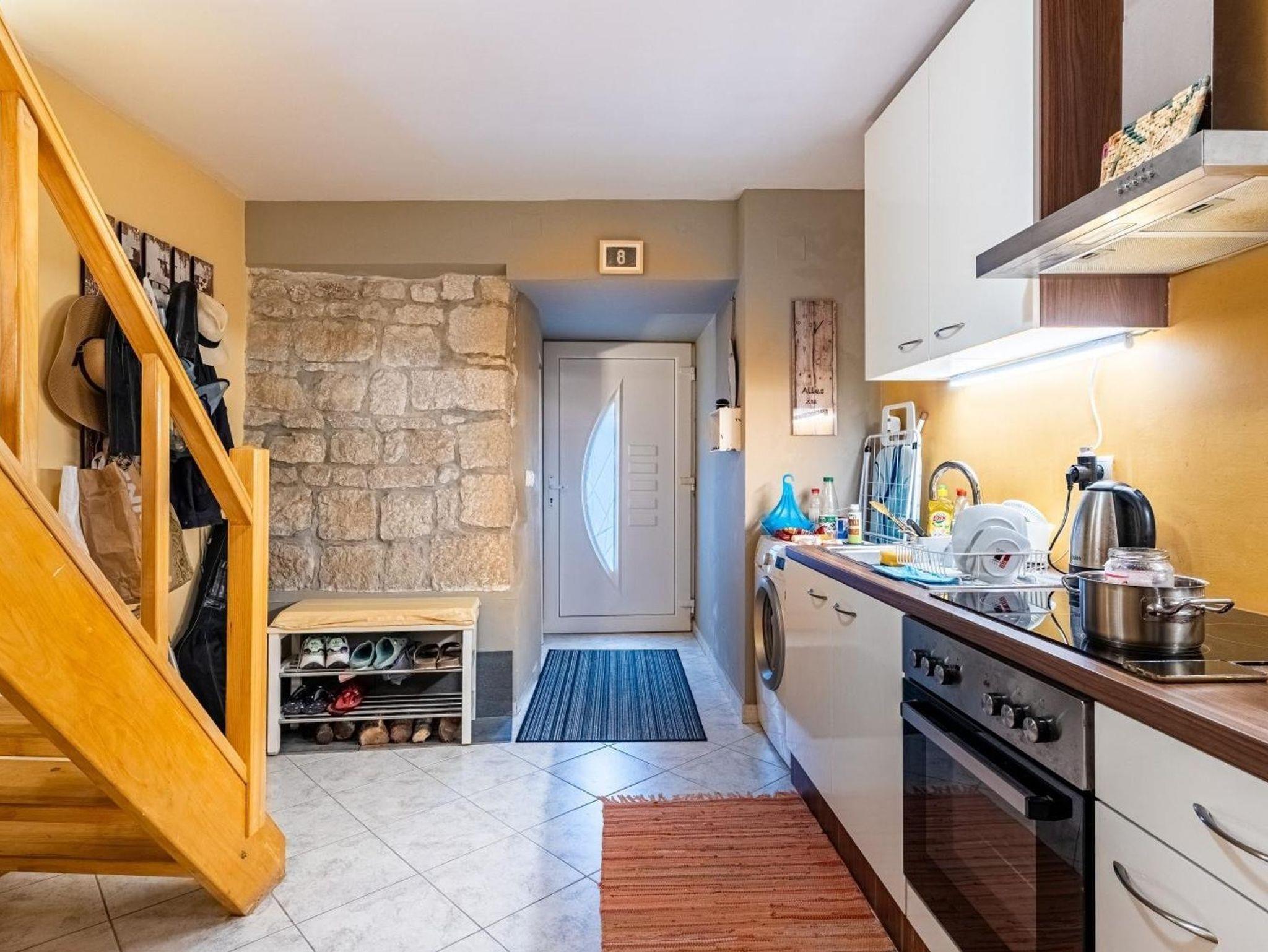 Haus bietet Platz für 5 Gäste. Die Betten sind in Schlafzimmern, die es 2 gibt, und in Wohnzimmer, innerhalb einer Gesamtfläche von 61m2, angeordnet. Die Gäste haben einen eigenen Balkon zur Verfügung, auf der sie in warmen Sommernächten genießen können. IM PREIS INBEGRIFFEN: Kurtaxe, Endreinigung, Klimatisierung, Internet, Bügeleisen, Bügelbrett, Föhn. VERBINDLICHE ZUSÄTZLICHE KOSTEN: Aufzahlung für Kurzaufenthalte (prozentualer Zuschlag pro Nächtigungsanzahl: 30% - 1, 20% - 2, 10% - 3). Die Verfügbarkeit zusätzlicher Dienstleistungen in Ihrem reservierten Termin und die Preise derselben (falls nicht aufgeführt) müssen im Voraus überprüft werden. Zusätzliche Dienstleistungen die in der Zahlungsaufforderung nicht aufgeführt sind werden direkt beim Vermieter bezahlt, angenommen der Gast nutzt auch diese. Ermäßigung auf den Grundpreis: Gratistag 14=13 (bei einem Aufenthalt von 14 Tagen oder mehr erhalten Sie einen Gratistag für den Aufenthalt bis 31.12.26).