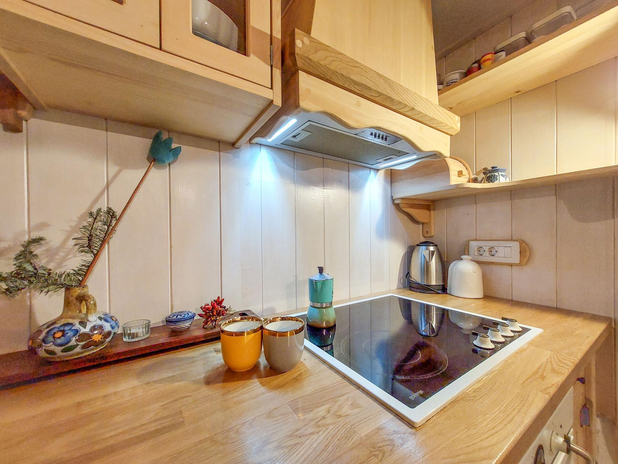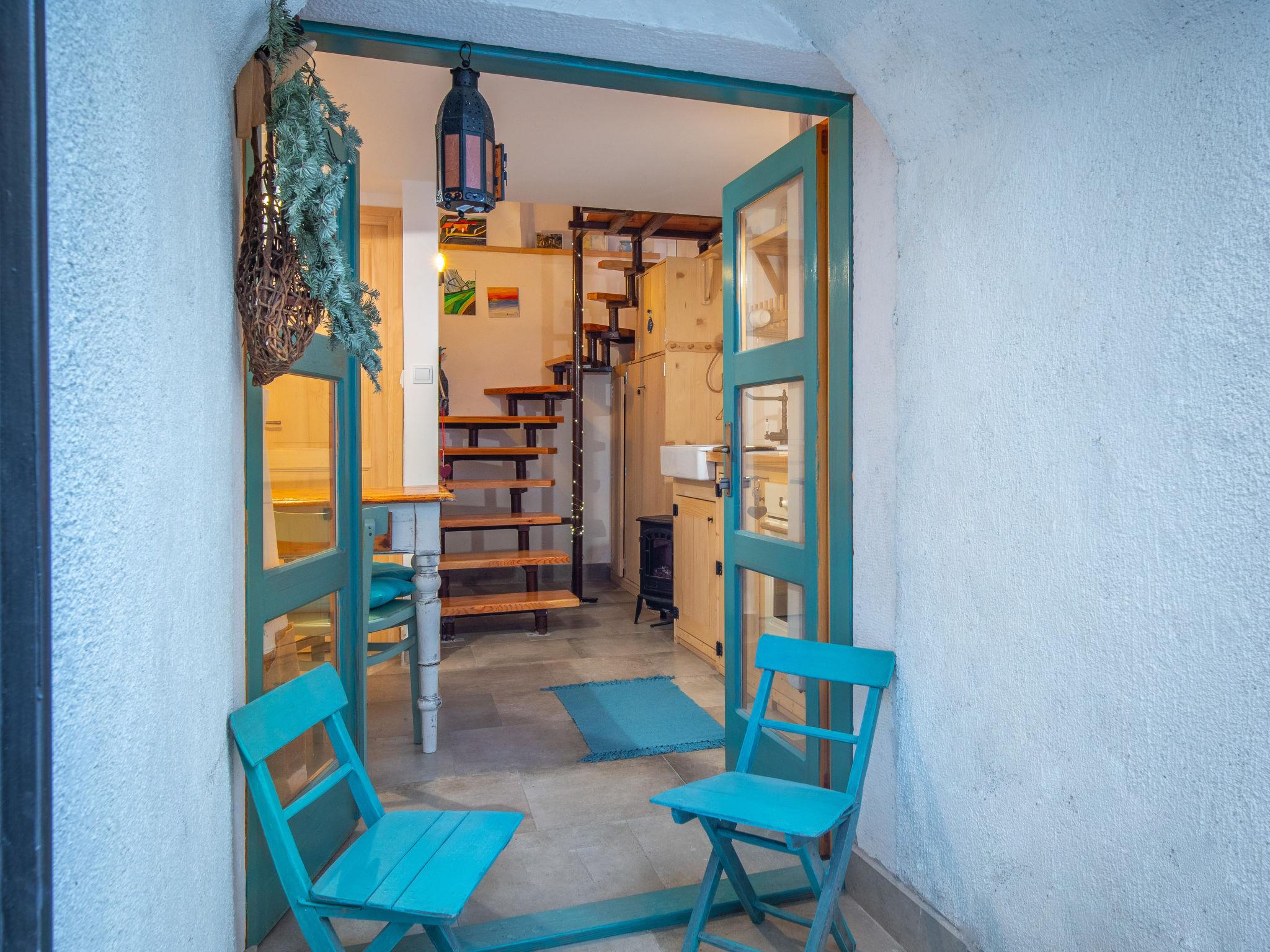 3-room terraced house 65 m2 on 3 levels. Tasteful and cosy furnishings: kitchen (4 hot plates, oven, 4 ceramic glass hob hotplates, kettle) with shower/WC. Upper floor: (spiral staircase) living room with separate WC. Exit to the balcony. 2nd upper floor: (spiral staircase) with 1 french bed (1 x 160 cm, length 200 cm), separate WC and air conditioning. 3nd upper floor: (spiral staircase), 1 room with sloping ceilings, ceiling height 150 - 250 cm with 2 beds (80 cm, length 200 cm), separate WC and air conditioning. Facilities: Internet (WiFi, free).