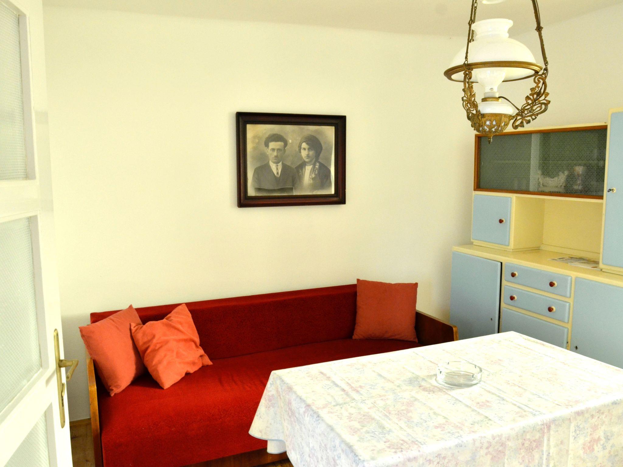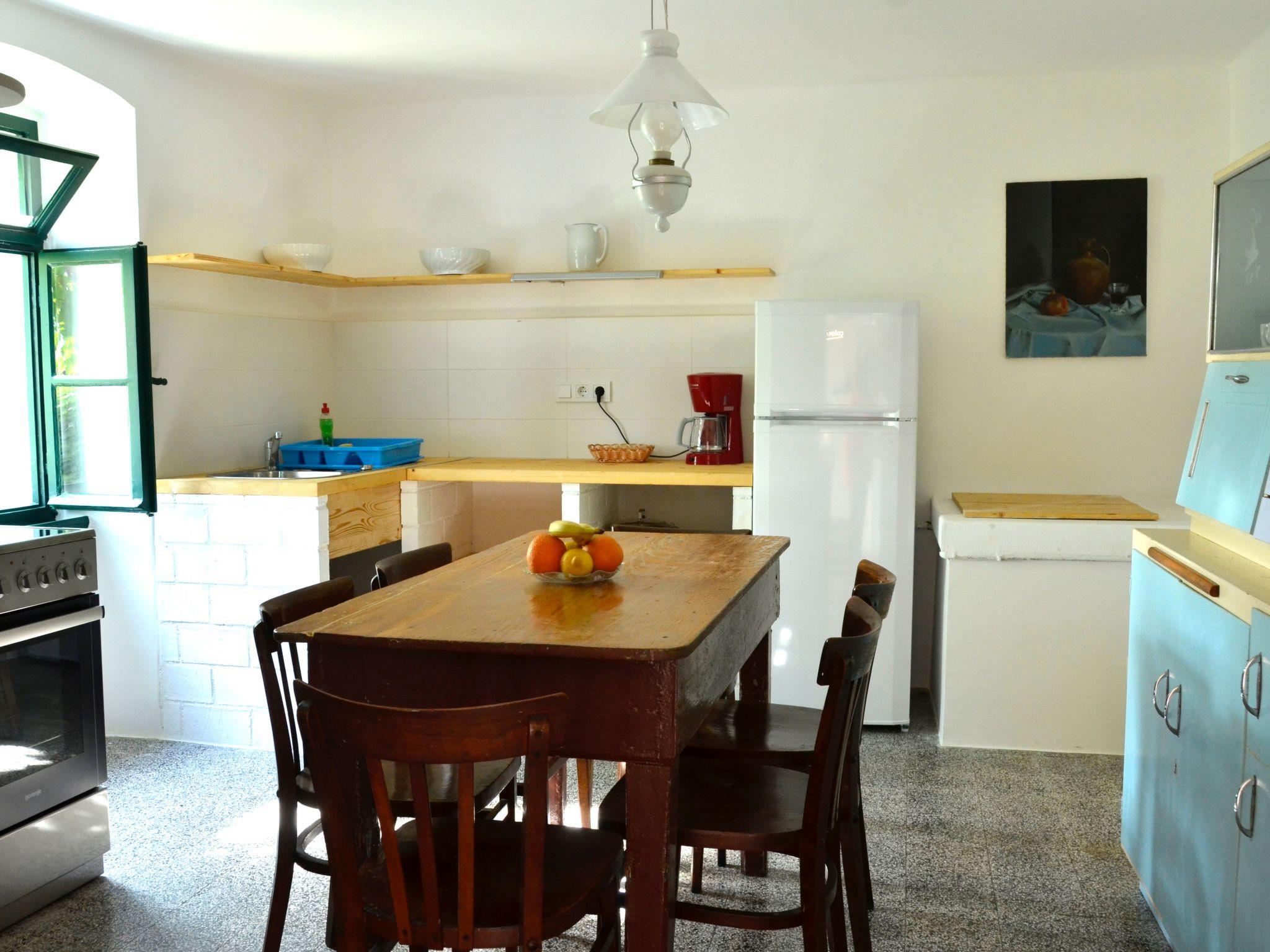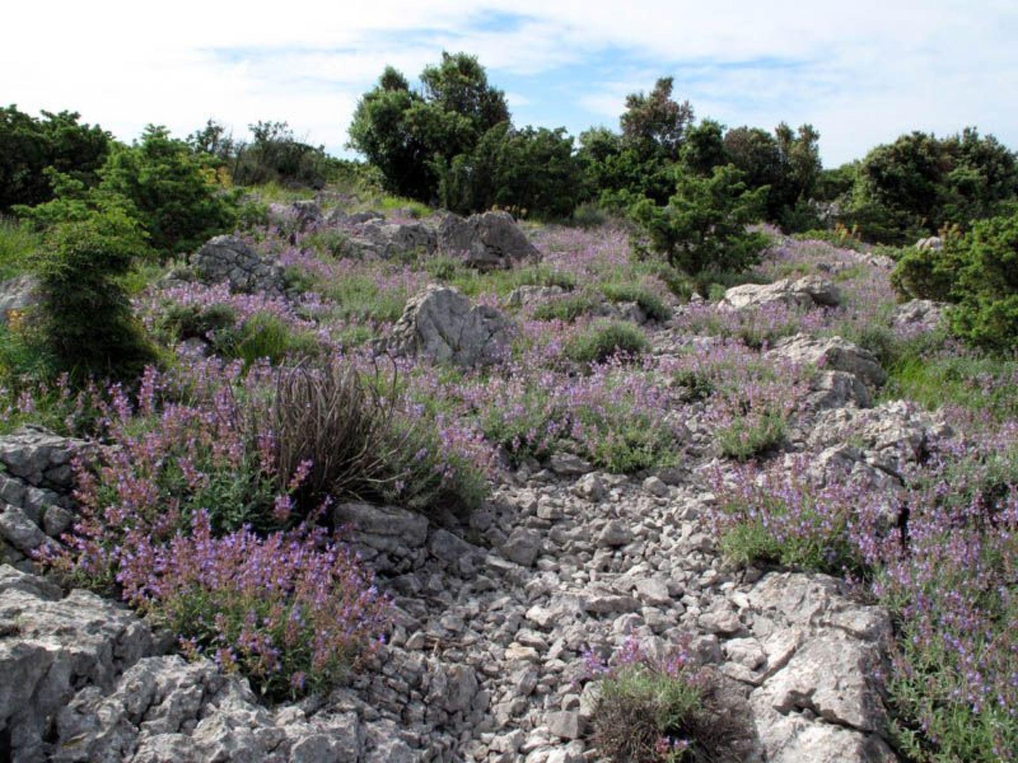 The holiday home is located in the centre of the old shepherd's village of Stivan on the Croatian island of Cres. The sea is just a 15-minute walk away along a picturesque winding road. You can be there in 5 minutes by car. The house is located directly in the old village centre near the church and next to the grocery shop. In front of the house there is a meadow with olive trees and in the surrounding area there are green fields, macchia-covered rocky land and old sheep pastures. Hiking, herb picking and cycling tours are possible in the immediate neighbourhood. Water sports such as diving, snorkelling or windsurfing down by the sea.