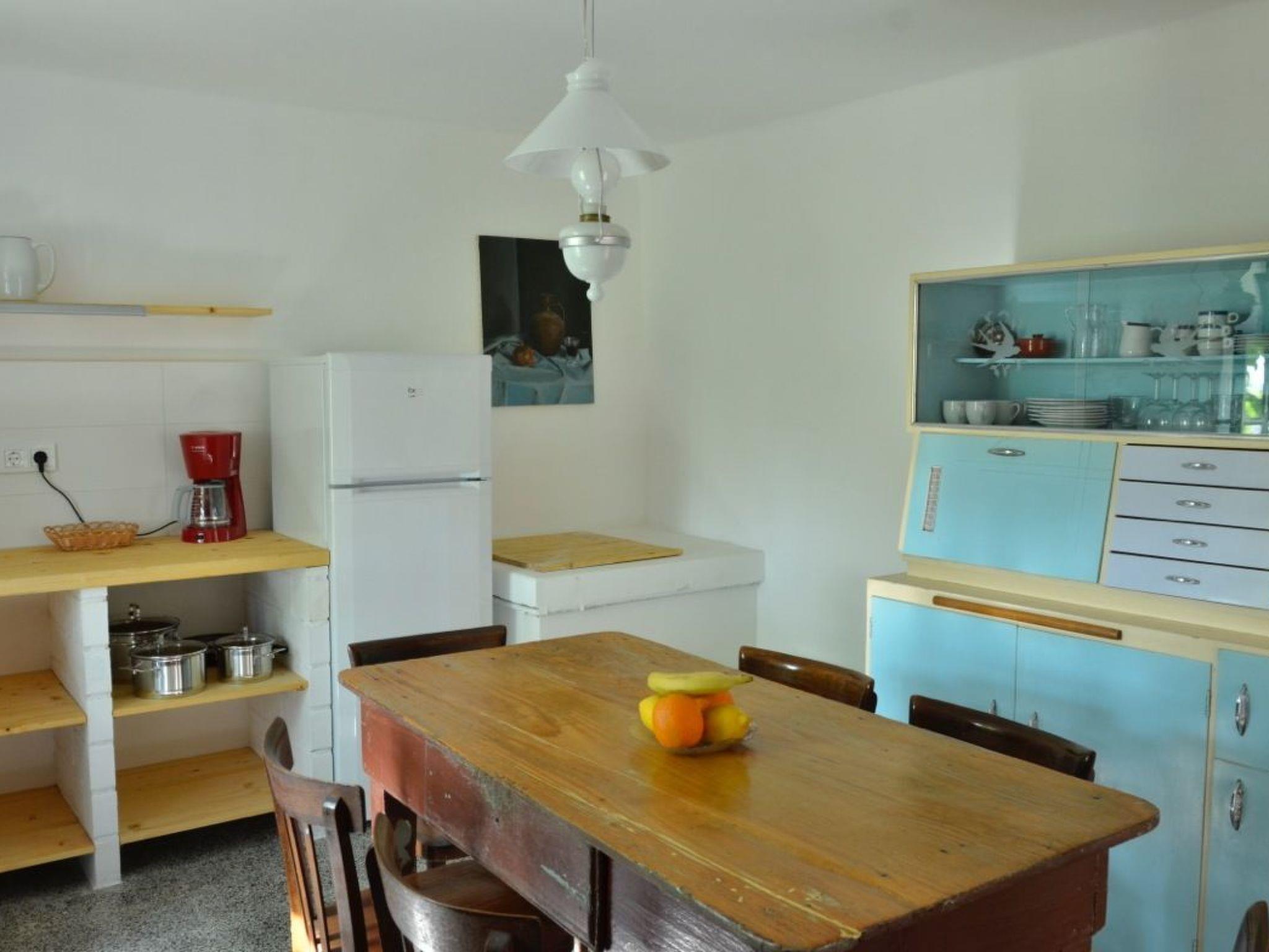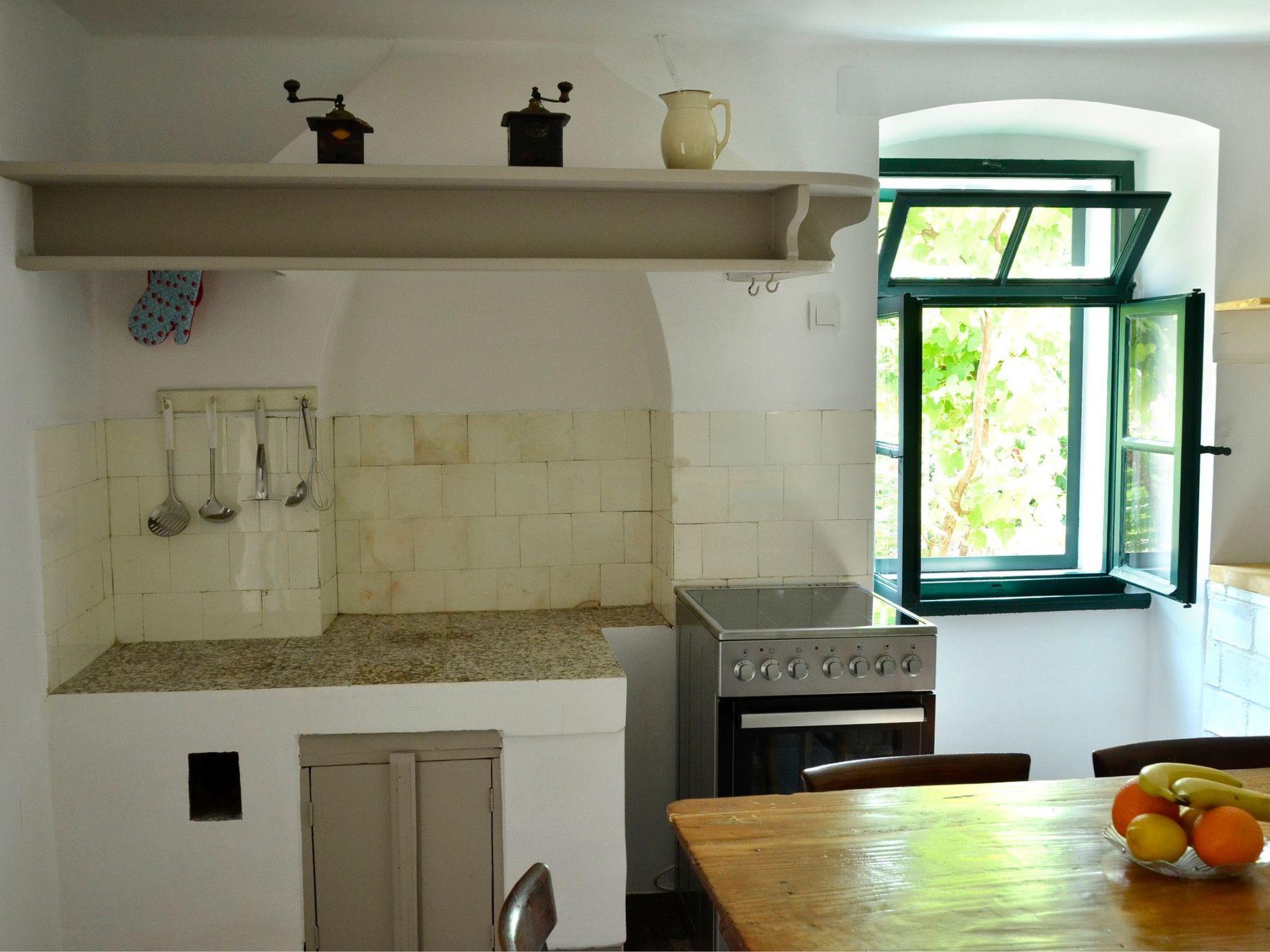 The old shepherd's house was lovingly restored in 2016 in its original style, combining modern comfort with the charm of days gone by. It has two bedrooms, a bathroom with shower/bathtub, a large kitchen and a living room with balcony. From the two bedrooms on the upper floor, you can look directly over the vine leaves, rosemary and the village roofs down to the sea. Both beds are double beds and, like the furniture, are partly original pieces from the beginning of the last century. Mattresses and pillows are of course modern and have just been renewed. The bathroom is also on the upper floor and is located in the corridor between the two rooms; it has a small window that also faces the sea. The large kitchen with dining area is on the ground floor and is equipped with all modern conveniences. The special charm lies in the preservation of the old fire hob with smoke extractor, into which the modern electric cooker is now integrated. Here, too, you will find antique furniture mixed with modern pieces that create a very special atmosphere. The living room is located opposite the kitchen, connected by the hallway. There is a sofa bed on which another person can sleep. A flatscreen TV with satellite reception is also available here. The balcony leads off the living room, where there is another dining area and from which you have a wonderful view over the fig tree to the church and the old sheep pastures in the distance.