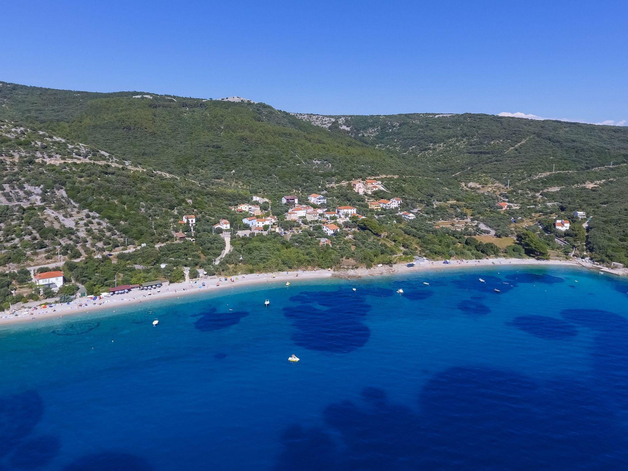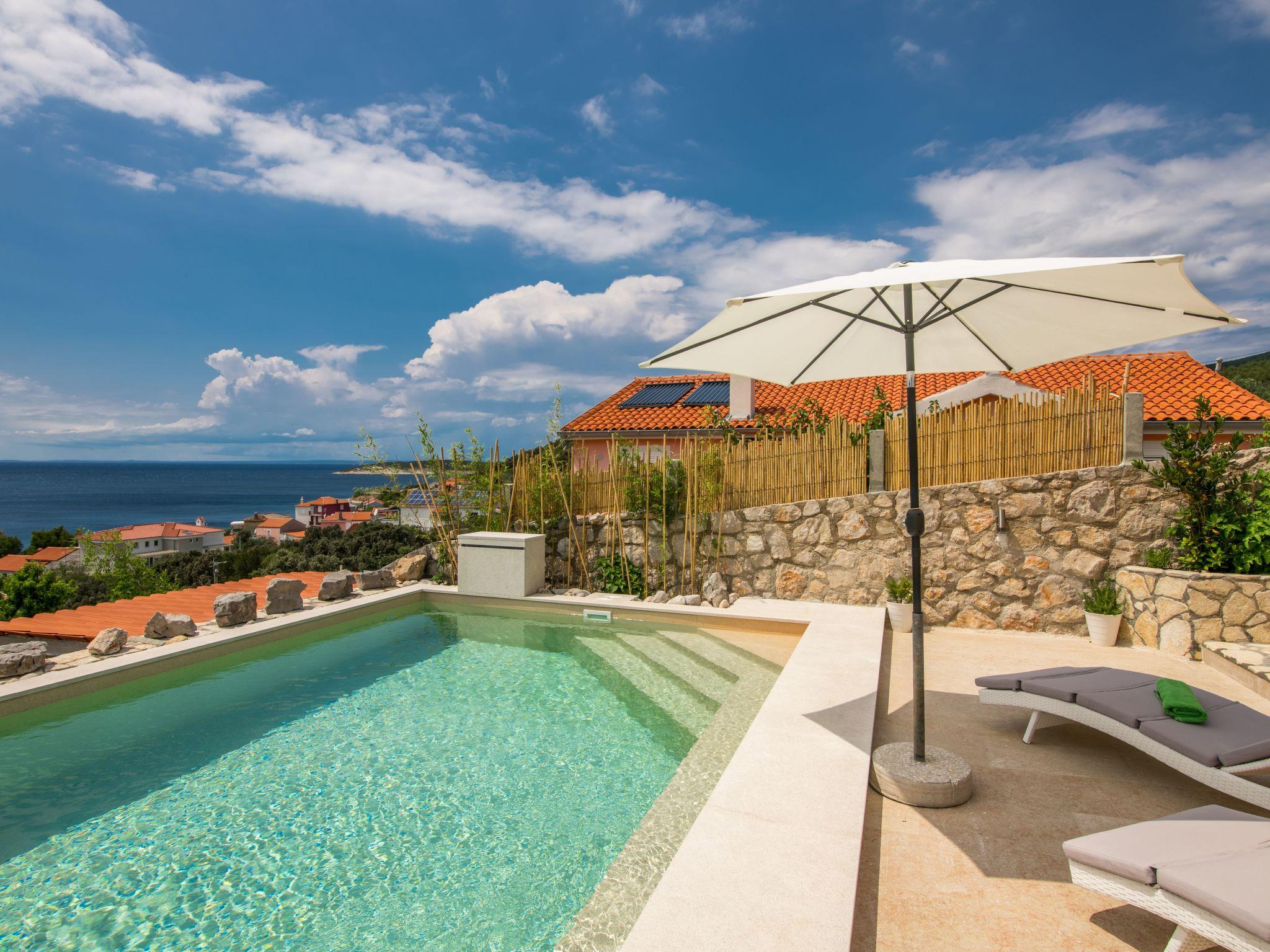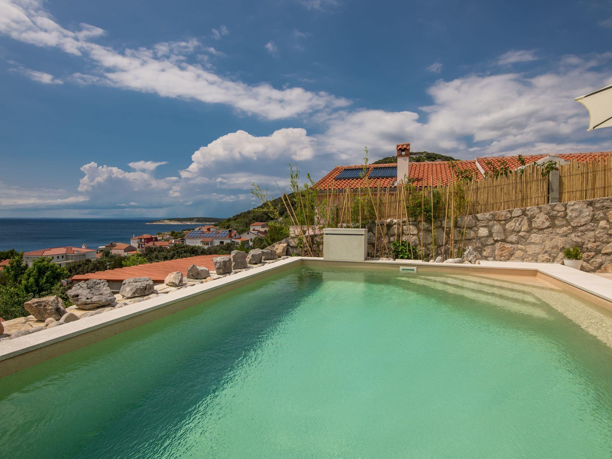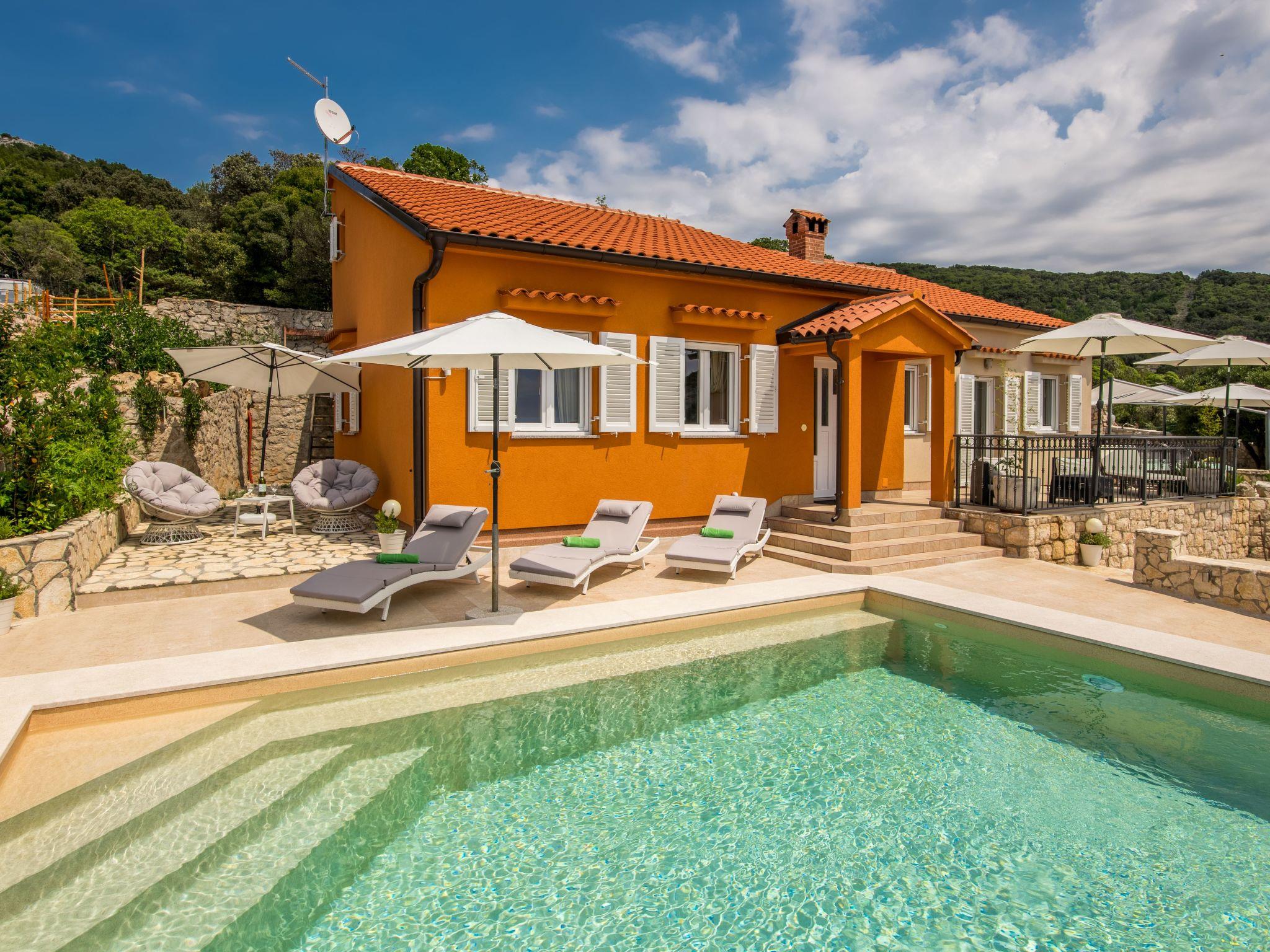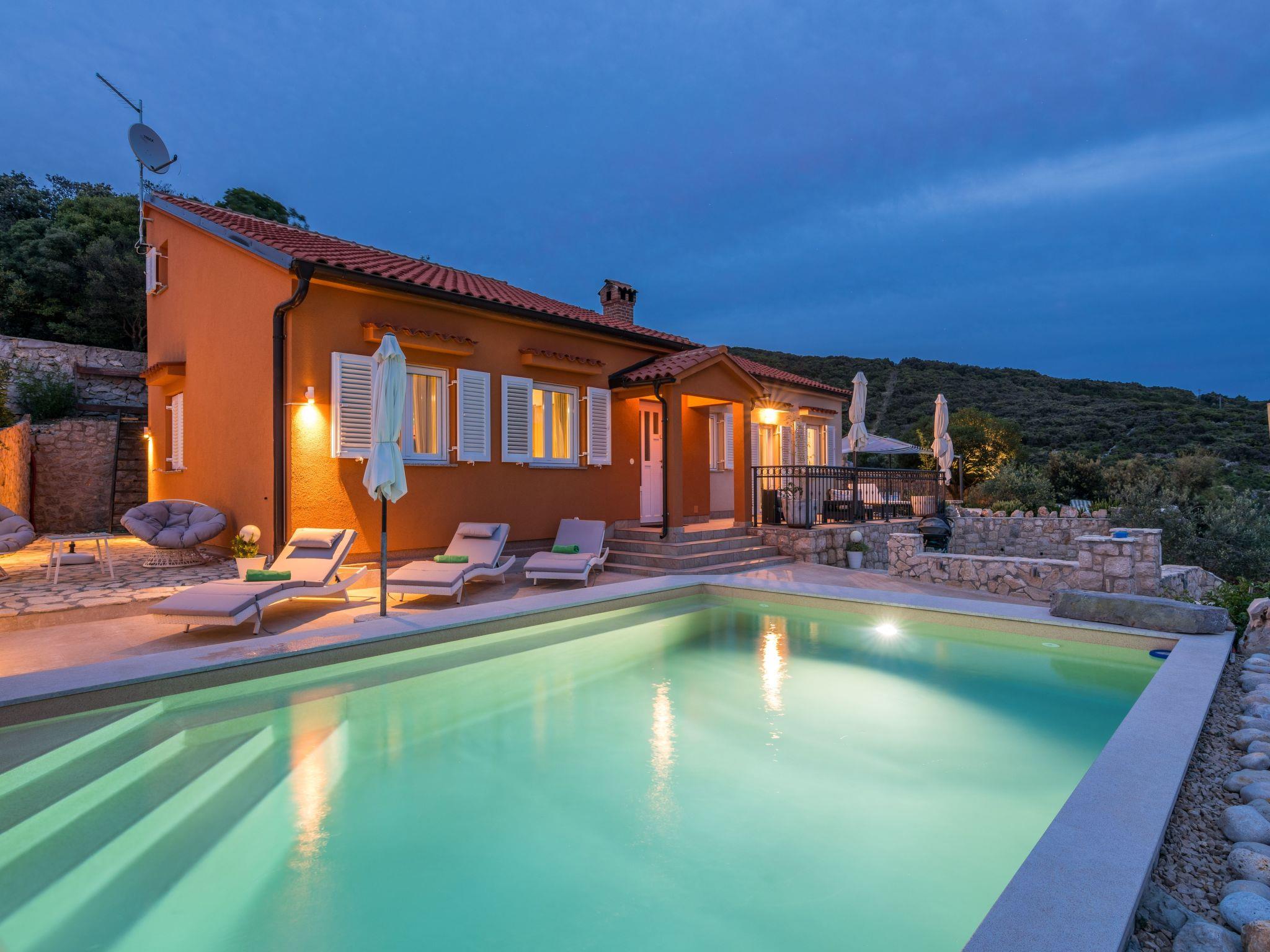 This fully enclosed holiday villa is located in the picturesque village of Miholascica on the sunny Croatian island of Cres. It is situated on a private vantage point in a green setting, just a walk of approximately three minutes from the beach (250 m distance).