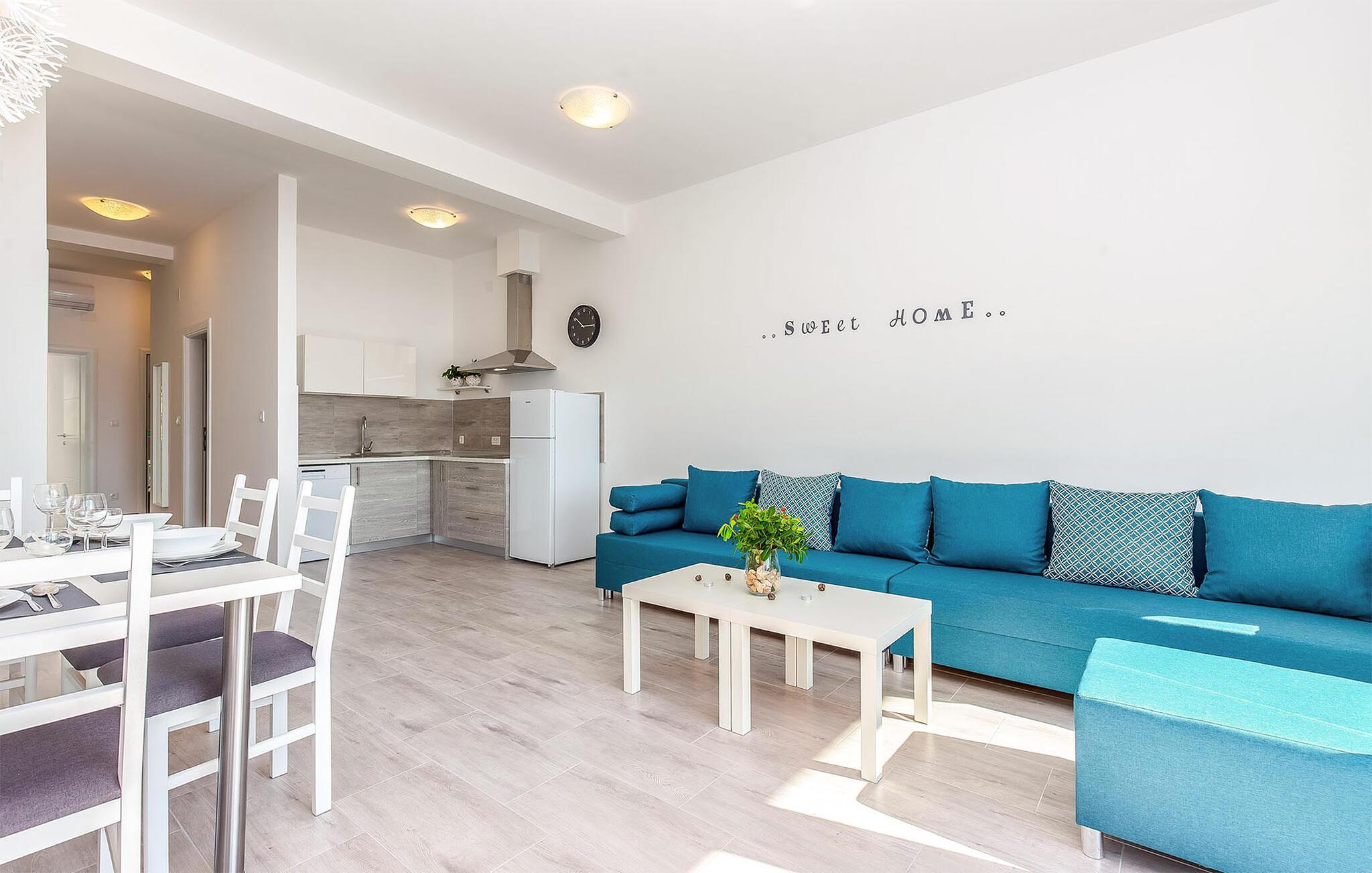 Tag familien under armen og lad turen gå til Dramalj, hvor der venter jer en fremragende ferie i denne lejlighed. Boligen ligger i samme bygning om andre lejligheder. Det gør det til et oplagt valg for jer, der gerne vil rejse som en større gruppe, uden at give køb på hverken privatlivet eller den gode komfort. Lejligheden fremtræder flot og indbydende med mange glimrende faciliteter; kort sagt alt, I får brug for for at kunne slappe helt og aldeles af. Find jer godt til rette på jeres terrasse eller altan med en god bog. Når middagsheden er ved at få jer, er det bare gå de få meter ned til den fælles pool for et friskt dyp. Poolen deles med kompleksets andre gæster, og det samme gør det lækre spabad, hvor I kan sidde i boblerne og nyde solen, infrn I soltørrer på terrassen og begiver jer på udflugt.