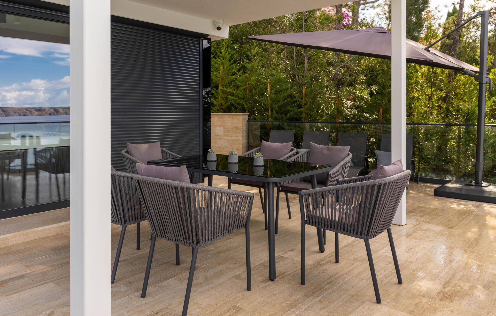På den smukke panoramaterrasse kan I lade udsigten feje over havet. Snup en frisk dukkert i den storslåede pool, nyd en solnedgang i den indbydende lounge, og tænd op i grillen om aftenen for at snakke om sommernatten med vin og stearinlys.