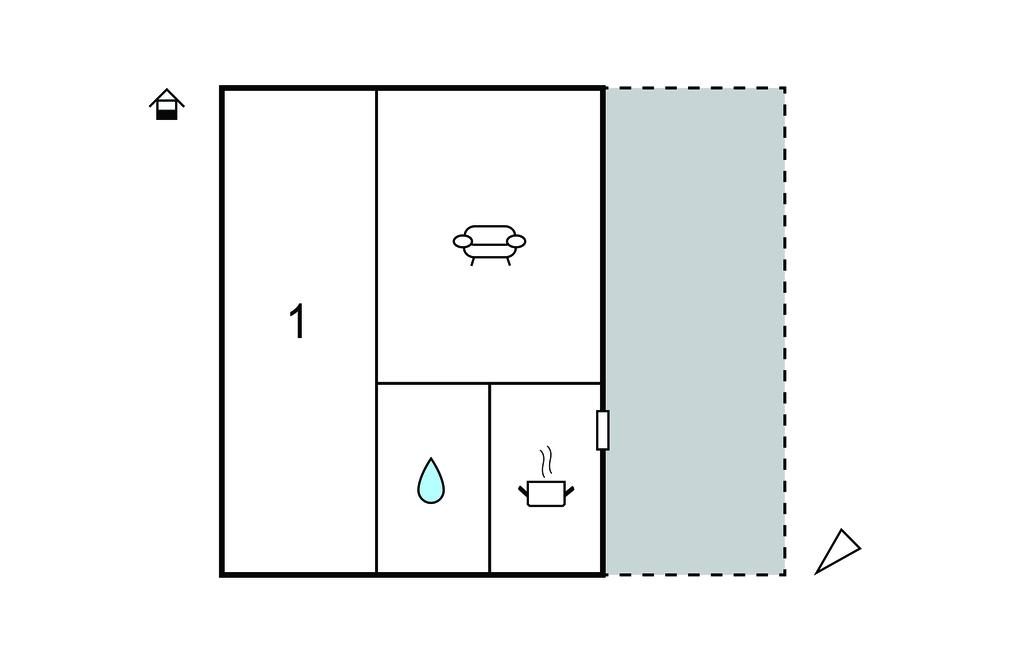 Opholdsstue 20m2 - 2 Sovepladser. (Sofa, madras eller lignende).