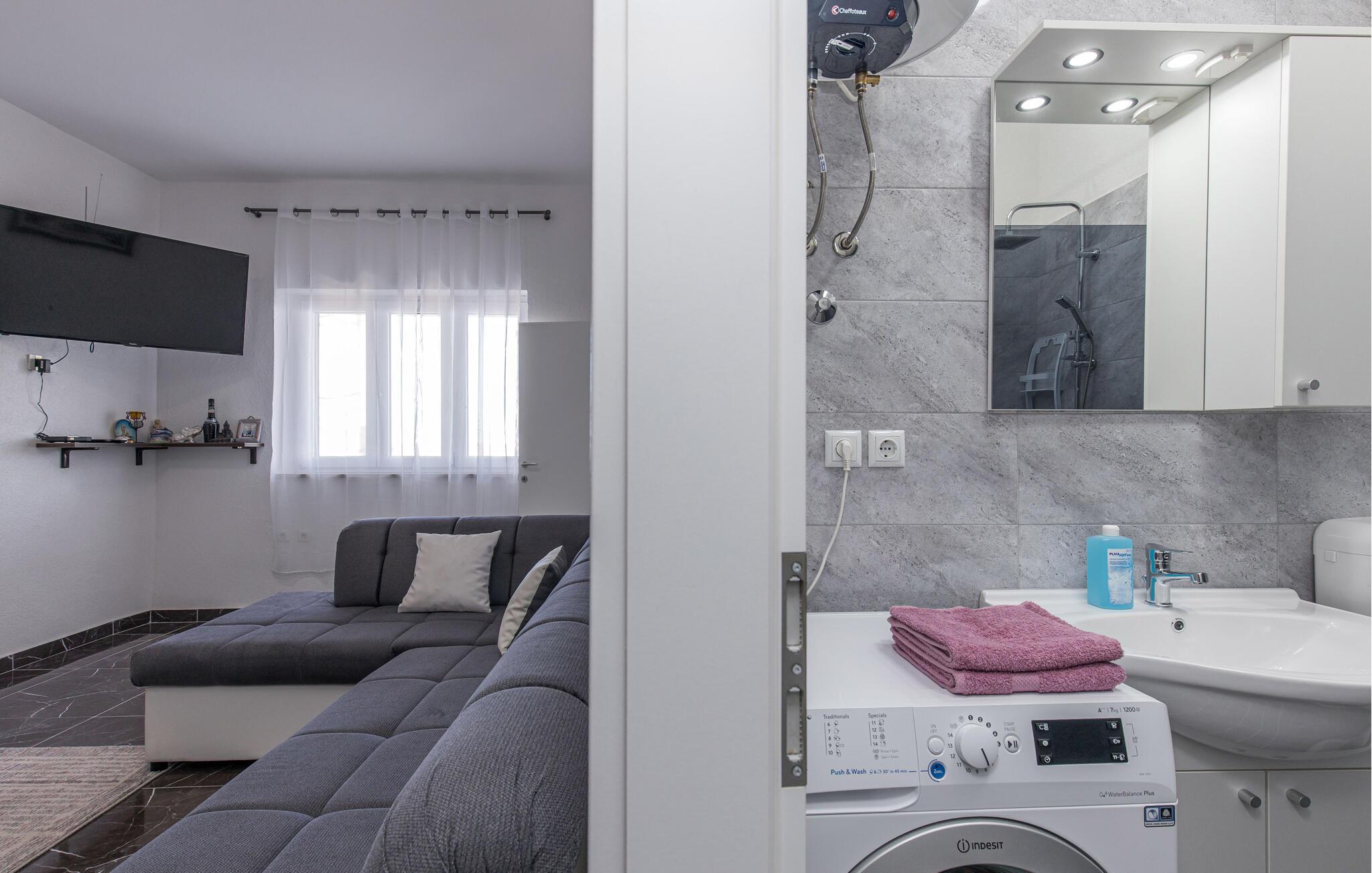 Denne moderne møblerede ferielejlighed tilbyder en skøn oase under en varieret ferie ved Adriaterhavskysten. Planlæg jeres aktiviteter, mens I spiser ved spisebordet, og efter en lang dag kan I læne jer tilbage i sofaen med et brætspil eller en god bog.