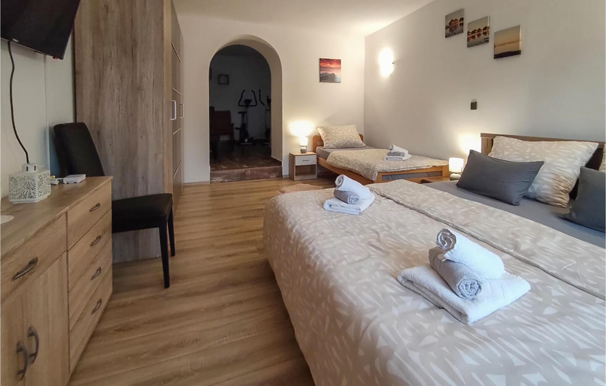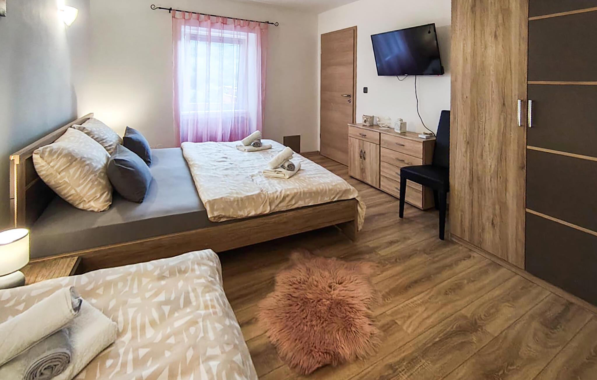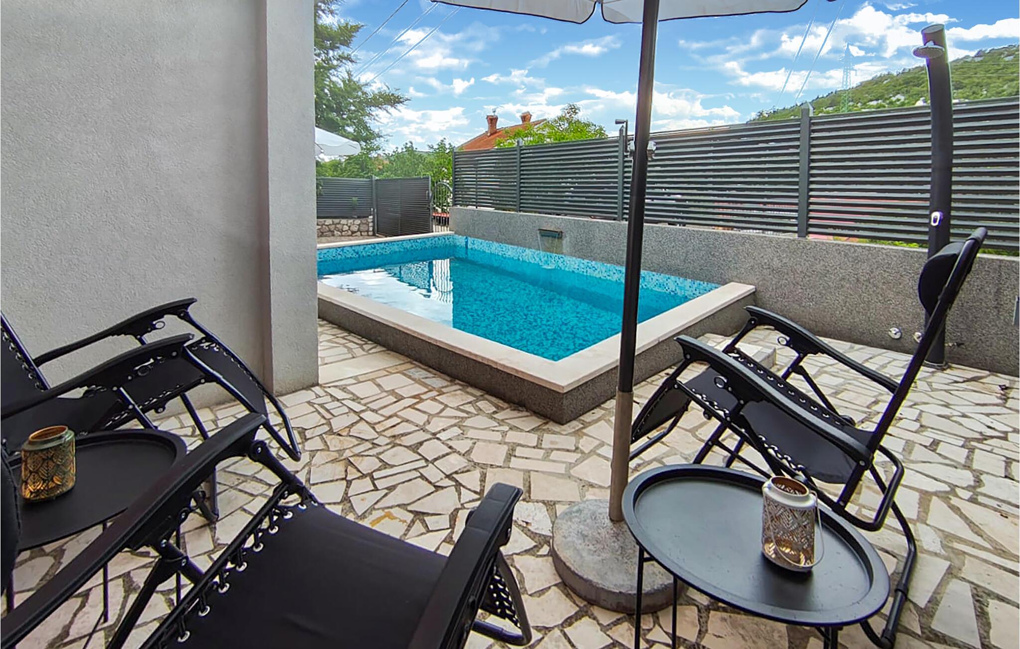 Dette smukt og personligt indrettede feriehus med mange aktivitets- og underholdningsmuligheder ligger kun et par minutter væk i bil fra de skønne strande, hvor I kan tilbringe lange afslappede badedage. Hold en behagelig og sorgløs ferie i Krizisce i frodigt grønne omgivelser. I kan slappe af i whirlpoolen, tage en frisk dukkert i poolen eller tumle med børnene på den lukkede grund. I har også en grill til rådighed, hvor I kan lave jeres private lækkerier til aftensmad. I bor roligt og ugenert, men alligevel ikke langt fra de livlige byer Crikvenica, Novi Vinodoloski og Rijeka. Øen Krk indbyder til en dagstur med mange oplevelser.