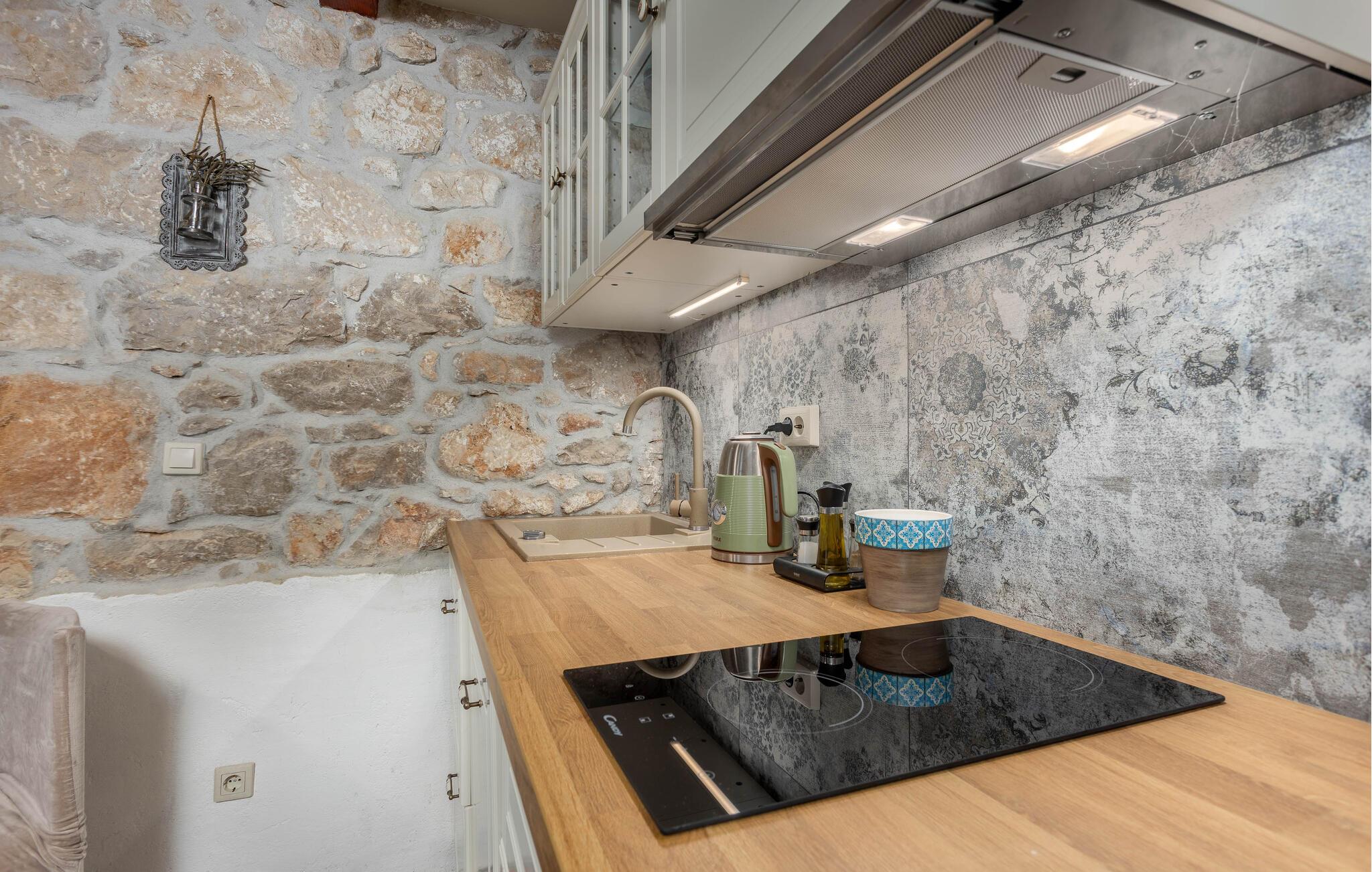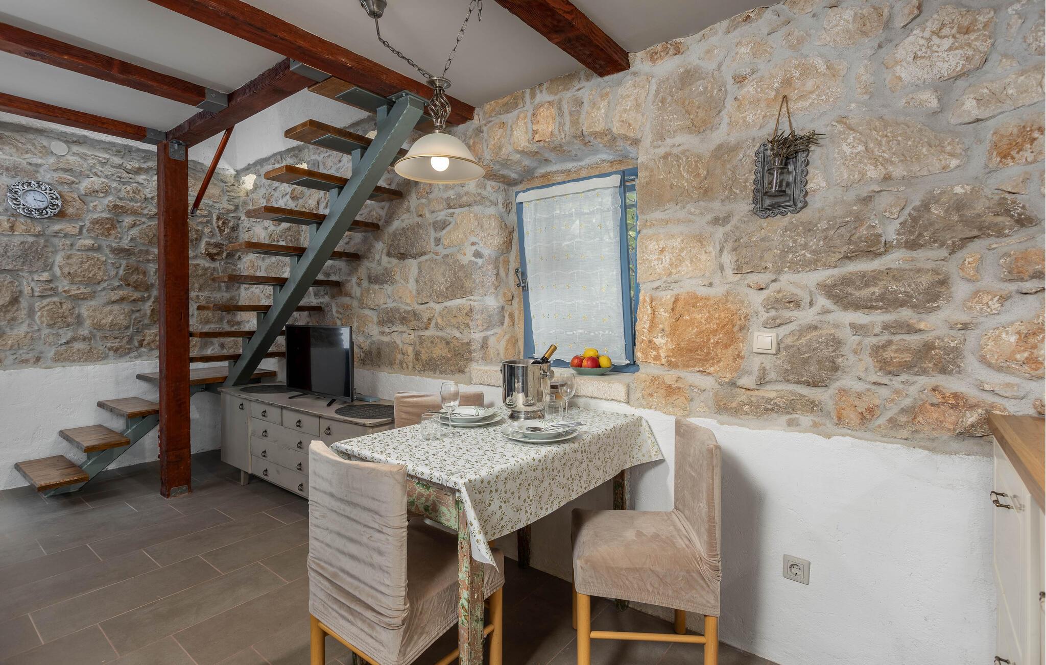I dette charmerende, traditionelle stenhus venter der jer en oase af ro og afslapning. Omgivet af frodig natur forener huset komfortabel elegance med et strejf af luksus. Indenfor finder I smagfuldt indrettede rum, der emmer af en hyggelig atmosfære. De mange terrasser giver jer mulighed for at nyde det mediterrane klima, mens spabadet på den øvre terrasse inviterer til afslapning. Den store have, omgivet af naturlig vegetation, skaber en fredelig tilflugtsmulighed.