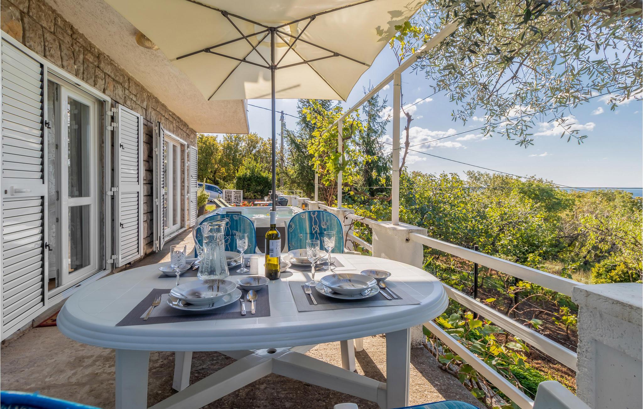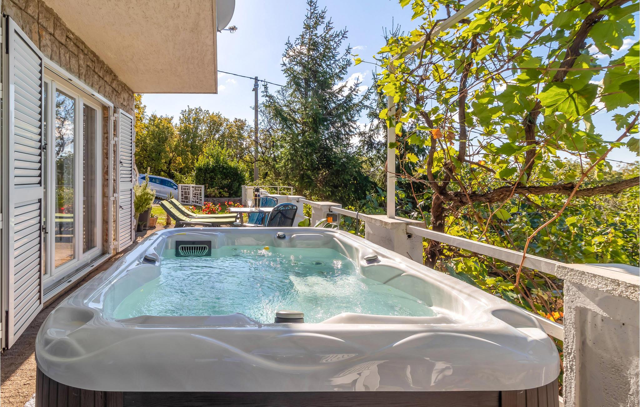 I et grønt miljø, hvor I er omgivet af frodig natur, ligger dette enkelt møblerede sommerhus. Det tilgængelige boligareal er i stueetagen med to soveværelser, køkken, badeværelse og stue/spisestue, mens den øverste etage er lukket. Ejendommen er helt lukket, og terrassen tilbyder ikke kun en smuk udsigt over landskabet, men også et afslappende område med boblebad. Hvis I leder efter et sted til en rolig ferie, er dette feriehus det rigtige valg. De nærmeste strande ligger kun fem minutters kørsel væk. Besøg den smukke havneby Crikvenica og øen Krk, der er Kroatiens største ø, hvor der ikke kun er gode restauranter, men også en rig kulturarv, der er værd at se og opleve.