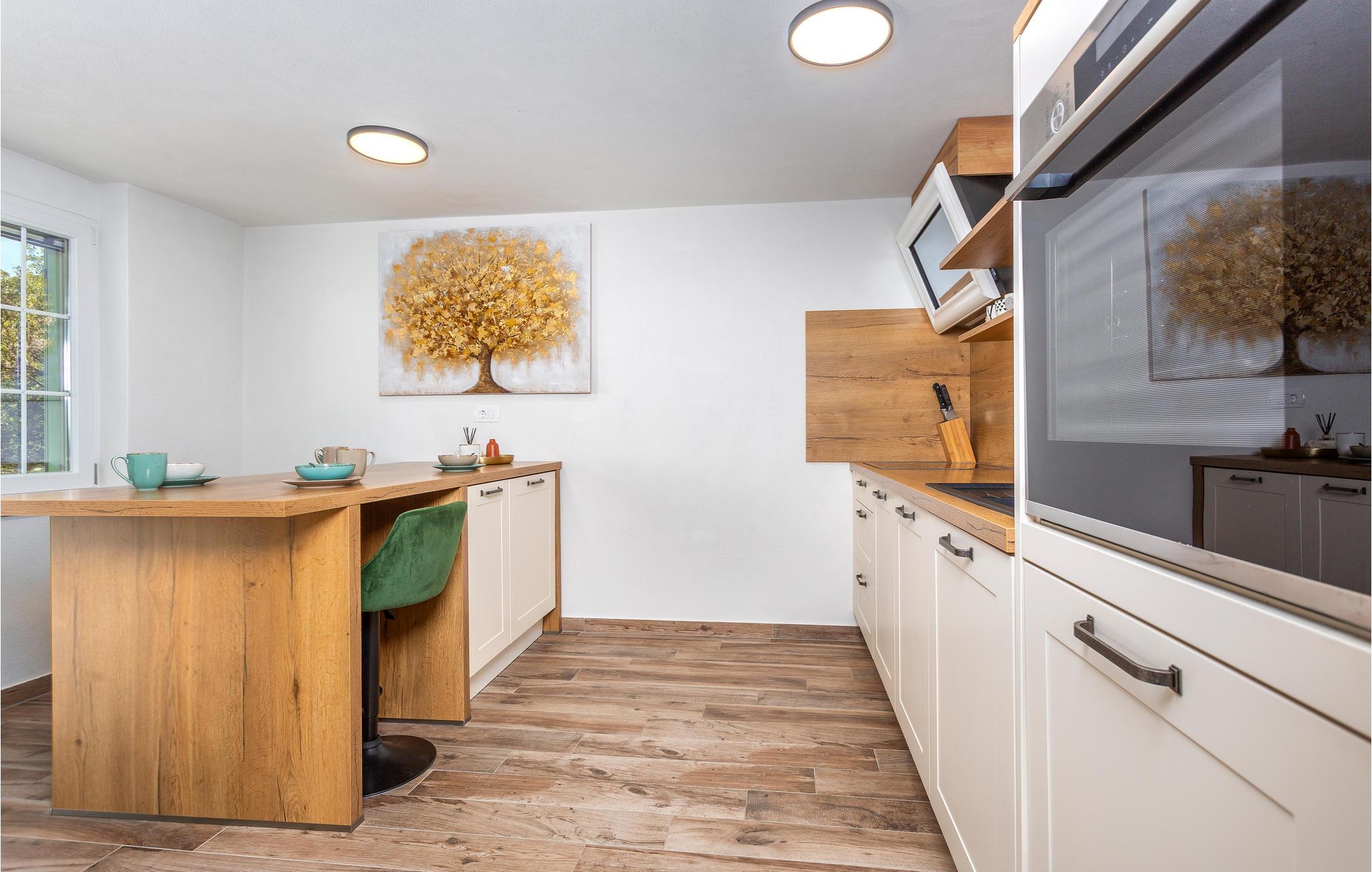Nyd en uforglemmelig familieferie i Smrika og dette indbydende hus. Feriedrømme går i opfyldelse her, og I kan slappe af i husets smagfuldt indrettede værelser. Attraktive møbler og stilfuld indretning fuldender booplevelsen. I kan selv bestemme, om I vil lave mad i huset eller i udekøkkenet på den store overdækkede terrasse. Brug også meget tid udendørs - den store gårdhave foran huset og terrassen med pool er et godt sted at slappe af i vandet og solen og nyde udsigten.