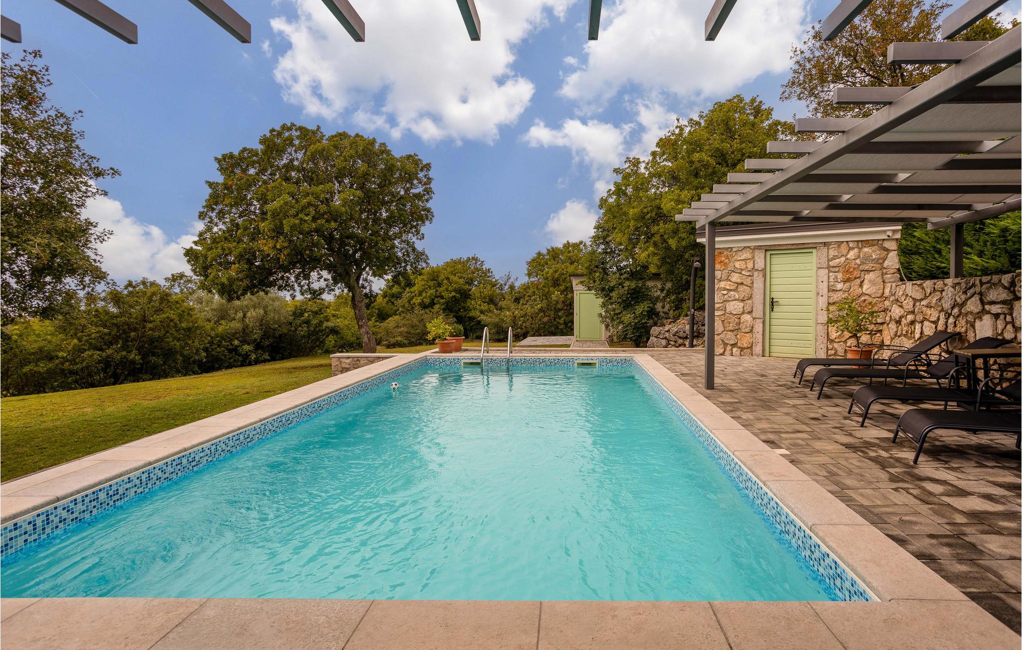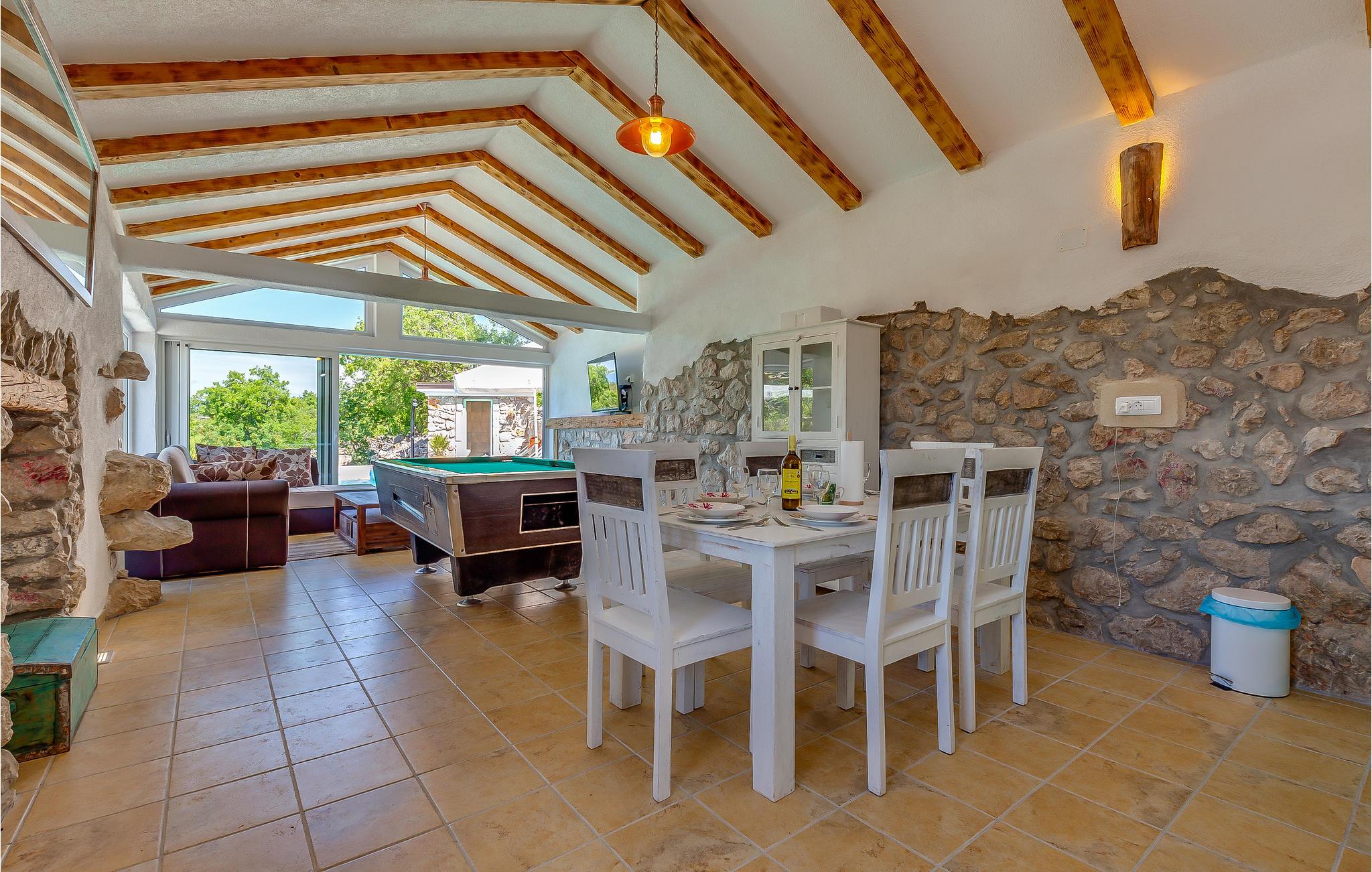 Hold en helt uforglemmelig dejlig ferie i dette traditionelle og moderne indrettede feriehus, der ligger ideelt ikke langt fra den skønne og populære riviera og byen Crikvenica. Huset er i et plan, med to soveværelser og har en helt særlige charme. Her bor I ugenert omgivet af skøn natur og alligevel i nærheden af skønne byer som Crikvenica, Opatija, Rijeka og også øen Krk. I kommer ikke til at kede jer, da ejendommen rummer både billardbord og en bocciabane i det fri. Tag en forfriskende svømmetur i poolen og lav lækre måltider i det udendørs køkken. Besøg også byen Crikvenica, med skønne strande ud til det glasklare hav, fine restauranter og ikke mindst utallige former for kunst og kultur. Slut ferien med en udflugt til Risnjak-Nationalparken og lær egnens historiske fortid at kende.