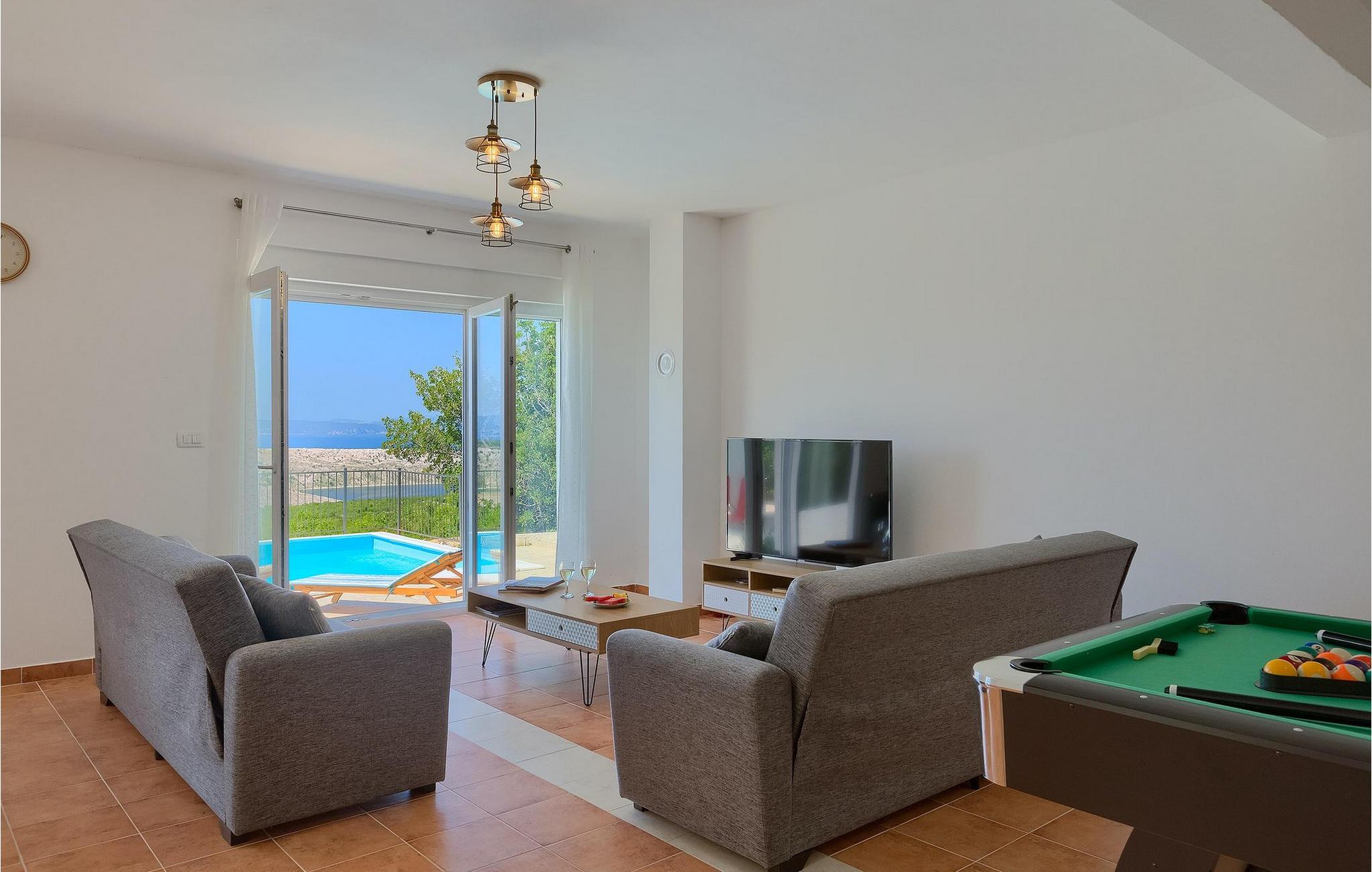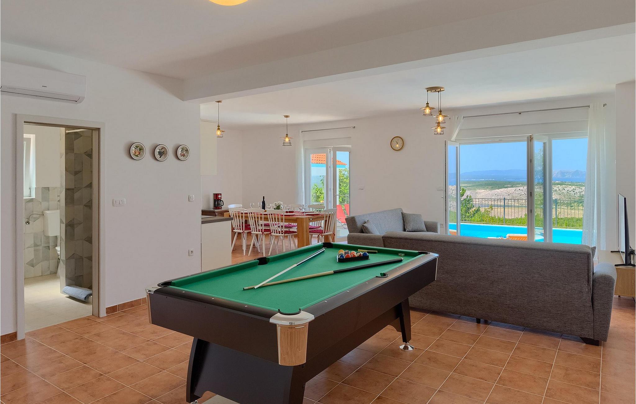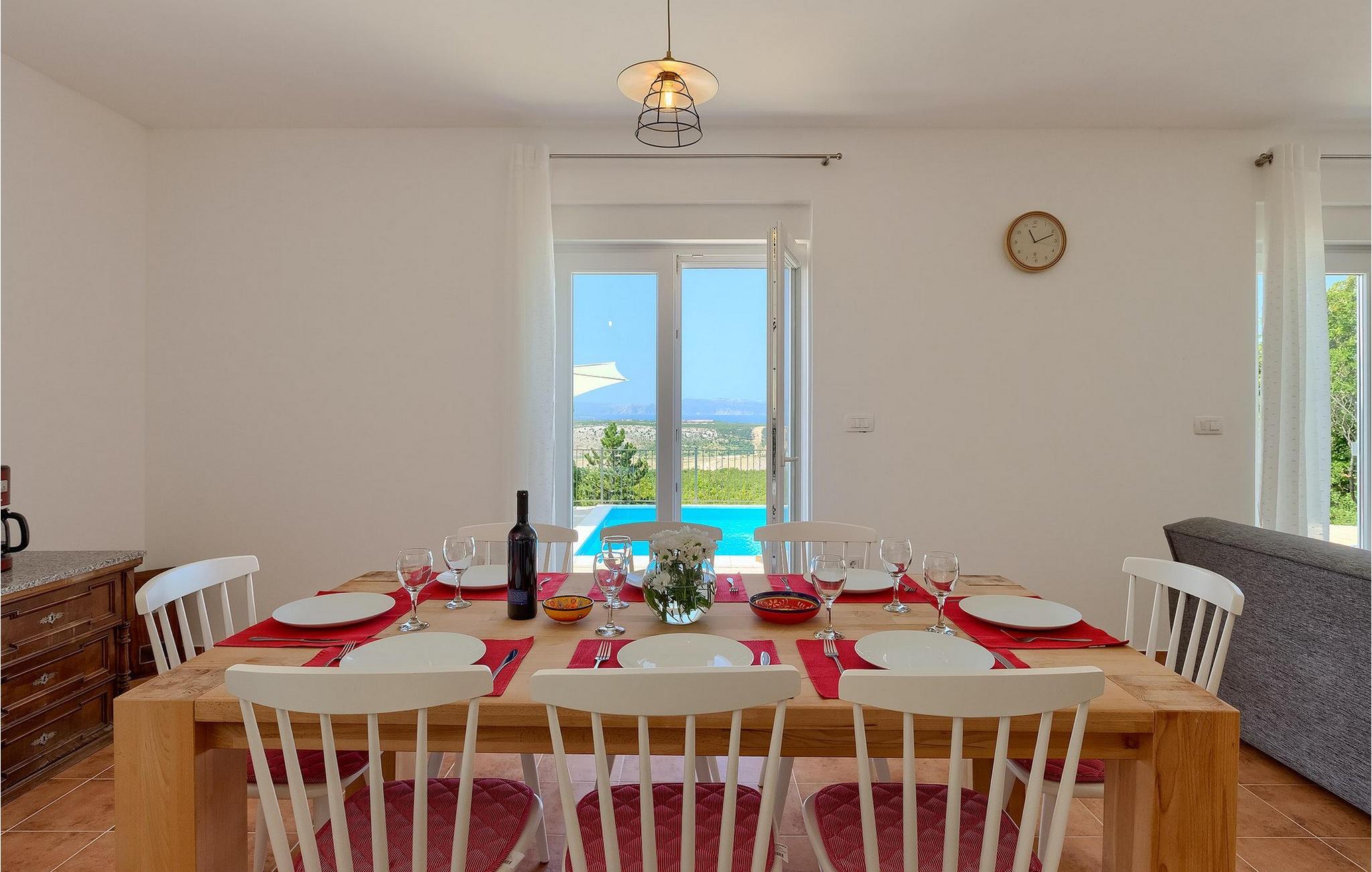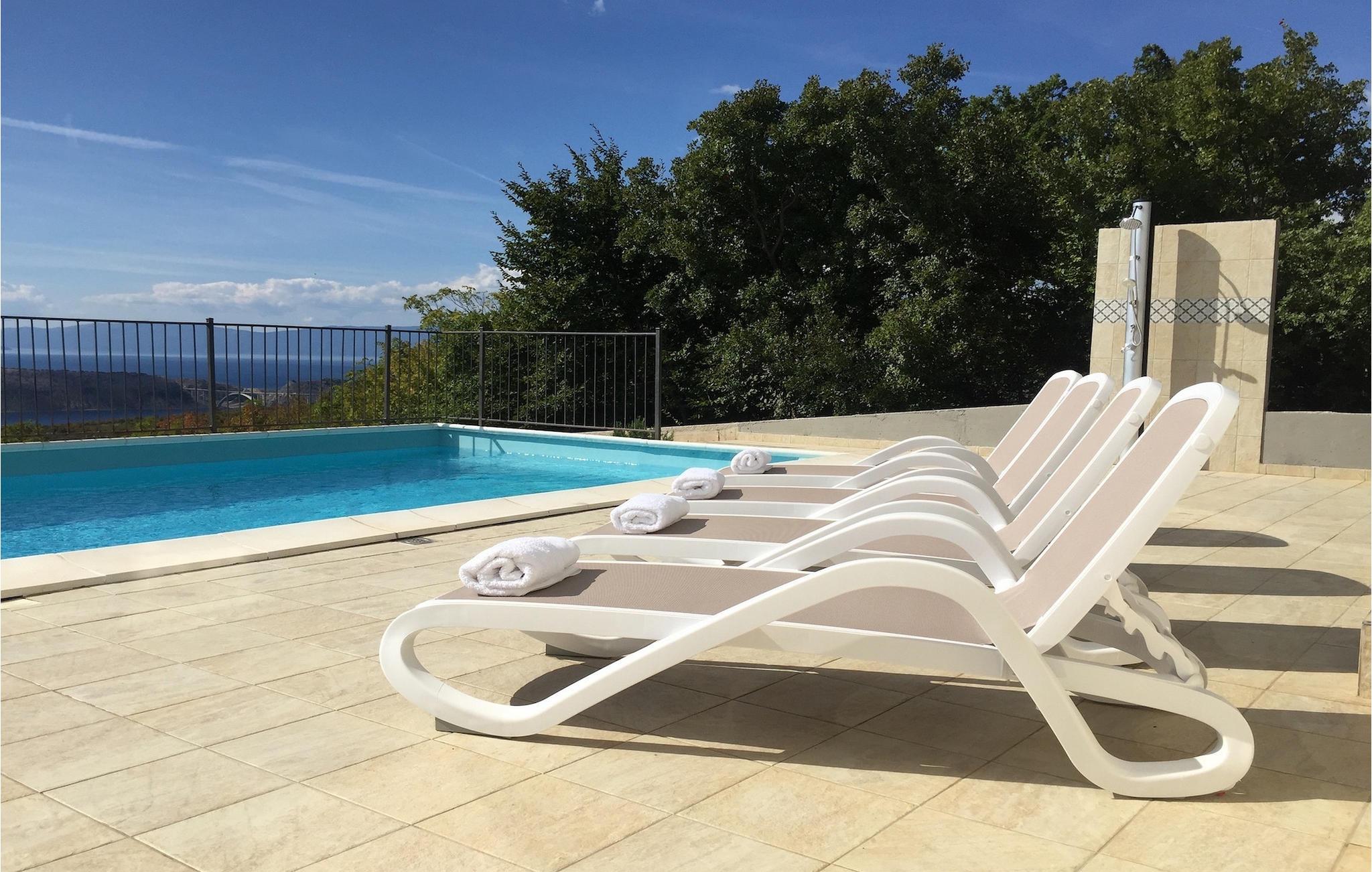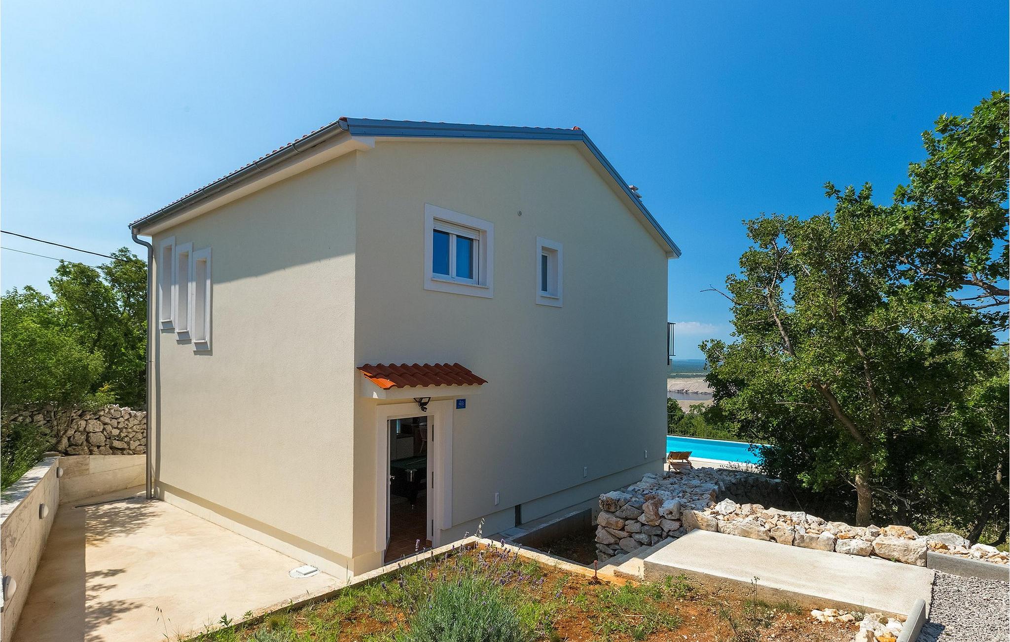 Villa Aqua ligger i den lille landsby Smrika nær øen Krk. Det kan rumme op til 8 personer og tilbyder nok plads til familier eller vennegrupper. Fra ejendommen kan du nyde en betagende udsigt over havet og øerne. Den private pool indbyder til en forfriskning på varme sommerdage. Der er liggestole omkring poolen, hvor du kan slappe af. Villaen byder på et charmerende interiør. Stueetagen af villaen byder på et åbent rum med et fuldt udstyret køkken med spiseplads, hyggelig stue og et badeværelse. På første sal er der 3 komfortable soveværelser og 2 badeværelser. 2 soveværelser med hver en dobbeltseng og udgang til fælles altan som er perfekt til at nyde morgenkaffen. Placeringen af villaen tilbyder fuldstændig privatliv - en fantastisk ferie er garanteret. Book nu og nyd Villa Aqua. Villa Aqua ligger i den lille landsby Šmrika nær øen Krk. Kraljevica, den nærmeste strand, ligger kun 1,2 kilometer fra villaen. Villa Aqua overrasker sine besøgende med sin beliggenhed. Dens magiske udsigt strækker sig til øen Krk. Restauranter og caféer ligger i landsbyen Šmrika. Supermarkeder kan findes i Crikvenica, som ligger omkring 9 kilometer fra villaen. Sørg for at udforske naturen omkring Villa Aqua og nyd den skønhed, den byder på.