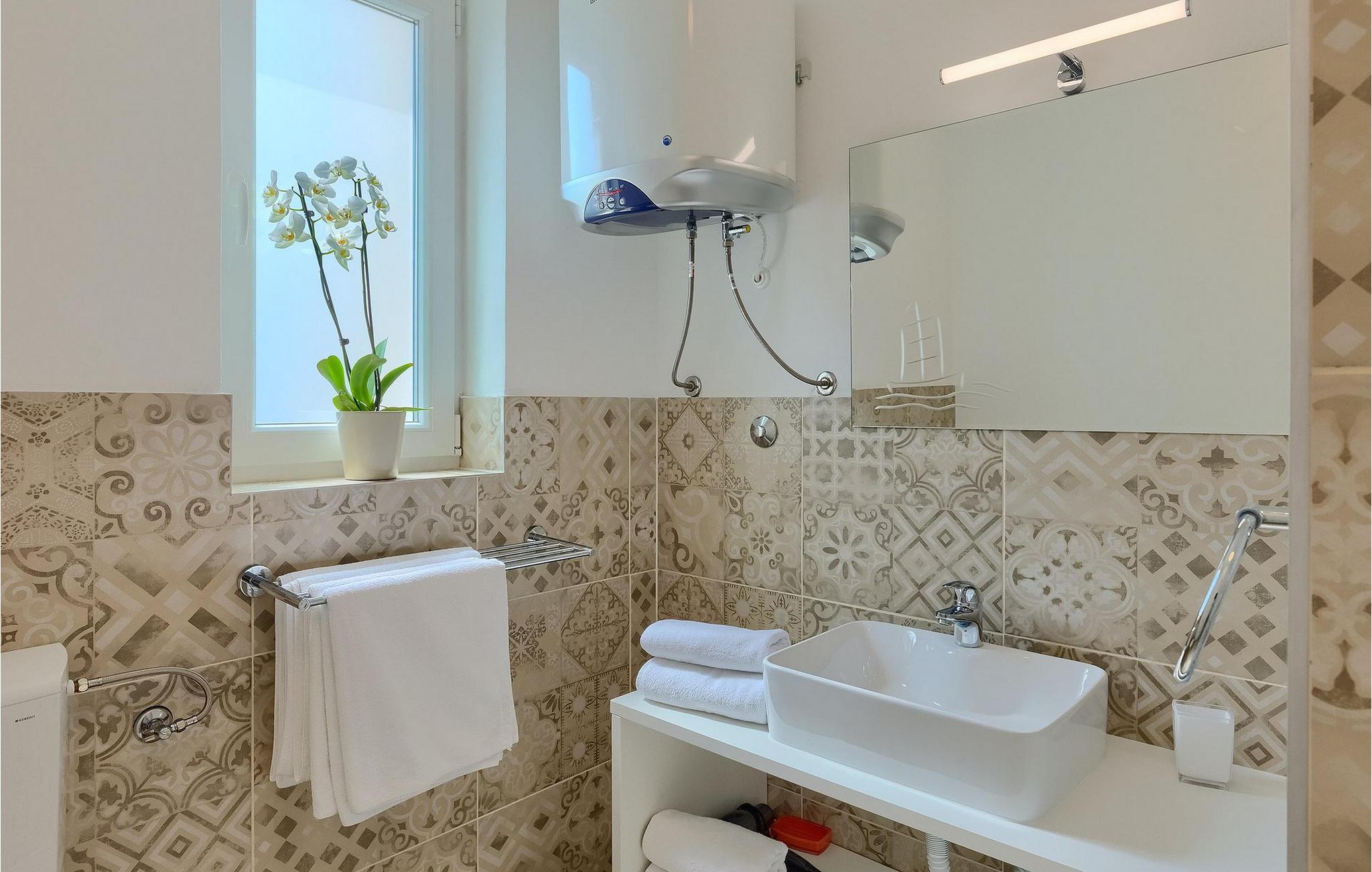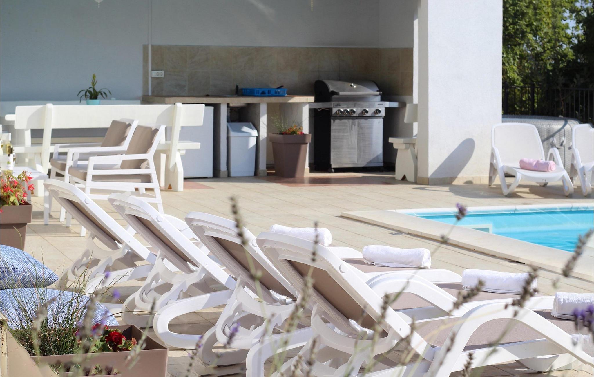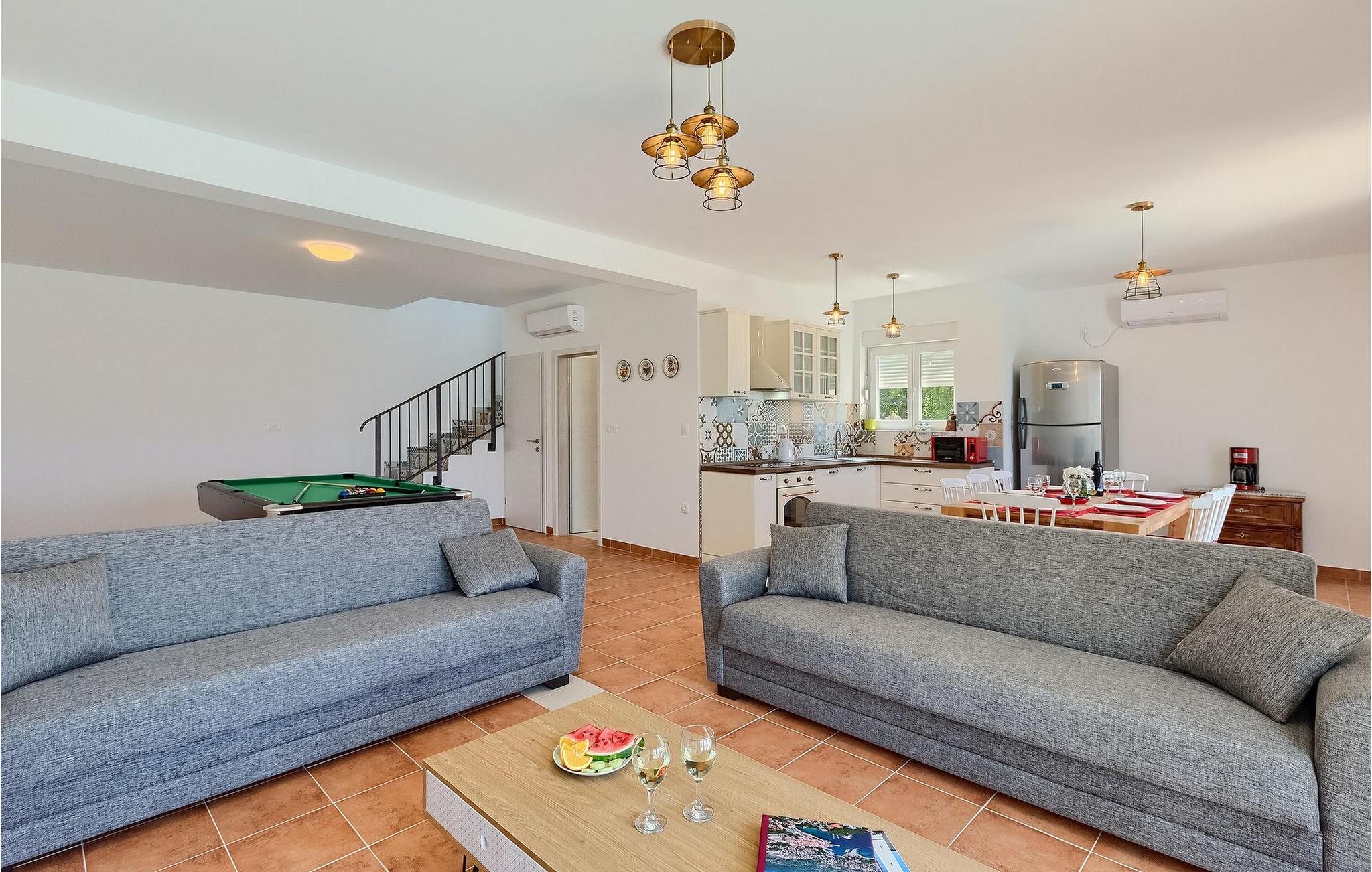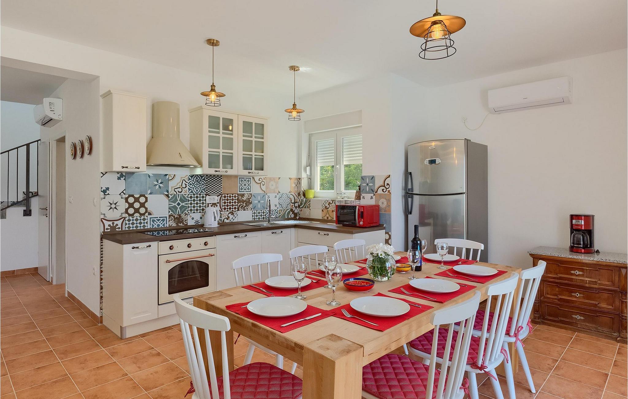 Villa Aqua ligger i den lille landsby Smrika nær øen Krk. Det kan rumme op til 8 personer og tilbyder nok plads til familier eller vennegrupper. Fra ejendommen kan du nyde en betagende udsigt over havet og øerne. Den private pool indbyder til en forfriskning på varme sommerdage. Der er liggestole omkring poolen, hvor du kan slappe af. Villaen byder på et charmerende interiør. Stueetagen af villaen byder på et åbent rum med et fuldt udstyret køkken med spiseplads, hyggelig stue og et badeværelse. På første sal er der 3 komfortable soveværelser og 2 badeværelser. 2 soveværelser med hver en dobbeltseng og udgang til fælles altan som er perfekt til at nyde morgenkaffen. Placeringen af villaen tilbyder fuldstændig privatliv - en fantastisk ferie er garanteret. Book nu og nyd Villa Aqua. Villa Aqua ligger i den lille landsby Šmrika nær øen Krk. Kraljevica, den nærmeste strand, ligger kun 1,2 kilometer fra villaen. Villa Aqua overrasker sine besøgende med sin beliggenhed. Dens magiske udsigt strækker sig til øen Krk. Restauranter og caféer ligger i landsbyen Šmrika. Supermarkeder kan findes i Crikvenica, som ligger omkring 9 kilometer fra villaen. Sørg for at udforske naturen omkring Villa Aqua og nyd den skønhed, den byder på.