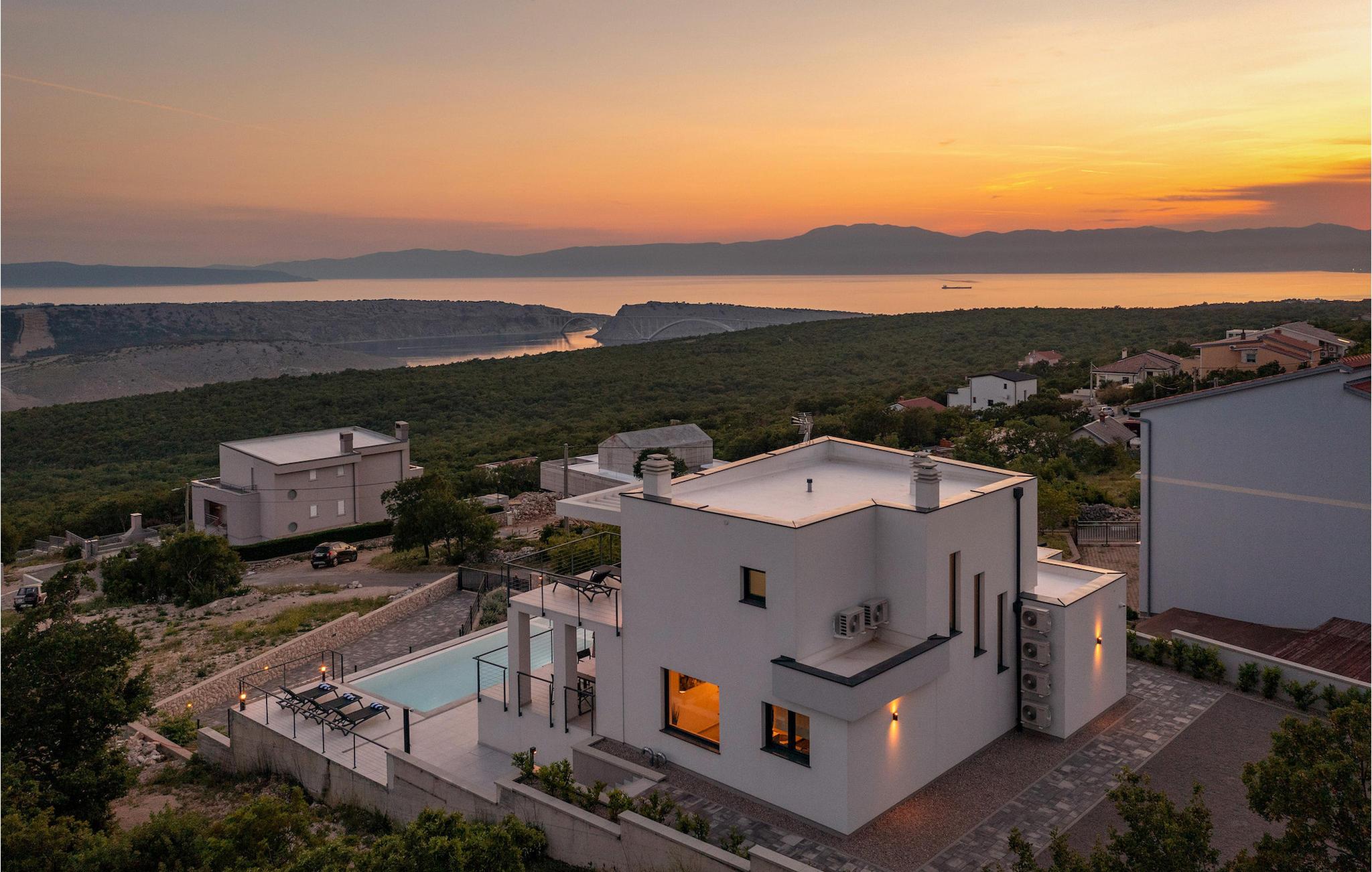 Tilbring din velfortjente ferie på Villa Visum og slap af med familie og venner med udsigt over den smukke solnedgang.Villa Visum er beliggende i landsbyen Šmrika, i en ideel beliggenhed halvvejs mellem byerne Rijeka og Crikvenica. Uanset om du er interesseret i en aktiv ferie eller fritid og afslapning, er Kvarnerbugten med mange landsbyer den rigtige destination for dig. Du kan slappe af på Adriaterhavets sand- og stenstrande eller nyde den naturlige skønhed i bakkerne i baglandet. Crikvenica, som ligger 15 minutters kørsel væk, blev erklæret et klimakursted for mere end 100 år siden på grund af dets milde klima og fyrreskove. Vil du opleve byens travlhed, ligger Rijeka, den største by i Kvarnerbugten, kun 20 km væk. Du kan besøge mange kulturelle og historiske seværdigheder og lære den interessante lokale historie, kultur og tradition at kende. Den største og vigtigste manifestation i dette område er Rijeka karneval, i dag en af de største parader i Europa og verden. I år 2020. Rijeka var europæisk kulturhovedstad.