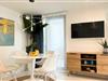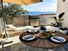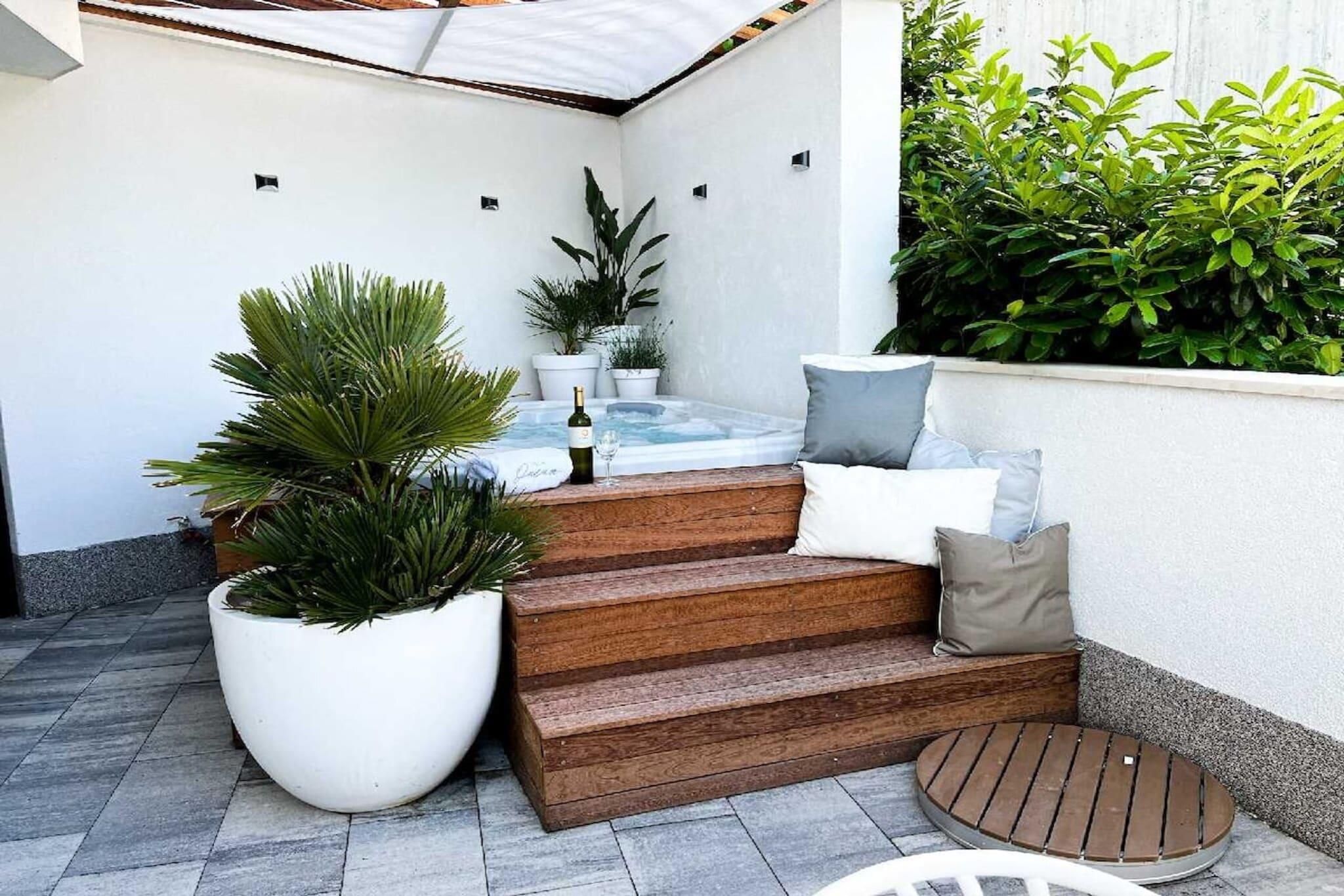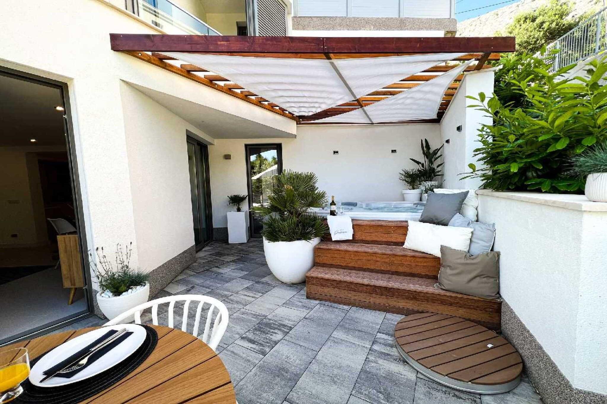 Lejlighed MARE i Villa Oneum ligger over Adriaterhavet i den livlige kystby Omiš og er som skabt til en lille gruppe venner, der ønsker nem adgang til stranden om dagen og afslappede, private opholdssteder om natten. Med Luka-stranden kun 10 minutters gang væk og Brzet North-stranden kun 14 minutter væk, falder dine dage naturligt ind i en rytme af svømning, sol og rolig vandring langs kysten. Lejligheden på 60 m² er smart indrettet til fælles ophold. To hyggelige soveværelser – en dobbeltseng og en køjeseng – tilbyder frisk sengetøj og rolig hvile efter lange stranddage, mens den lyse stue med tv og en dobbelt sovesofa bliver din genopladningszone mellem svømning og middage. Det fuldt udstyrede køkken gør gruppemåltiderne ubesværede – hurtig morgenmad før stranden, sene frokoster og nemme snacks i cocktailtimene. Det moderne badeværelse tilføjer en rolig komfort til et fælles ophold. Hjertet af dit ophold er udendørs. Træd ud på terrassen med havudsigt på den ene side og bjergudsigt på den anden, hvor din private jacuzzi, grill og spiseplads forvandler aftener til afslappede sammenkomster - grillet mad, kolde drinks og samtaler, der strækker sig til langt ud under kysthimlen. Når du ønsker variation, er kajaksejlads, snorkling, bådture og eventyr eller vandreture langs floden alle tæt på, mens kulturen og nattelivet i Split ligger kun 20 km væk for en nem dagstur. Dette er et ideelt ophold for venner, der ønsker strande inden for gåafstand, vandremorgener og en enkel, stilfuld base for et roligt kystliv i Omiš.