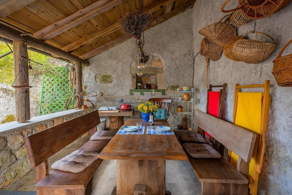 Dette feriehus i Dane har 1 soveværelse og kan rumme 4 personer. Den komfortable og afsidesliggende bolig måler 60 m² og tilbyder en fantastisk udsigt over bjergene og haven. Ejendommen ligger 0 m fra Ucka-søen, 20 km fra Buzet by, 20 km fra Buzet supermarked, 25 km fra Lupoglav naturreservat, 30 km fra Buzet naturreservat, 30 km fra Buzet busstation, 35 km fra Opatija sandstrand, 35 km fra Icici stenstrand, 35 km fra Istarske Toplice naturreservat, 50 km fra Platak skisportssted, 60 km fra Krk lufthavn, 60 km fra Trst togstation, 60 km fra Istralandia vandland, 80 km fra Trst lufthavn, 80 km fra Aquacolors Porec vandland. Ejendommen er beliggende i et familievenligt kvarter på landet. Indkvarteringen er udstyret med have, havemøbler, en 30 m² terrasse, pejs, strygejern, internet (Wi-Fi), hårtørrer, aircondition (varm/kold), udendørs parkering (2 pladser) i samme bygning og 1 tv. Det separate køkken med gasblus er udstyret med køleskab, tallerkener/bestik, køkkenredskaber, brødrister og elkedel.