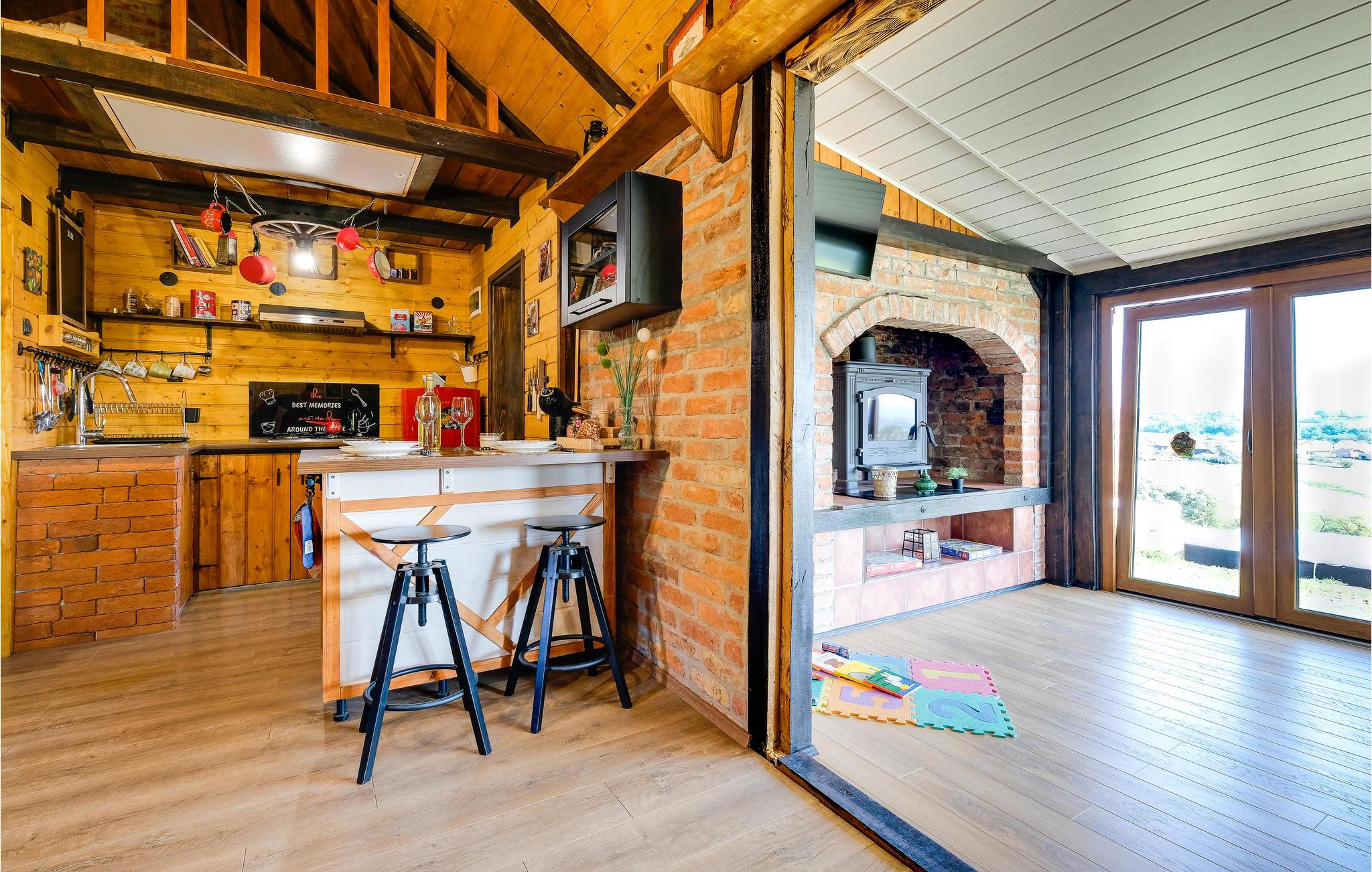 Velkommen til dette tiltalende feriehus, som byder jer velkommen med indbydende indretning og gode faciliteter. Her går forskellige farver og byggematerialer op i en højere enhed og skaber en hyggelig atmosfære af velvære.