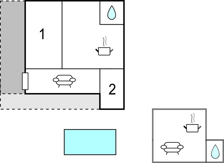 Opholdsstue 9m2 - 2 Sovepladser. (Sofa, madras eller lignende).