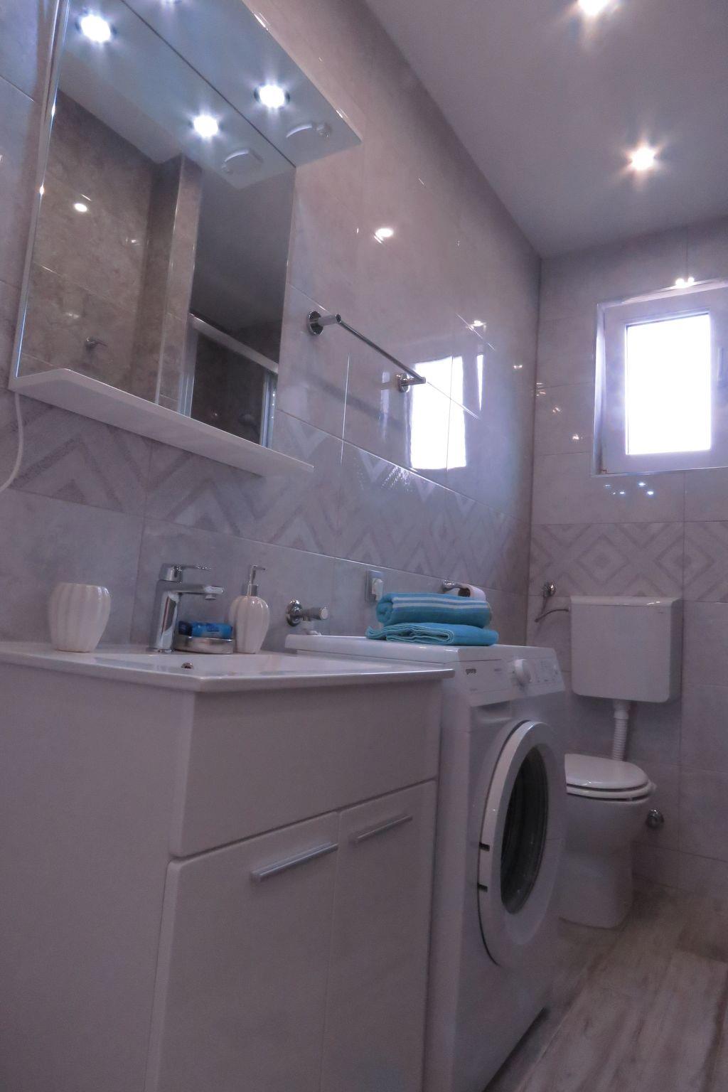 The house is on the main road in Sukosan and finding it shouldn't be a problem. The apartment is on the ground floor, but the house consists of ground floor, first floor and cellar. The house is surrounded by a big garden with fruits and vegetables. There's also parking space for at least 5 cars. You can play table tennis in front of the house or even use the grill. There is even a trampolin for kids in front of the house. There're outdoor tables with chairs for all guests.