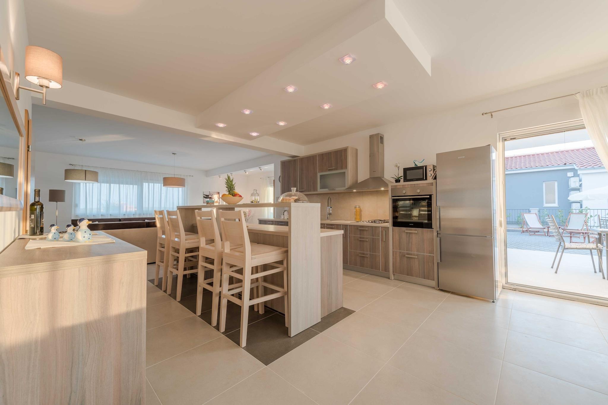 Luxury Escape with Swimming Pool & Modern Design is a high-end villa in Debeljak, near Zadar, Croatia. It features a private swimming pool, contemporary architecture, and stylish interiors. The villa is ideal for families or groups, offers spacious living areas, a fully equipped kitchen, multiple bedrooms with en-suites, and outdoor lounging areas. Situated in a peaceful setting, it provides easy access to Zadar’s historic sites and Adriatic beaches, combining relaxation and modern comfort. Note: Private parking is available, and a reservation is not required. A Baby cot is available on request. Wi-Fi is available throughout the property. Pets are not allowed. This four-bedroom can accommodate up to eight guests. It features an SAT/flat-screen TV and is combined with a living room seating area, sofa, and kitchen. The private bathroom is equipped with a shower and toilet. Free toiletries are available on request. Thanks to its excellent location, everything you'll need for your vacation is just a short walk from the property. Grocery stores, cafes, restaurants—everything is within a 5.00 km radius. The beach is 3.00 km away from the property. The airport is 11 km away from the property.