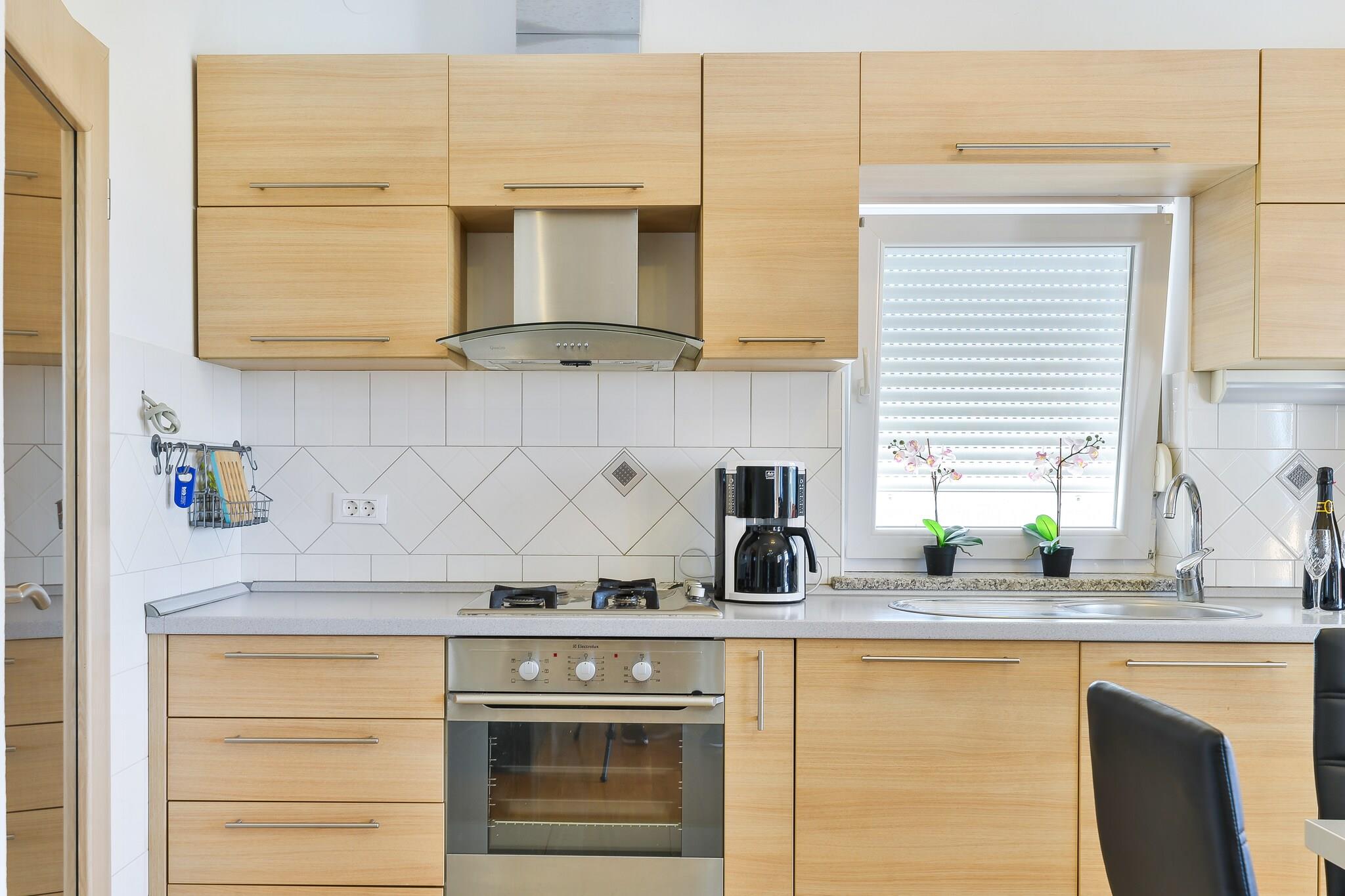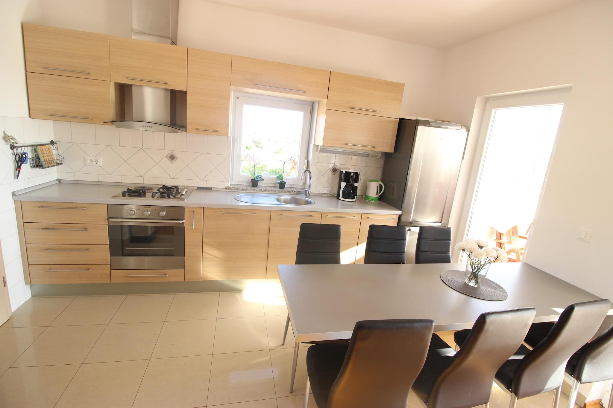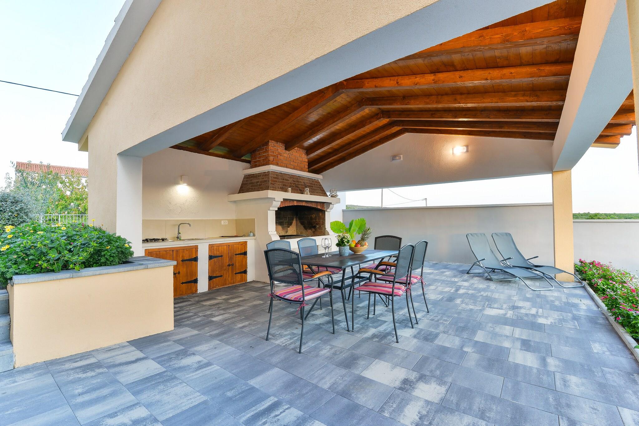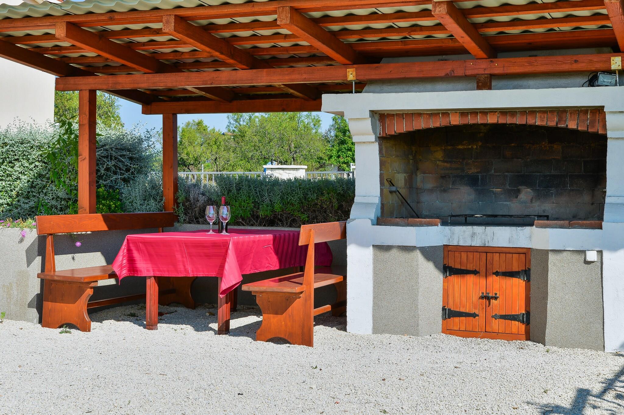 Rummelig komfort og førsteklasses beliggenhed Denne villa til syv gæster tilbyder et roligt tilflugtssted i Debeljak, kun 4,5 km fra havet og 15 km fra Zadar. Med gratis WiFi, en privat indhegnet have og en rummelig terrasse kan gæsterne nyde både afslapning og bekvemmelighed. Villaen ligger 600 meter fra almindelige forsyninger, mens restauranter og posthuset ligger inden for 4,5 km, hvilket sikrer nem adgang til de vigtigste fornødenheder. Moderne faciliteter og afslapning Indenfor har villaen en hyggelig opholds- og spisestue med pejs og satellit-tv, et fuldt udstyret åbent køkken og tre komfortable soveværelser, et med en dobbeltseng, et andet med en køjeseng og et tredje med en enkeltseng. Gæsterne kan slappe af på den private terrasse, nyde udendørs spisning med grill eller tage en forfriskende dukkert i den private swimmingpool. Yderligere faciliteter inkluderer aircondition, en vaskemaskine og en kælder med dart til underholdning. Nærliggende attraktioner og spisesteder Udforsk Punta Rata-stranden, kendt for sit krystalklare vand, eller besøg Zadars havorgel, et arkitektonisk vidunder, der forvandler bølger til musik. Til spisning tilbyder Konoba Anton middelhavsretter, mens Proto Food & More serverer frisk fisk og skaldyr i hyggelige omgivelser. Uanset om du søger eventyr eller ro, er denne villa det perfekte tilflugtssted.