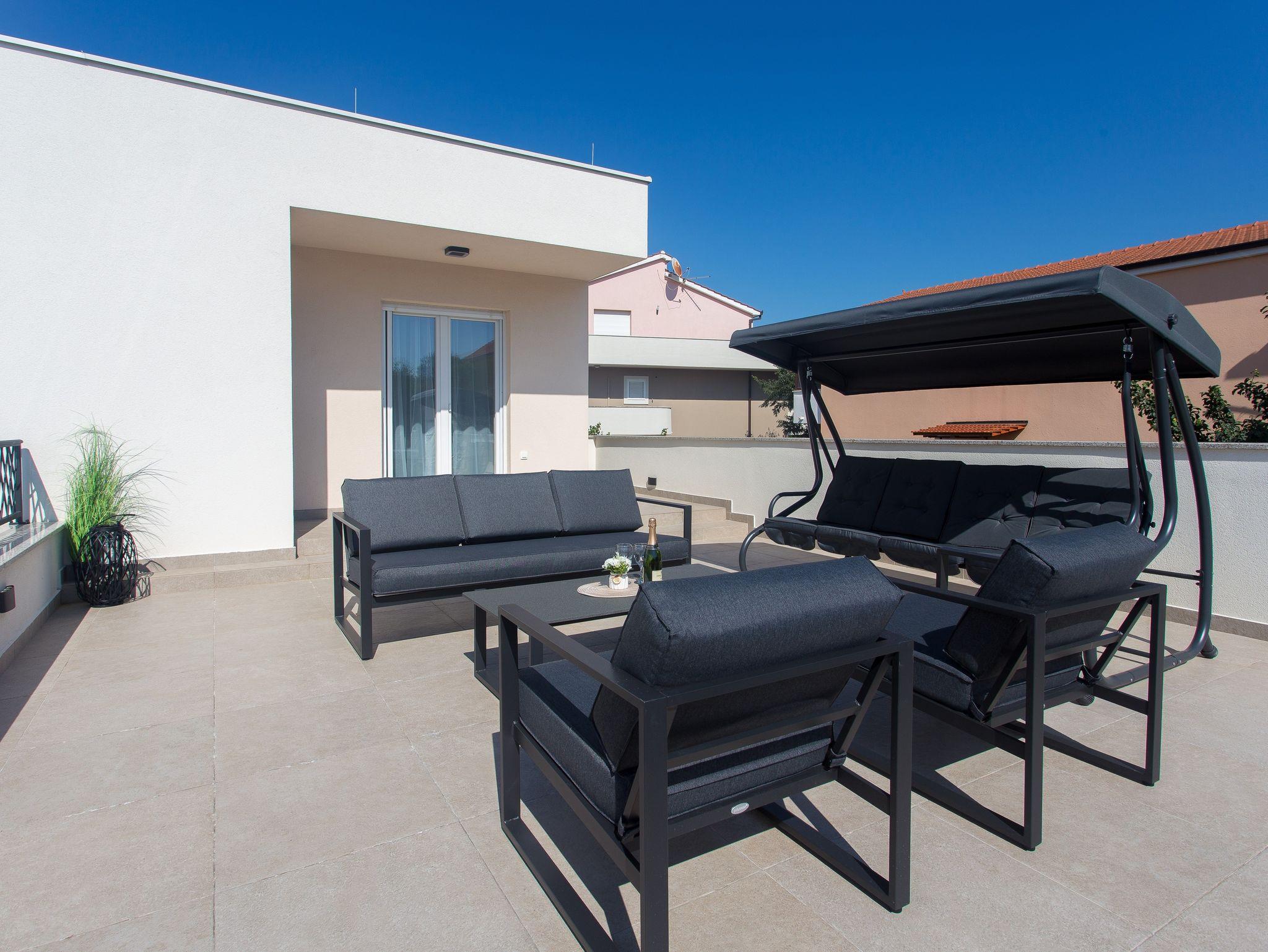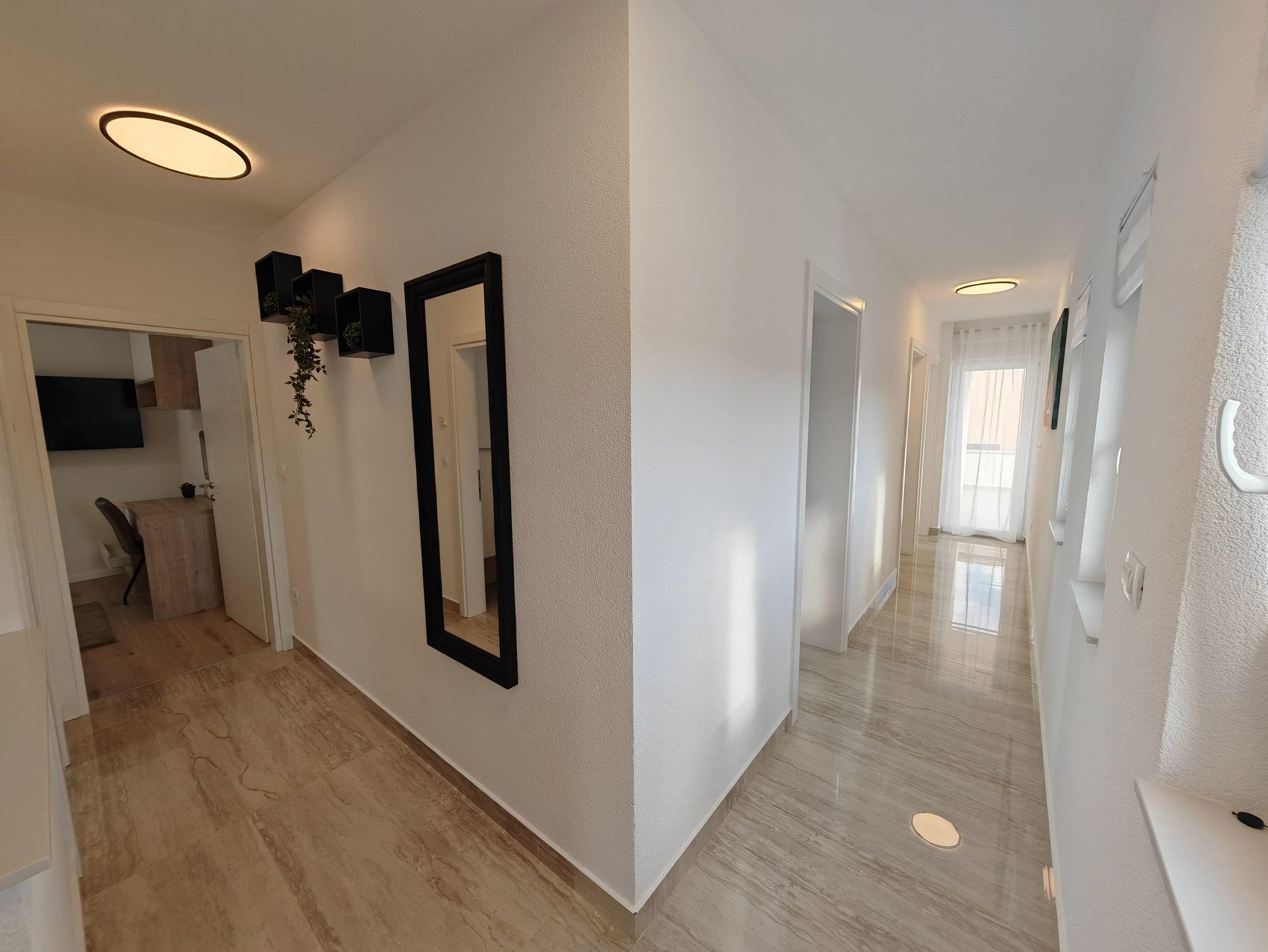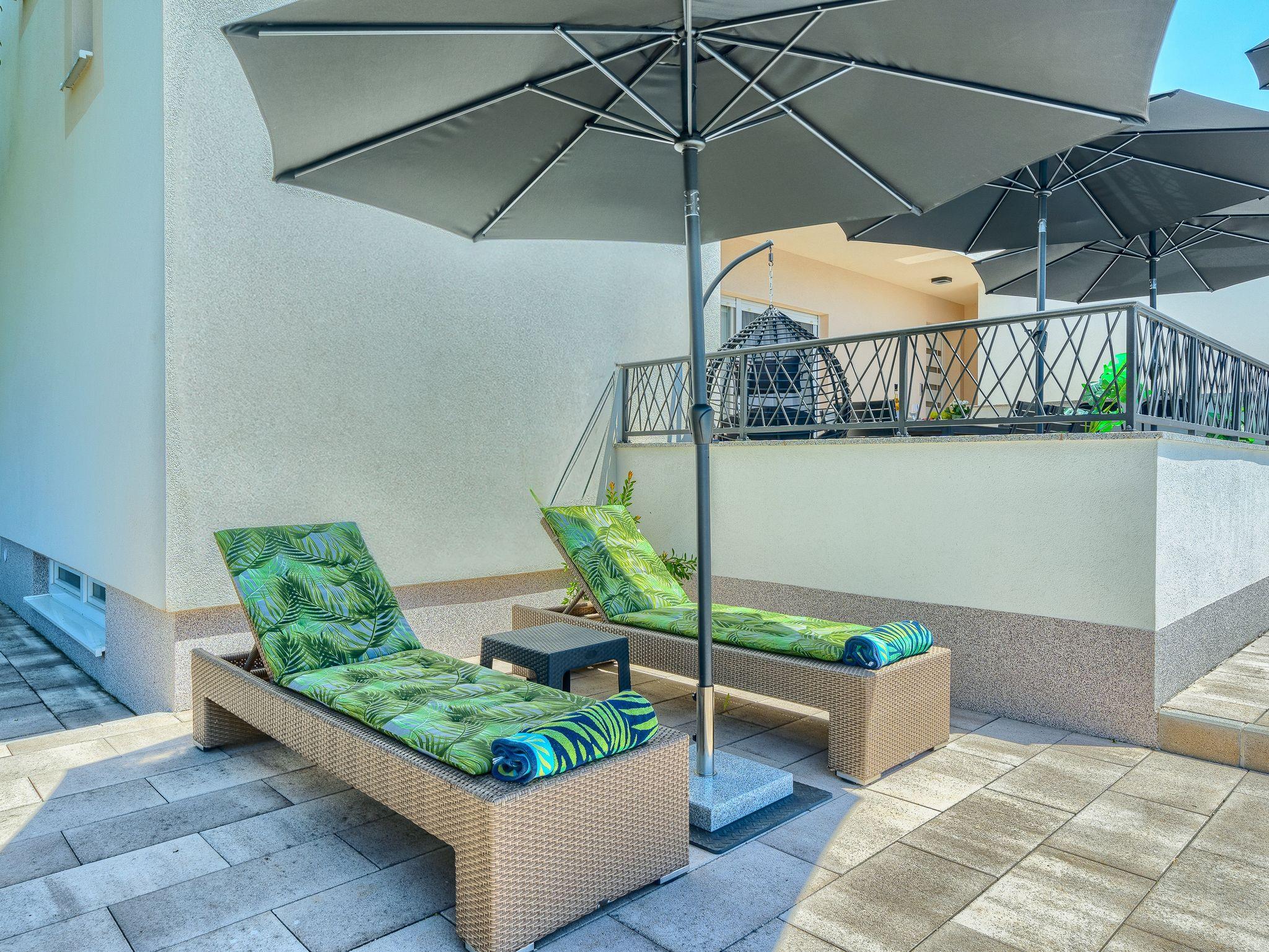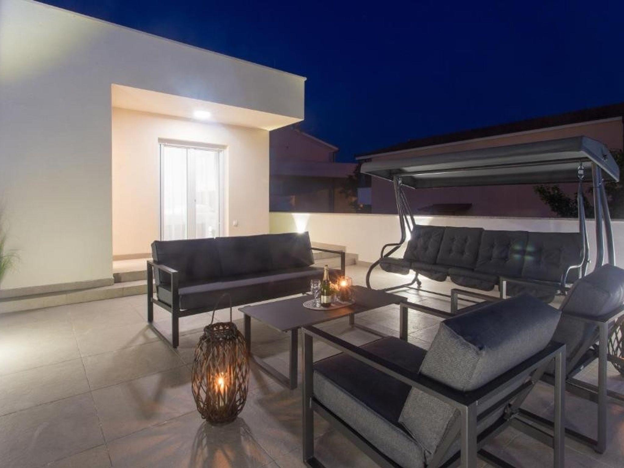 Haus bietet Platz für 10 Gäste. Die Betten sind in Schlafzimmern, die es 5 gibt, und in Wohnzimmer, innerhalb einer Gesamtfläche von 170m2, angeordnet. Die Gäste haben eine eigene Terrasse zur Verfügung, auf der sie in warmen Sommernächten genießen können. Für vollen Genuss und Entspannung gibt es einen privaten Grill für Gäste dieser Unterkunft. Während ihres Aufenthalts können sich Gäste im privaten Schwimmbad entspannen. IM PREIS INBEGRIFFEN: Kurtaxe, Endreinigung, Klimatisierung, Pool, Parkplatz, Garage, Internet, Kinderbett, Bügeleisen, Bügelbrett, Föhn. Die Verfügbarkeit zusätzlicher Dienstleistungen in Ihrem reservierten Termin und die Preise derselben (falls nicht aufgeführt) müssen im Voraus überprüft werden. Zusätzliche Dienstleistungen die in der Zahlungsaufforderung nicht aufgeführt sind werden direkt beim Vermieter bezahlt, angenommen der Gast nutzt auch diese. Ermäßigung auf den Grundpreis: Gratistag 14=13 (bei einem Aufenthalt von 14 Tagen oder mehr erhalten Sie einen Gratistag für den Aufenthalt bis 31.12.26).