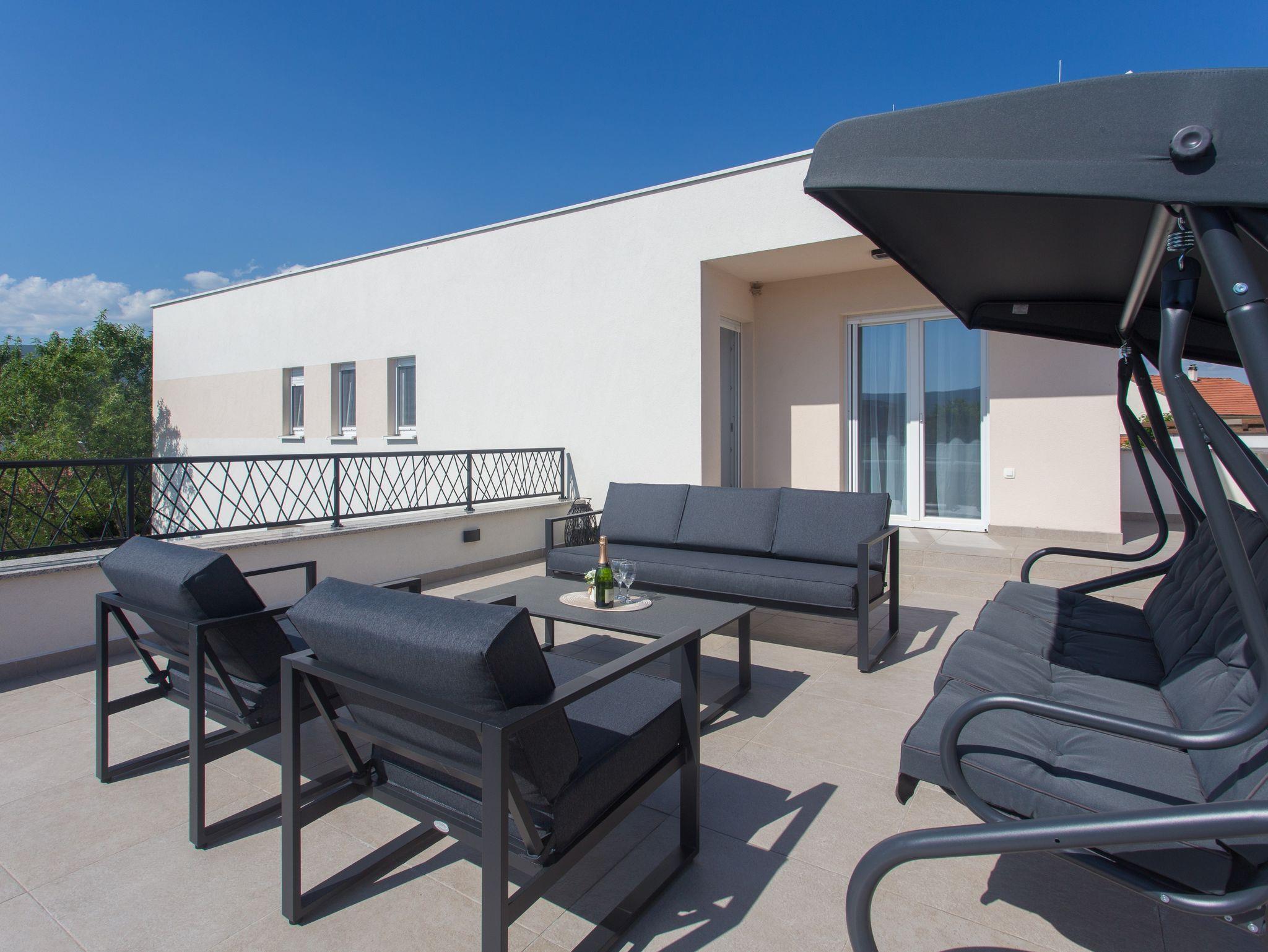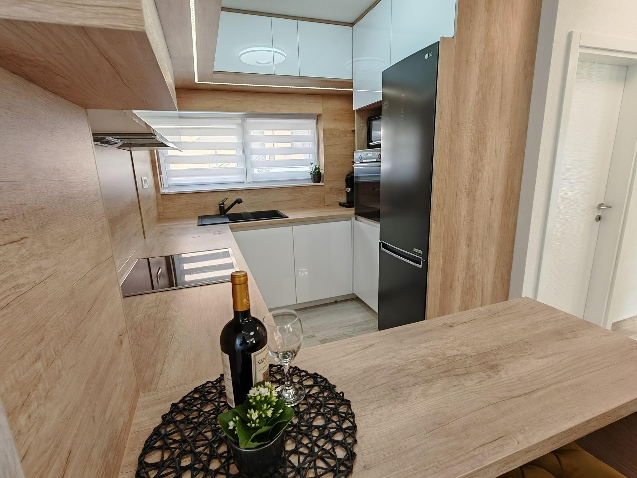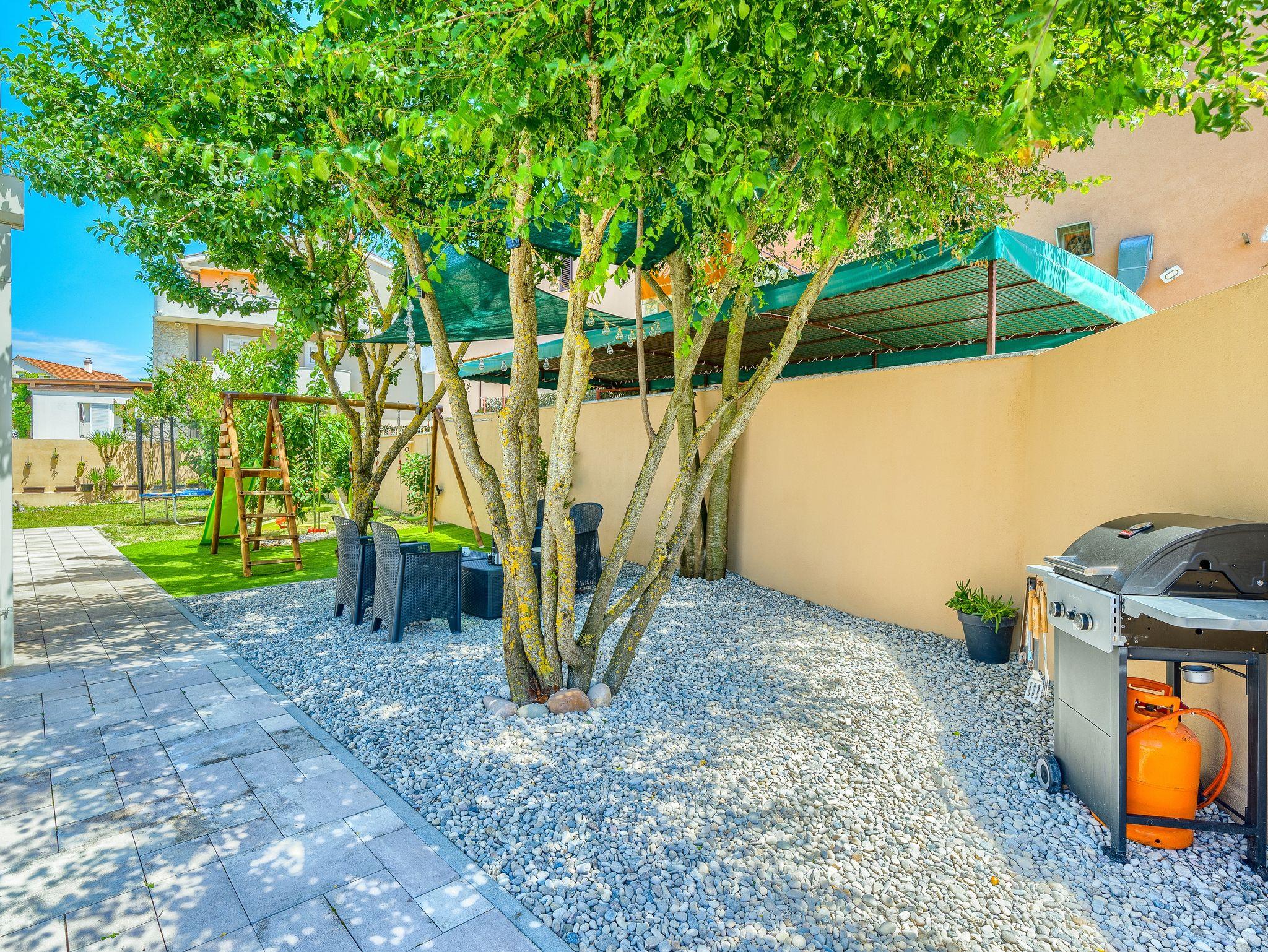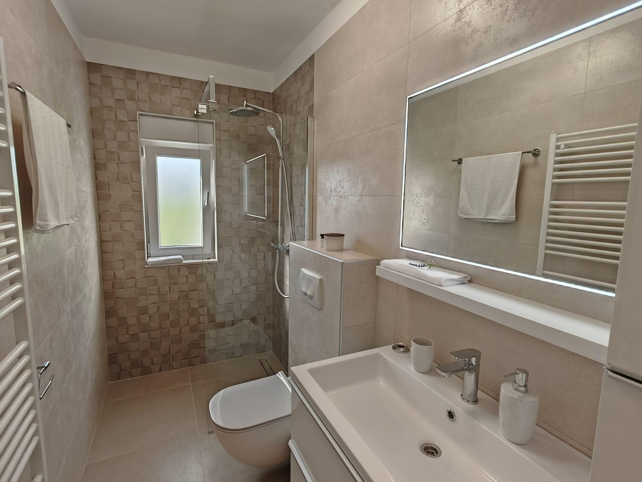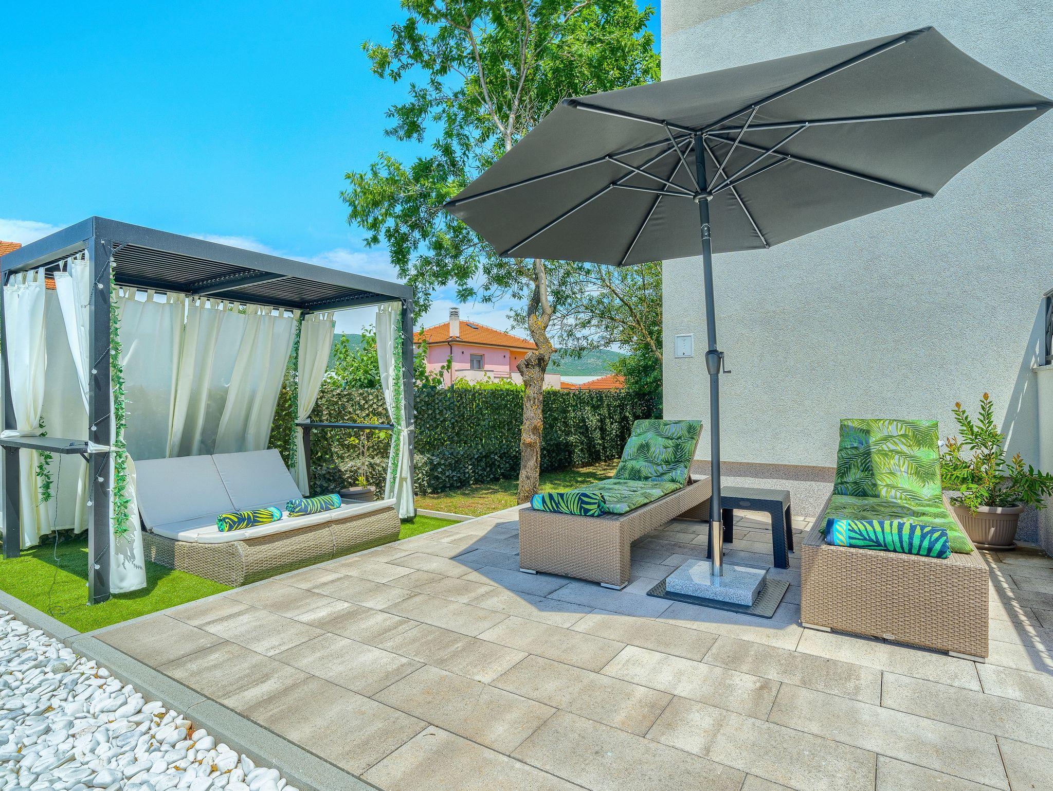 Haus bietet Platz für 10 Gäste. Die Betten sind in Schlafzimmern, die es 5 gibt, und in Wohnzimmer, innerhalb einer Gesamtfläche von 170m2, angeordnet. Die Gäste haben eine eigene Terrasse zur Verfügung, auf der sie in warmen Sommernächten genießen können. Für vollen Genuss und Entspannung gibt es einen privaten Grill für Gäste dieser Unterkunft. Während ihres Aufenthalts können sich Gäste im privaten Schwimmbad entspannen. IM PREIS INBEGRIFFEN: Kurtaxe, Endreinigung, Klimatisierung, Pool, Parkplatz, Garage, Internet, Kinderbett, Bügeleisen, Bügelbrett, Föhn. Die Verfügbarkeit zusätzlicher Dienstleistungen in Ihrem reservierten Termin und die Preise derselben (falls nicht aufgeführt) müssen im Voraus überprüft werden. Zusätzliche Dienstleistungen die in der Zahlungsaufforderung nicht aufgeführt sind werden direkt beim Vermieter bezahlt, angenommen der Gast nutzt auch diese. Ermäßigung auf den Grundpreis: Gratistag 14=13 (bei einem Aufenthalt von 14 Tagen oder mehr erhalten Sie einen Gratistag für den Aufenthalt bis 31.12.26).