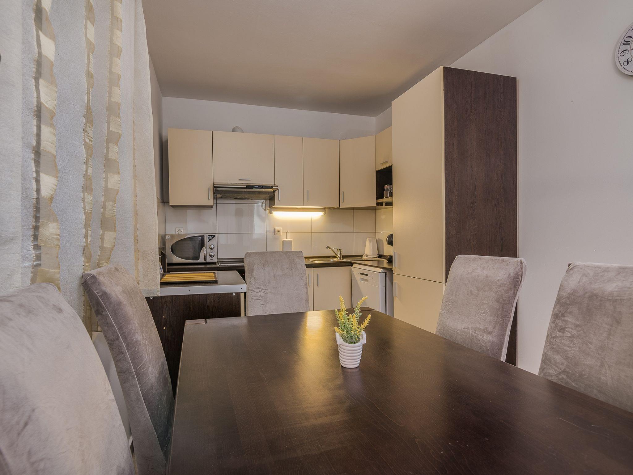 Ferienwohnung bietet Platz für 4 Gäste. Die Betten sind in Schlafzimmern, die es 2 gibt, innerhalb einer Gesamtfläche von 62m2, angeordnet. Die Gäste haben eine eigene Terrasse zur Verfügung, auf der sie in warmen Sommernächten genießen können. In der Unterkunftseinheit besteht die Möglichkeit des Mitbringens von Haustieren gegen Aufpreis. IM PREIS INBEGRIFFEN: Kurtaxe, Endreinigung, Klimatisierung, Parkplatz, Internet, Bügeleisen, Bügelbrett. VERBINDLICHE ZUSÄTZLICHE KOSTEN: Aufzahlung für Kurzaufenthalte (prozentualer Zuschlag pro Nächtigungsanzahl: 30% - 1, 20% - 2, 10% - 3). UNVERBINDLICHE ZUSÄTZLICHE KOSTEN: Haustiere (10,00 € pro Nacht). Die Verfügbarkeit zusätzlicher Dienstleistungen in Ihrem reservierten Termin und die Preise derselben (falls nicht aufgeführt) müssen im Voraus überprüft werden. Zusätzliche Dienstleistungen die in der Zahlungsaufforderung nicht aufgeführt sind werden direkt beim Vermieter bezahlt, angenommen der Gast nutzt auch diese.
