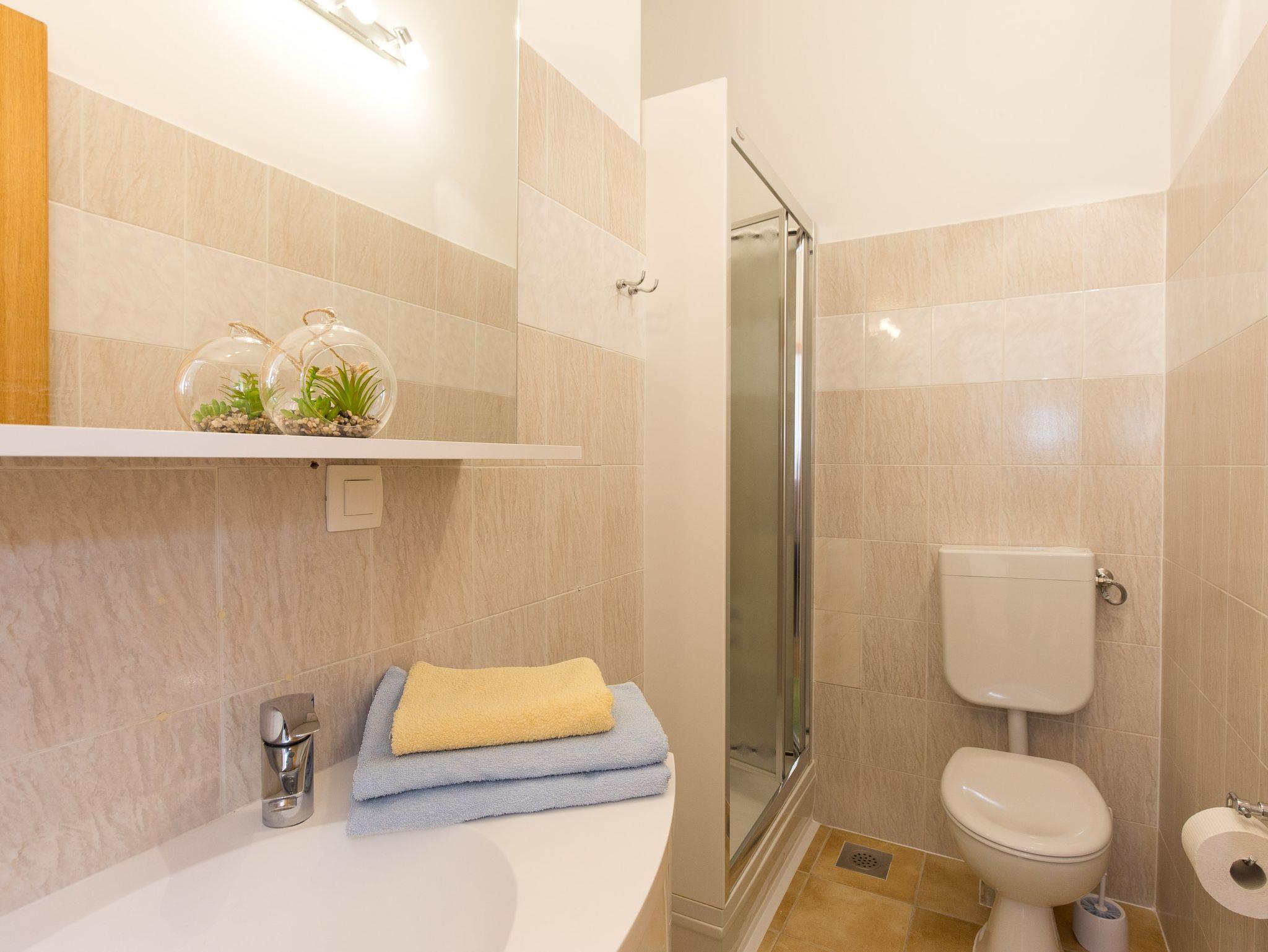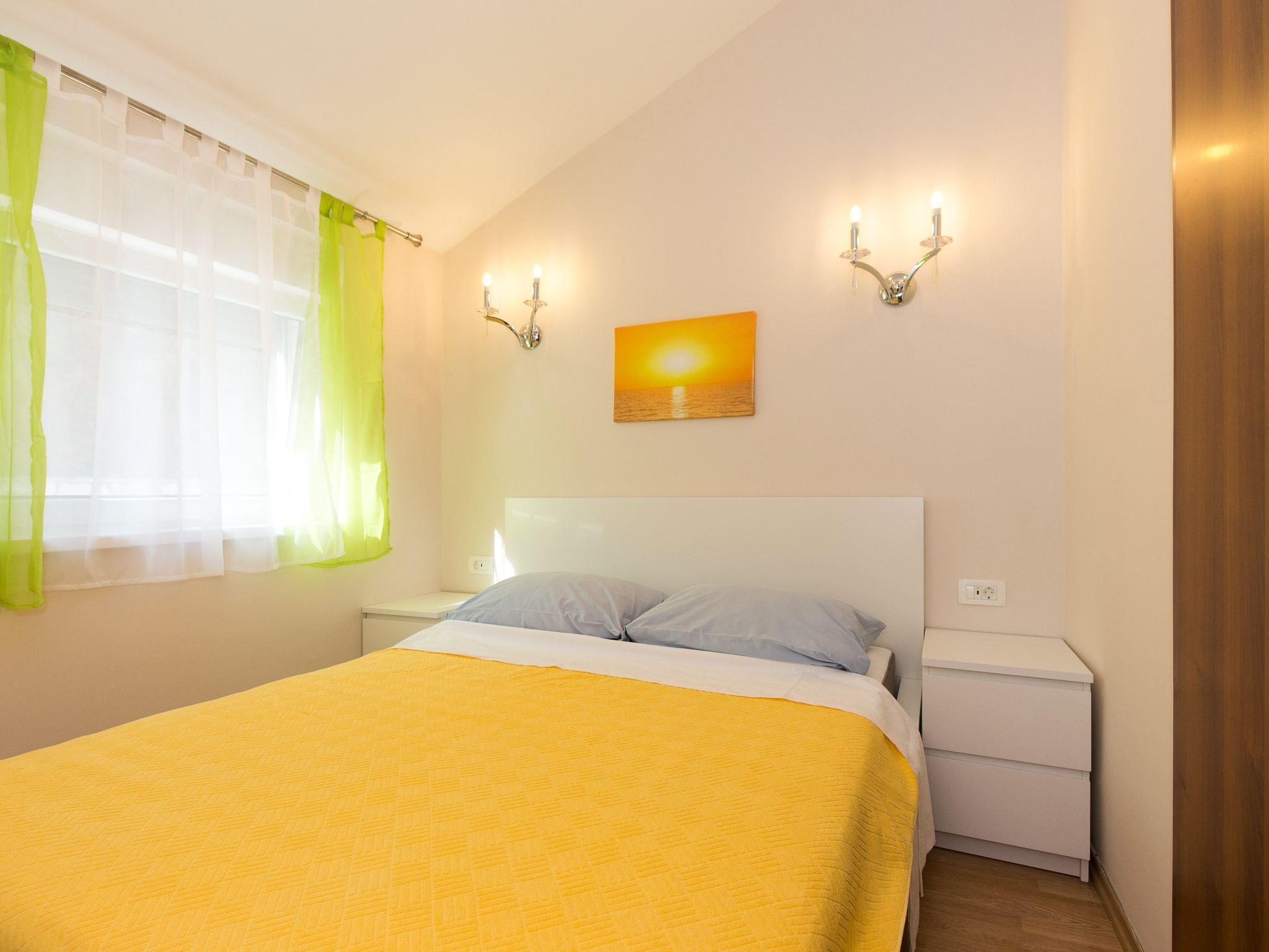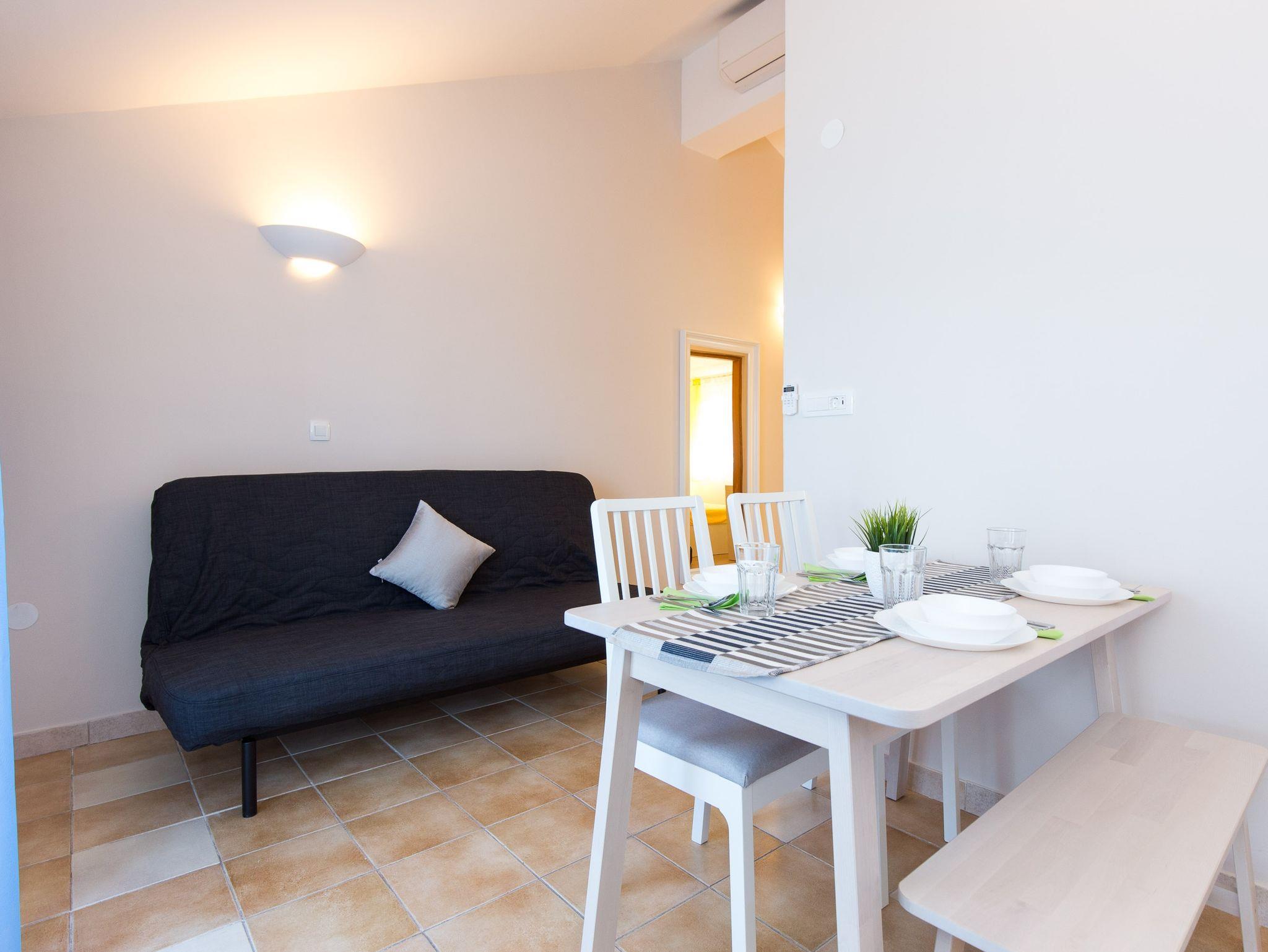 Ferienwohnung bietet Platz für 3 Gäste. Die Betten sind in Schlafzimmern, die es 1 gibt, und in Wohnzimmer, innerhalb einer Gesamtfläche von 31m2, angeordnet. Die Gäste haben einen eigenen Balkon zur Verfügung, auf der sie in warmen Sommernächten genießen können. Das Apartment bietet Meerblick. Es ist erlaubt, Speisen auf dem Gemeinschafts-Grill vorzubereiten. In der Unterkunftseinheit besteht die Möglichkeit des Mitbringens von Haustieren gegen Aufpreis. IM PREIS INBEGRIFFEN: Kurtaxe, Endreinigung, Klimatisierung, Parkplatz, Internet. VERBINDLICHE ZUSÄTZLICHE KOSTEN: Aufzahlung für Kurzaufenthalte (prozentualer Zuschlag pro Nächtigungsanzahl: 30% - 1, 20% - 2, 10% - 3). UNVERBINDLICHE ZUSÄTZLICHE KOSTEN: Haustiere (5,00 € pro Nacht). Die Verfügbarkeit zusätzlicher Dienstleistungen in Ihrem reservierten Termin und die Preise derselben (falls nicht aufgeführt) müssen im Voraus überprüft werden. Zusätzliche Dienstleistungen die in der Zahlungsaufforderung nicht aufgeführt sind werden direkt beim Vermieter bezahlt, angenommen der Gast nutzt auch diese.