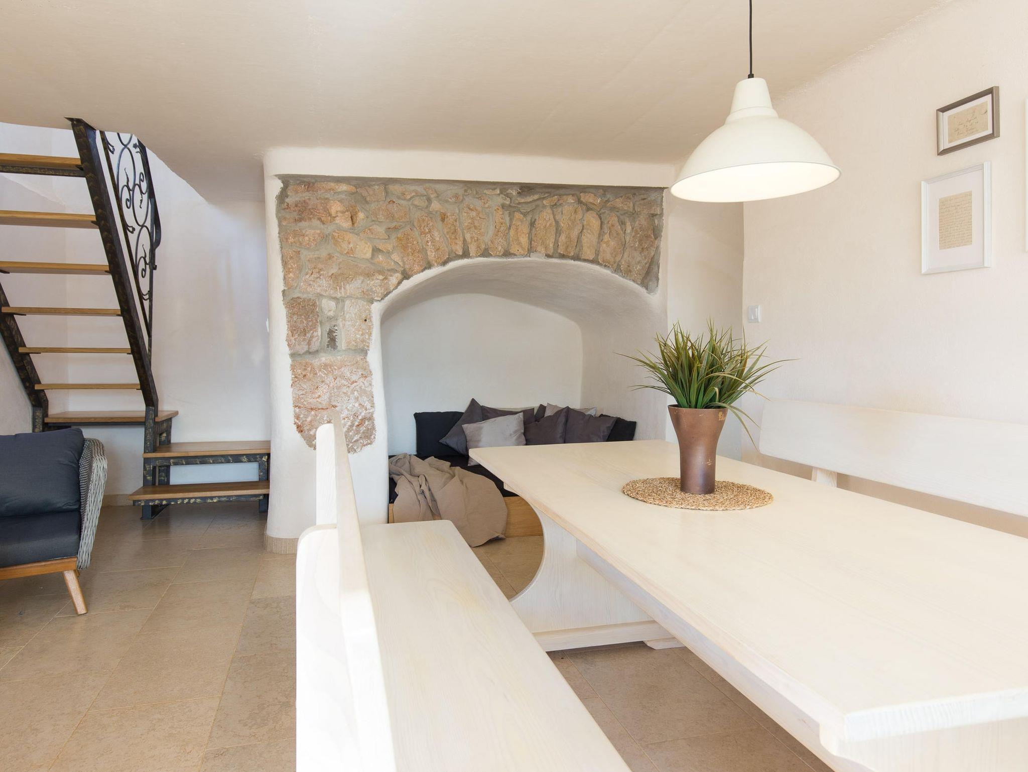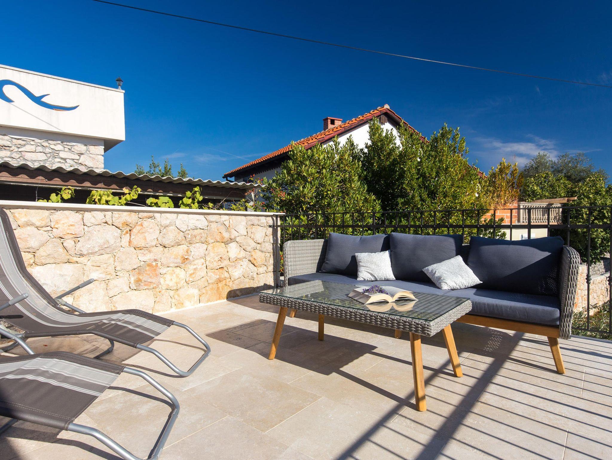Haus bietet Platz für 6 Gäste. Die Betten sind in Schlafzimmern, die es 2 gibt, innerhalb einer Gesamtfläche von 68m2, angeordnet. Die Gäste haben eine eigene Terrasse zur Verfügung, auf der sie in warmen Sommernächten genießen können. Für vollen Genuss und Entspannung gibt es einen privaten Grill für Gäste dieser Unterkunft. In der Unterkunftseinheit besteht die Möglichkeit des Mitbringens von Haustieren gegen Aufpreis. IM PREIS INBEGRIFFEN: Kurtaxe, Endreinigung, Klimatisierung, Parkplatz, Internet, Bügeleisen, Bügelbrett. VERBINDLICHE ZUSÄTZLICHE KOSTEN: Aufzahlung für Kurzaufenthalte (prozentualer Zuschlag pro Nächtigungsanzahl: 30% - 1, 20% - 2, 10% - 3). UNVERBINDLICHE ZUSÄTZLICHE KOSTEN: Haustiere (10,00 € pro Nacht). Die Verfügbarkeit zusätzlicher Dienstleistungen in Ihrem reservierten Termin und die Preise derselben (falls nicht aufgeführt) müssen im Voraus überprüft werden. Zusätzliche Dienstleistungen die in der Zahlungsaufforderung nicht aufgeführt sind werden direkt beim Vermieter bezahlt, angenommen der Gast nutzt auch diese.