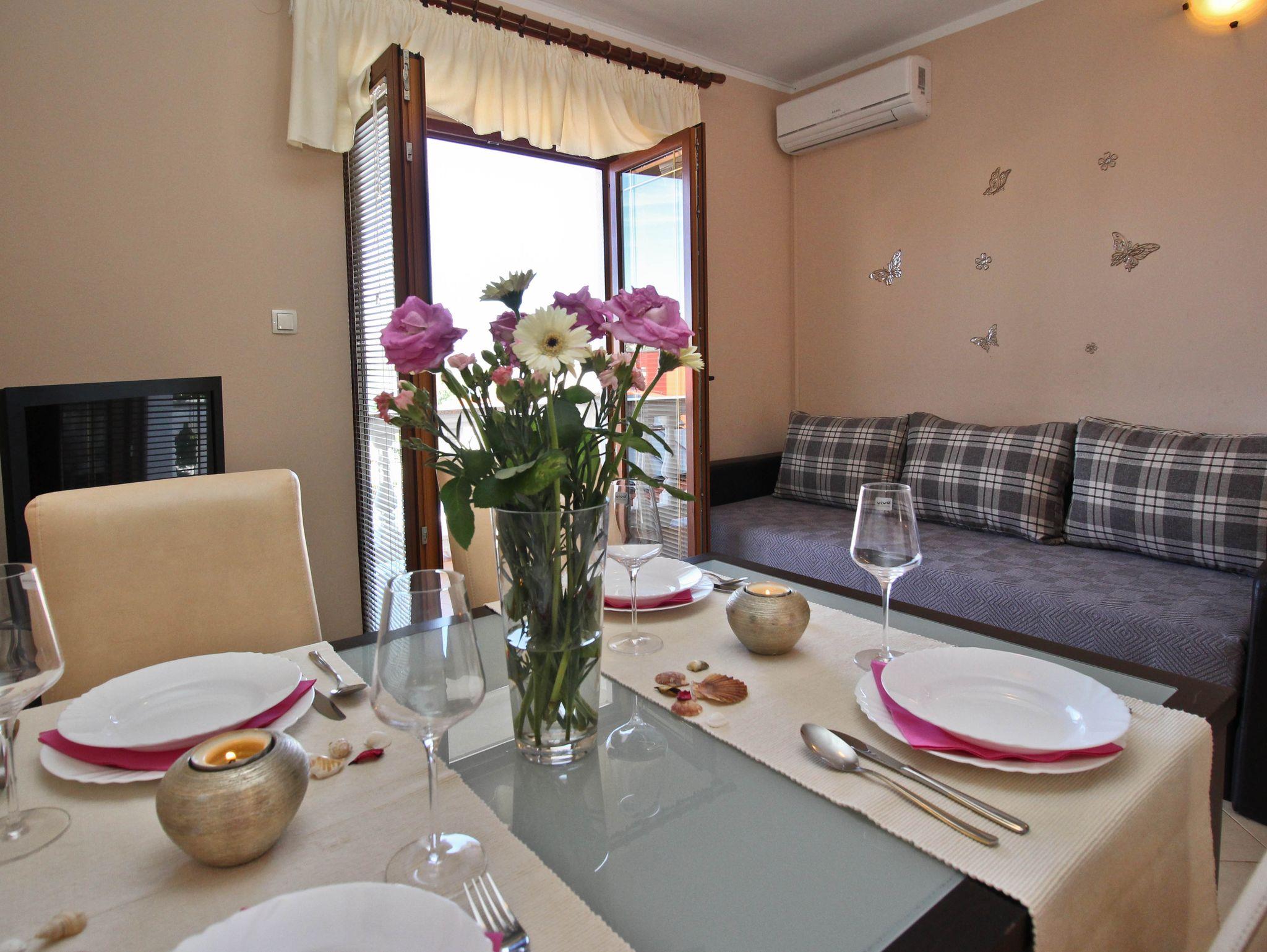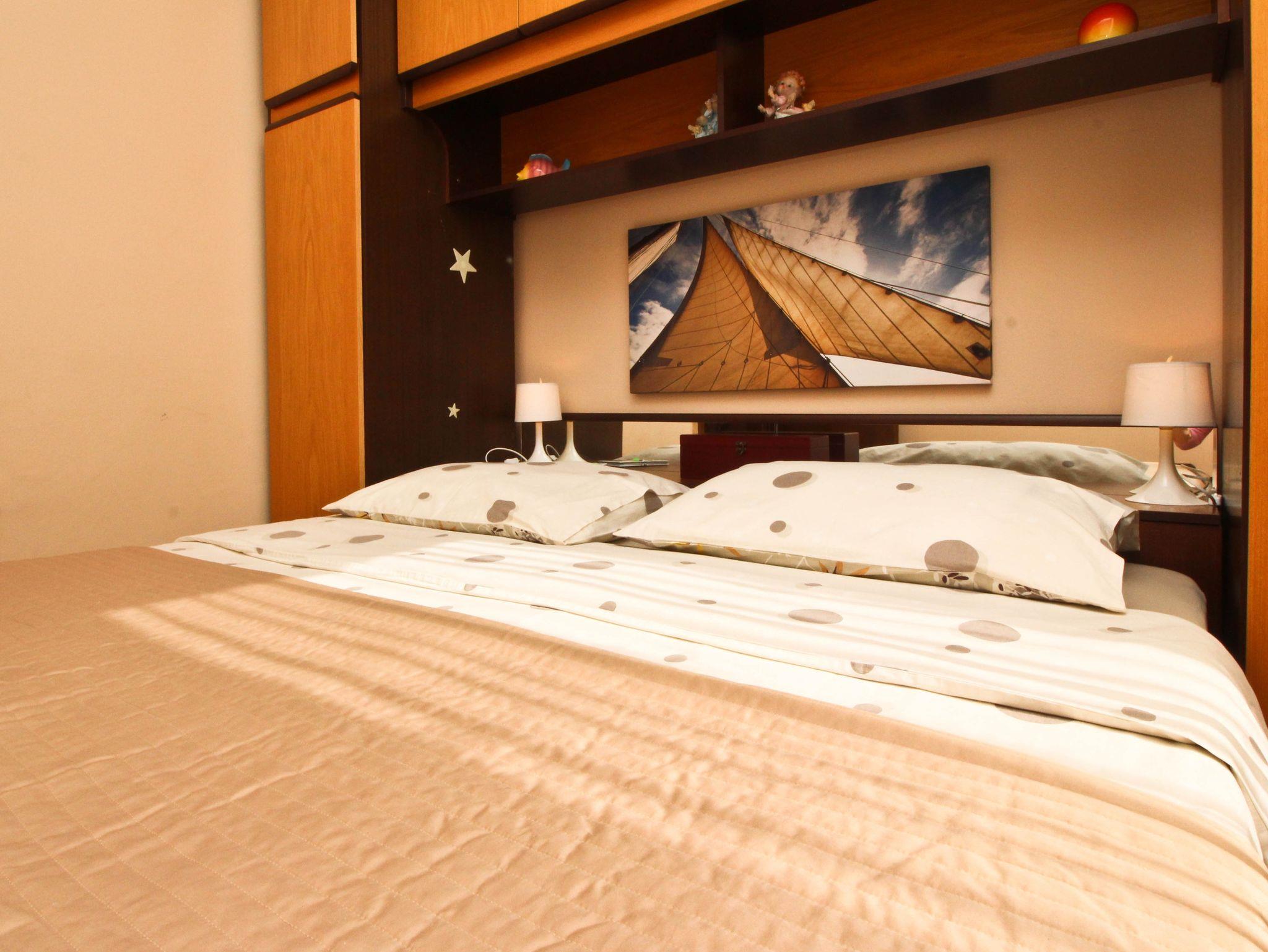 Ferienwohnung bietet Platz für 8 Gäste. Die Betten sind in Schlafzimmern, die es 3 gibt, und in Wohnzimmer, innerhalb einer Gesamtfläche von 80m2, angeordnet. Die Gäste haben einen eigenen Balkon zur Verfügung, auf der sie in warmen Sommernächten genießen können. Das Apartment bietet Meerblick. Es ist erlaubt, Speisen auf dem Gemeinschafts-Grill vorzubereiten. IM PREIS INBEGRIFFEN: Kurtaxe, Endreinigung, Klimatisierung, Parkplatz, Internet. Die Verfügbarkeit zusätzlicher Dienstleistungen in Ihrem reservierten Termin und die Preise derselben (falls nicht aufgeführt) müssen im Voraus überprüft werden. Zusätzliche Dienstleistungen die in der Zahlungsaufforderung nicht aufgeführt sind werden direkt beim Vermieter bezahlt, angenommen der Gast nutzt auch diese.