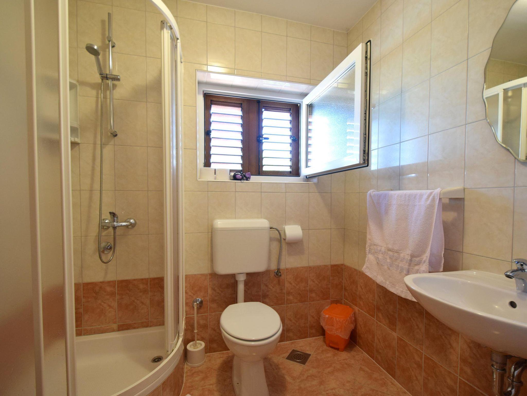 Ferienwohnung bietet Platz für 6 Gäste. Die Betten sind in Schlafzimmern, die es 3 gibt, innerhalb einer Gesamtfläche von 95m2, angeordnet. Die Gäste haben eine eigene Terrasse zur Verfügung, auf der sie in warmen Sommernächten genießen können. Das Apartment bietet Meerblick. Es ist erlaubt, Speisen auf dem Gemeinschafts-Grill vorzubereiten. In der Unterkunftseinheit besteht die Möglichkeit des Mitbringens von Haustieren gegen Aufpreis. IM PREIS INBEGRIFFEN: Kurtaxe, Endreinigung, Klimatisierung, Zentralheizung, Parkplatz, Internet, Bügeleisen, tragbarer Grill. VERBINDLICHE ZUSÄTZLICHE KOSTEN: Aufzahlung für Kurzaufenthalte (prozentualer Zuschlag pro Nächtigungsanzahl: 30% - 1, 20% - 2, 10% - 3). UNVERBINDLICHE ZUSÄTZLICHE KOSTEN: Haustiere (10,00 € pro Nacht). Die Verfügbarkeit zusätzlicher Dienstleistungen in Ihrem reservierten Termin und die Preise derselben (falls nicht aufgeführt) müssen im Voraus überprüft werden. Zusätzliche Dienstleistungen die in der Zahlungsaufforderung nicht aufgeführt sind werden direkt beim Vermieter bezahlt, angenommen der Gast nutzt auch diese.