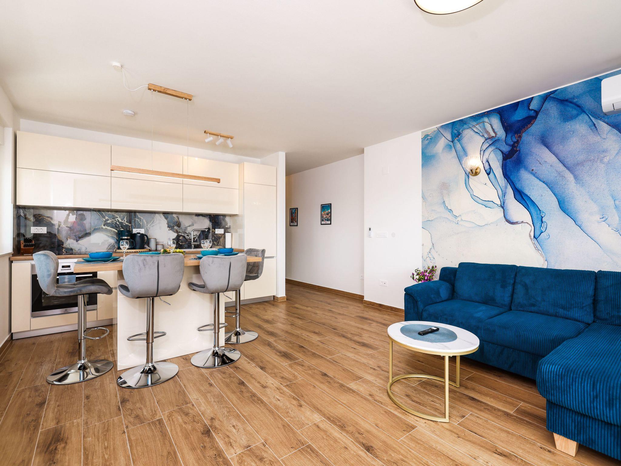The location of the flat in Turanj offers the perfect starting point to discover the beauty of Dalmatia. Just a few minutes' walk away you will find the sparkling sea and the beach, which invites you to spend relaxing days in the sunshine.