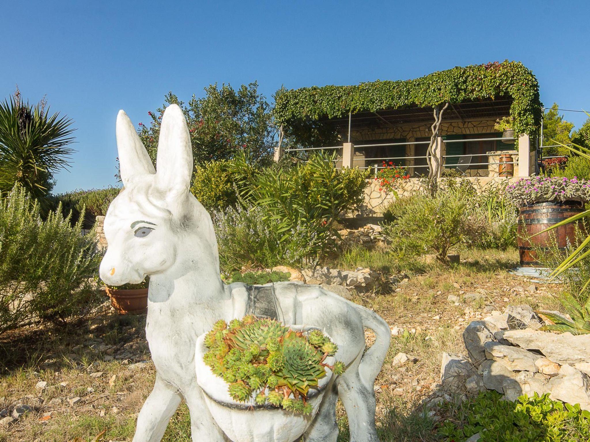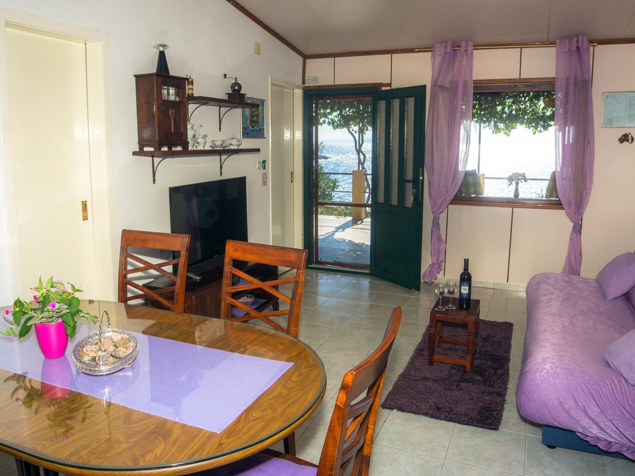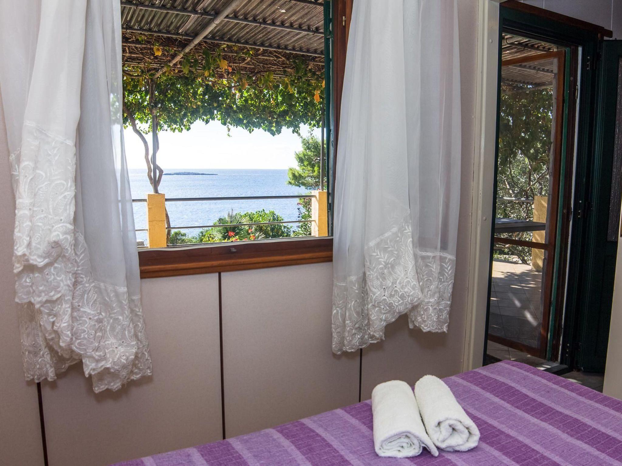 The renovated, one-storey house provides 45m² of space for up to five people. The two bedrooms have a double and two single beds and there is a sofa bed in the living room, as well as a TV, fan and a dining table with a bench and chairs. Next to it there is the separate kitchen with a hob, oven, fridge, dishwasher, kettle and cooking utensils. The bathroom provides a shower, WC and hairdryer.