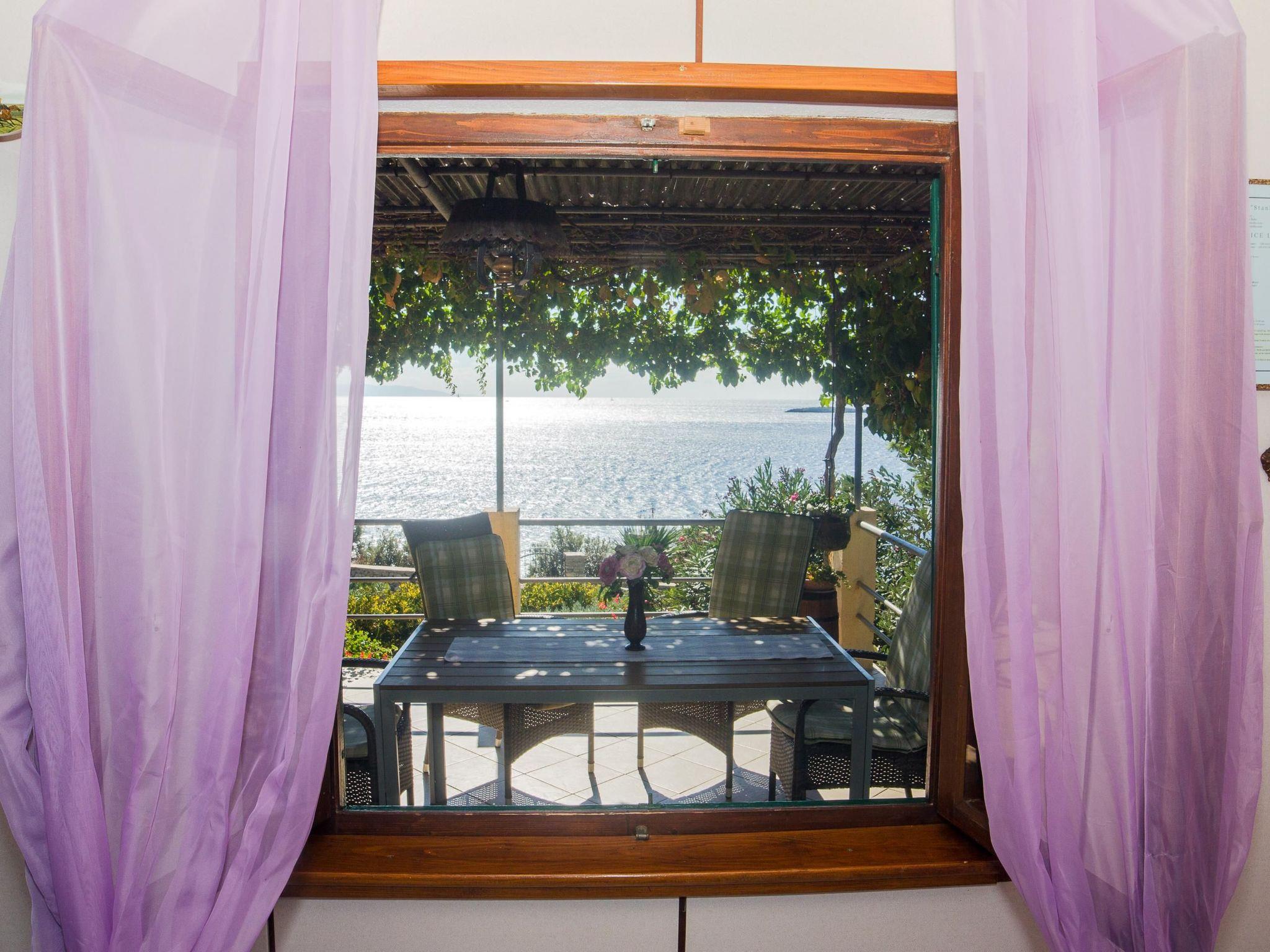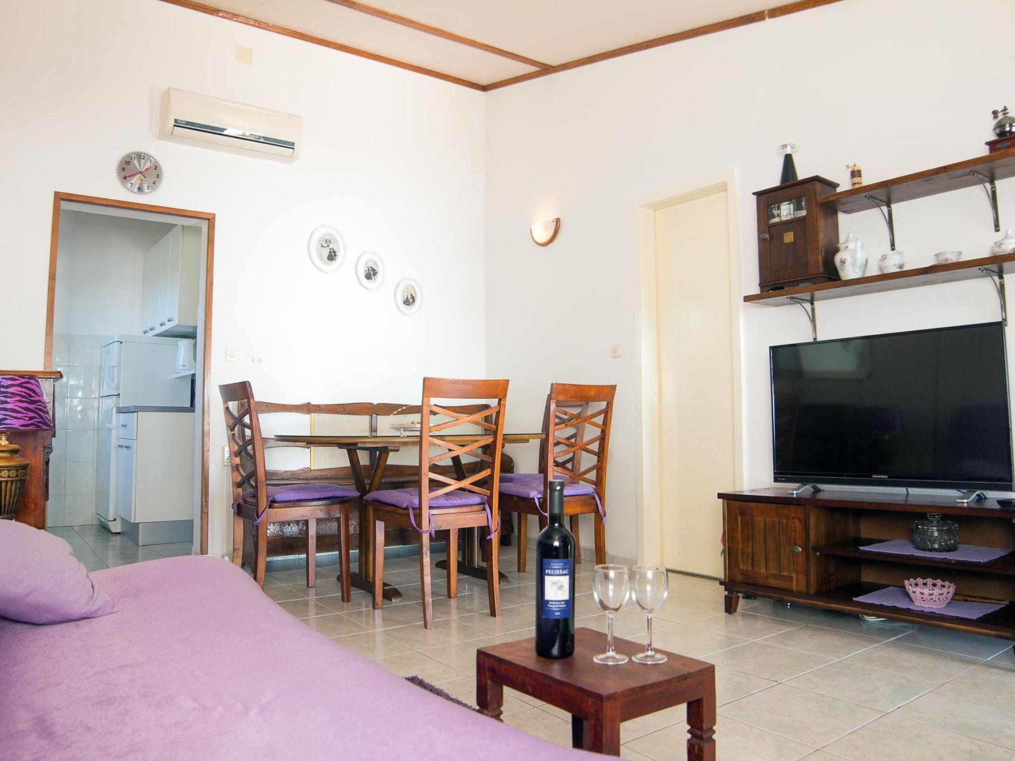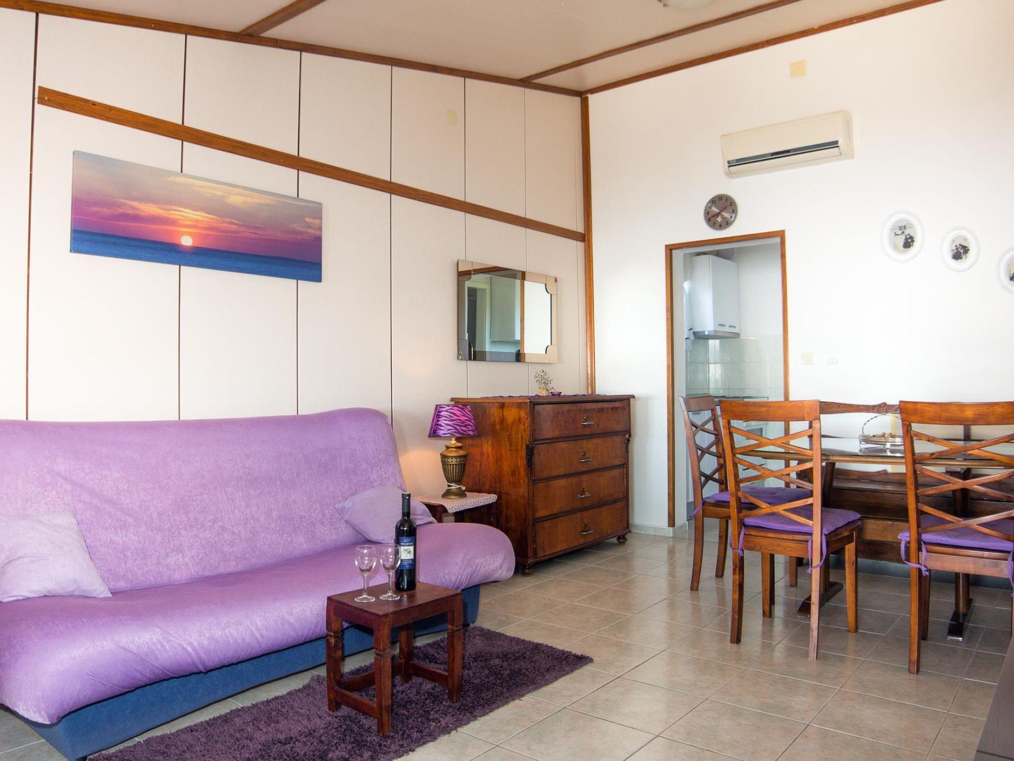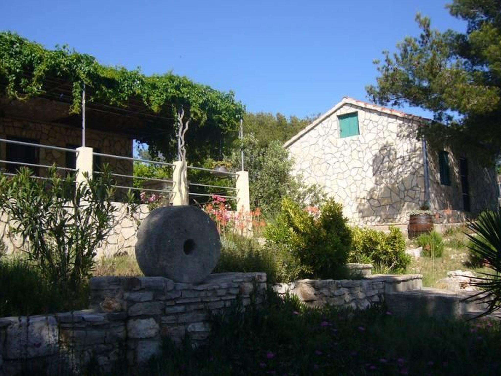 The renovated, one-storey house provides 45m² of space for up to five people. The two bedrooms have a double and two single beds and there is a sofa bed in the living room, as well as a TV, fan and a dining table with a bench and chairs. Next to it there is the separate kitchen with a hob, oven, fridge, dishwasher, kettle and cooking utensils. The bathroom provides a shower, WC and hairdryer.