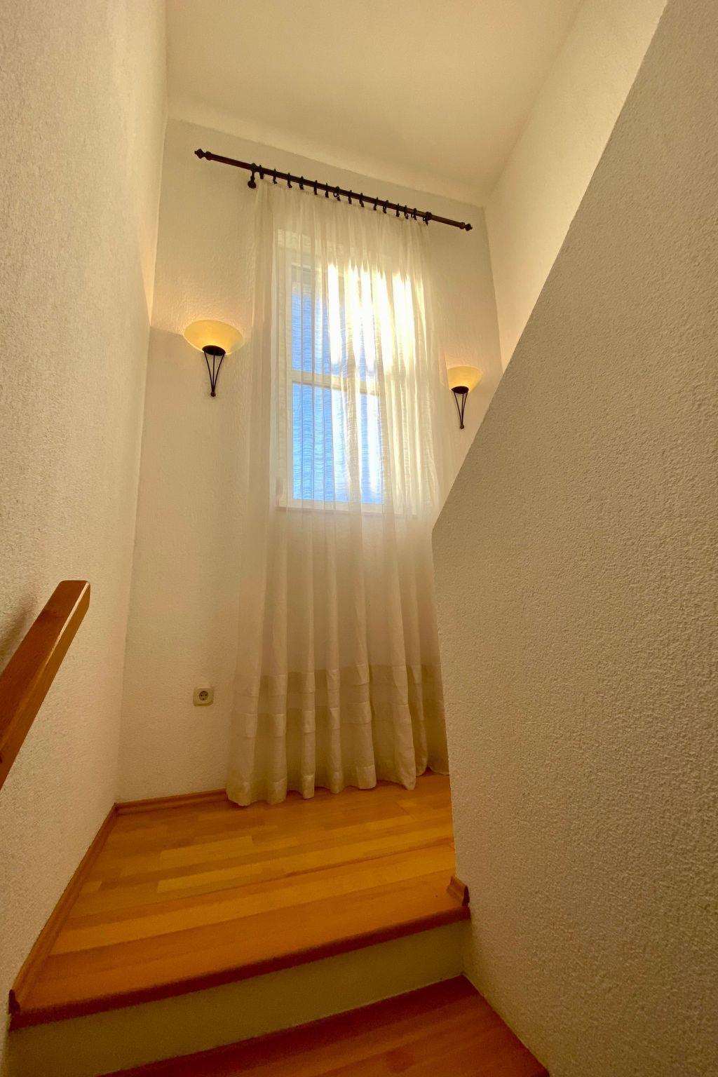 Following a complete renovation in 2023, the interiors of Villa Theresa are a real gem. Equipped with a sauna, a heated whirlpool and a heated pool with counter-current system, the house leaves nothing to be desired. Two separate residential units each offer a living room, dining area, kitchen, two bedrooms, a bathroom, terrace and a large balcony. Particularly noteworthy is the flat on the upper floor with its summer kitchen on the south-facing terrace and further balconies, which promise additional comfort and private outdoor areas.