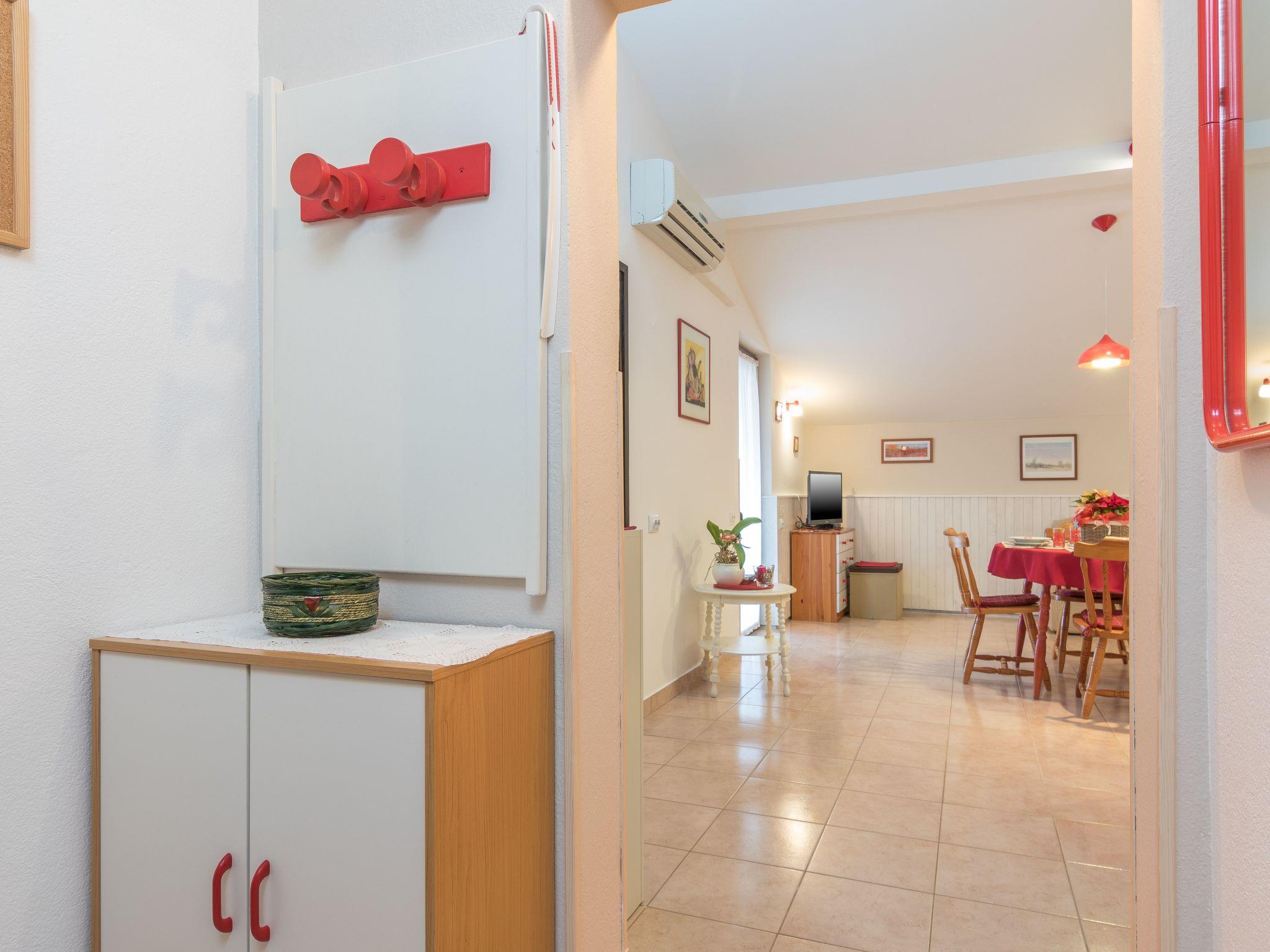 Flat Natalia 2 for 2 persons is located on the 1st floor of the house on a 47m2 large area and has a kitchen-living room with dining table and couch, bathroom with shower/WC, separate toilet, a bedroom with double bed and covered balcony with seating and enchanting view. Air conditioning and WLAN are available and included in the price.