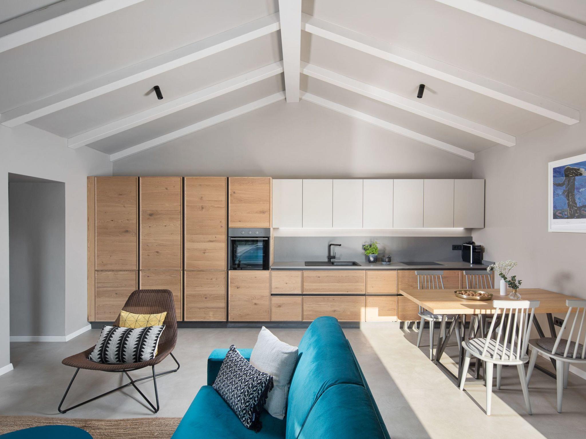Inside, you'll find a thoughtful 65sqm layout that skilfully combines comfort and function. The villa is characterised by a spacious open-plan living room that is seamlessly connected to the kitchen and dining area, making cooking and relaxing together particularly enjoyable. A bedroom that can be darkened guarantees peaceful nights and the amenities such as air conditioning, underfloor heating, washing machine and tumble dryer ensure carefree living.