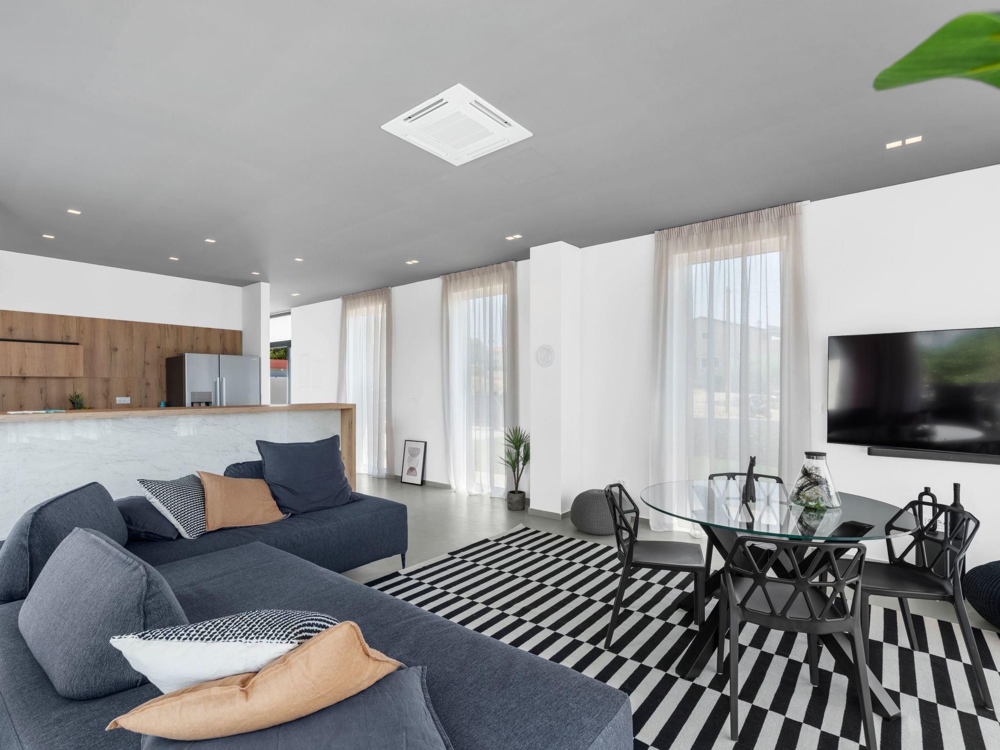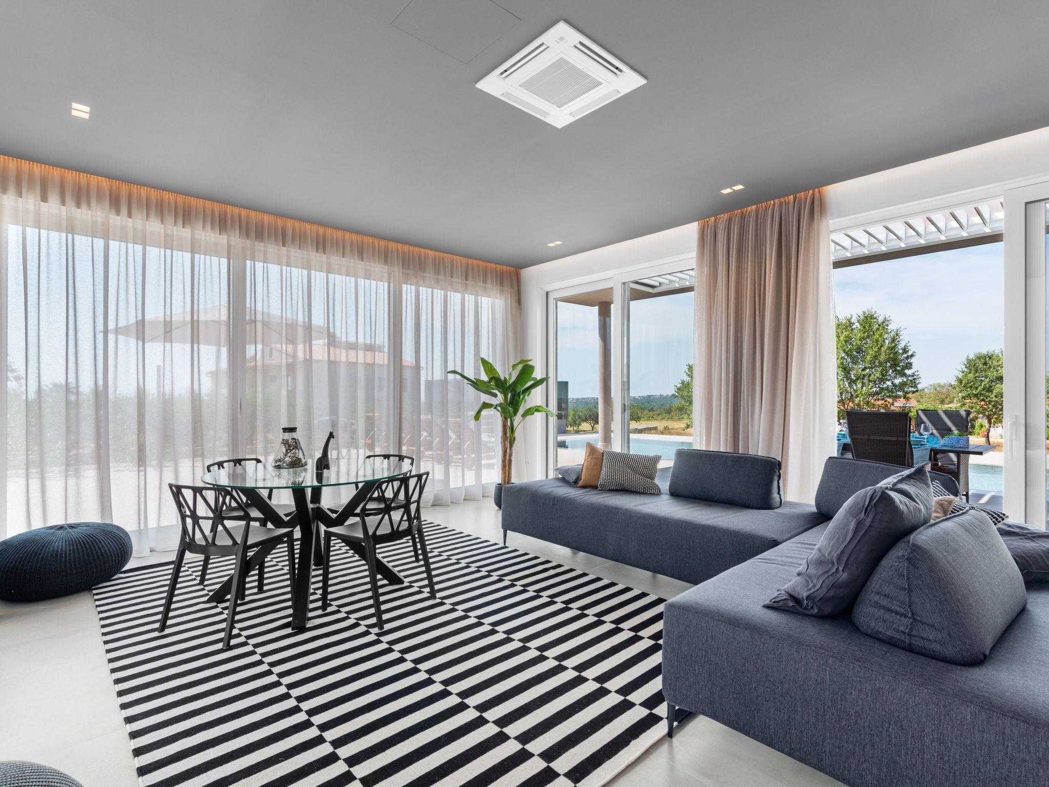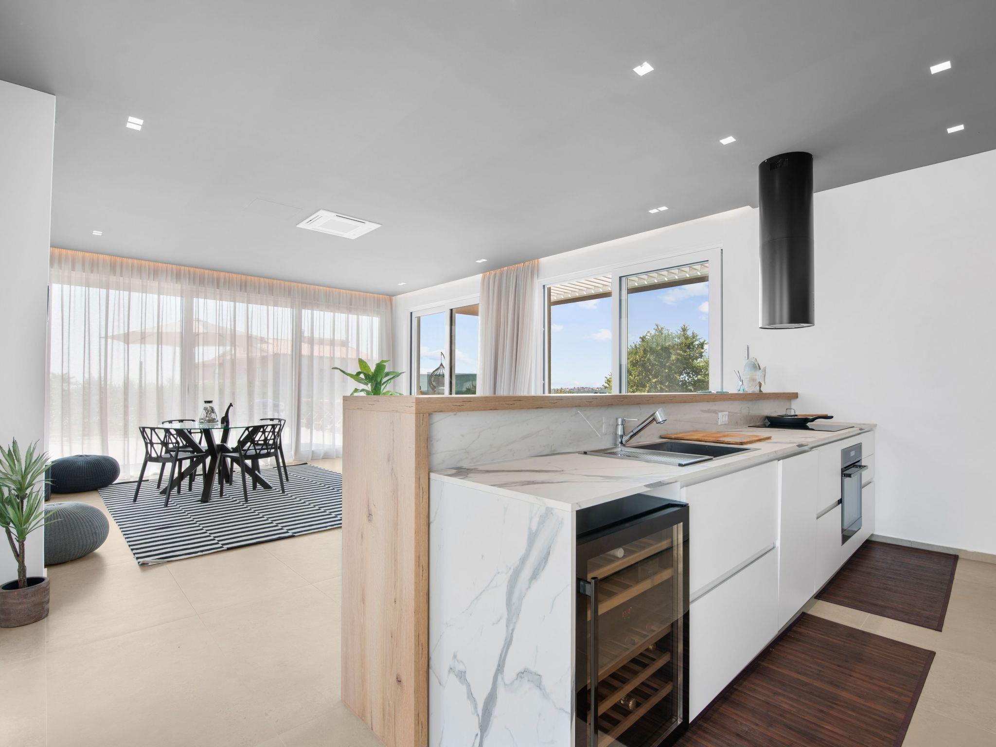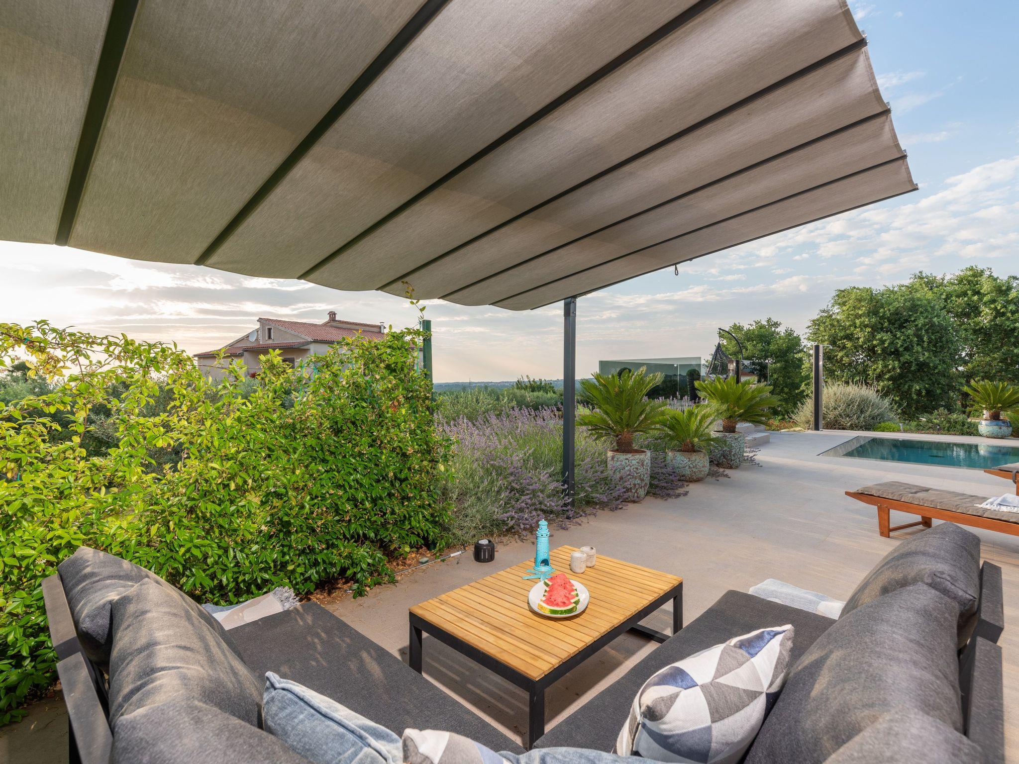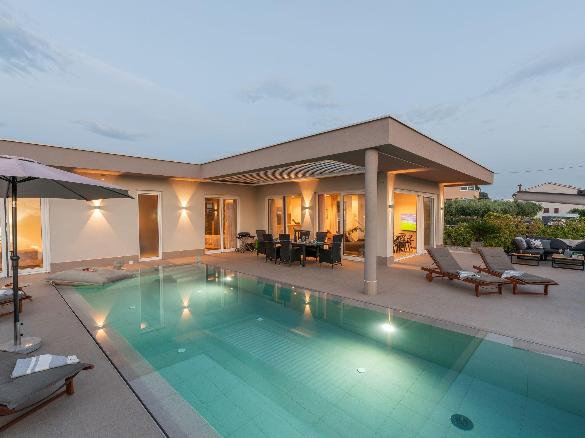Villa Serena is a modern holiday home in Stranici, only 10 minutes by car from the nearest beach and from Porec. It is located on the edge of the village, on its own fully fenced garden of 1280 m2, where guests have at their disposal a 35m2 outdoor pool with salt water, a covered terrace with table for outdoor dining, barbecue and lounge furniture. A swing is located on the elevated terrace.