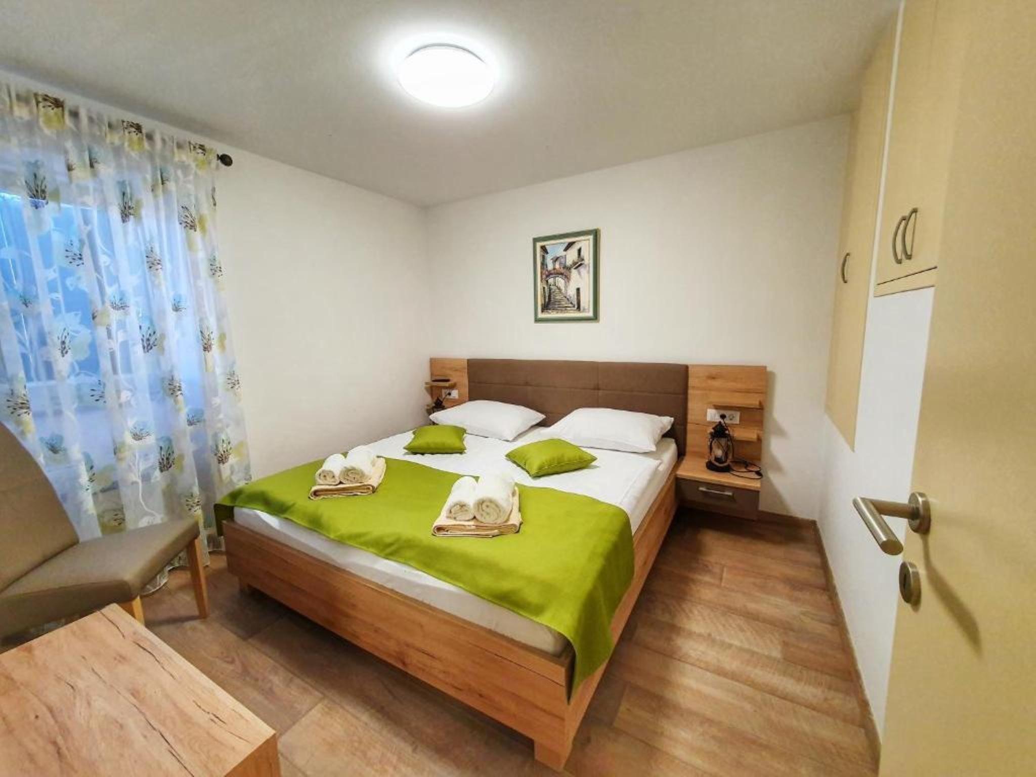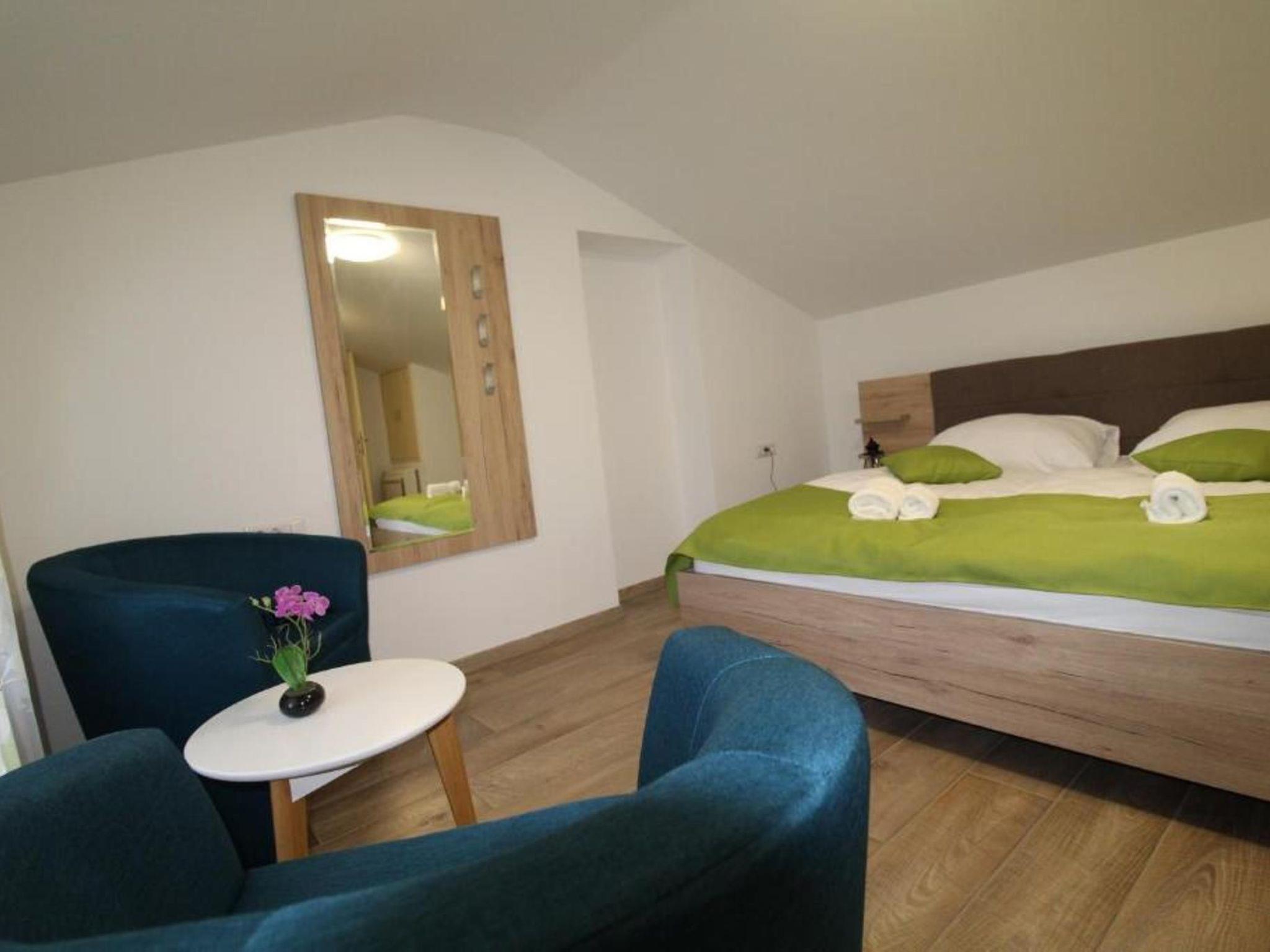 Residence Daniela is located in a typical Istrian village Veleniki, only 5 km from Porec and the sea. 100m from the flat there is a 40 square metre swimming pool with sun loungers, parasols and jacuzzi for common use. Parking is private on the property, directly in front of the house, the famous restaurant-tavern is directly opposite and several supermarkets are about 4 km away. Breakfast is available by arrangement in the restaurant at an extra charge.