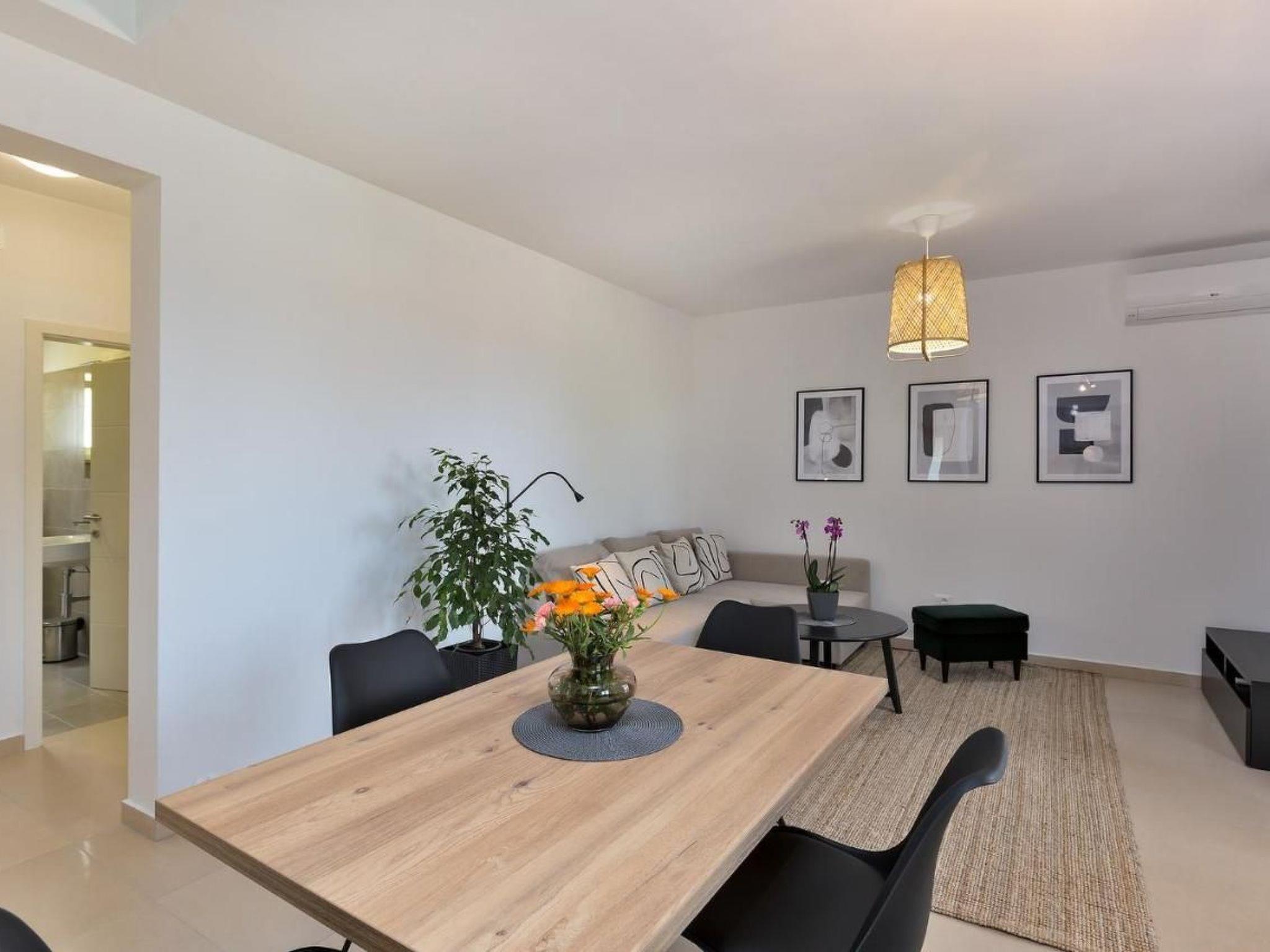 In the upper part of the house is the modern flat for 4-6 persons and consists of a living room with fully equipped kitchen, dining table, pull-out couch and covered balcony with beautiful sea view, two bedrooms and bathroom with shower/WC. Air conditioning and WLAN are available on both floors and are included in the price