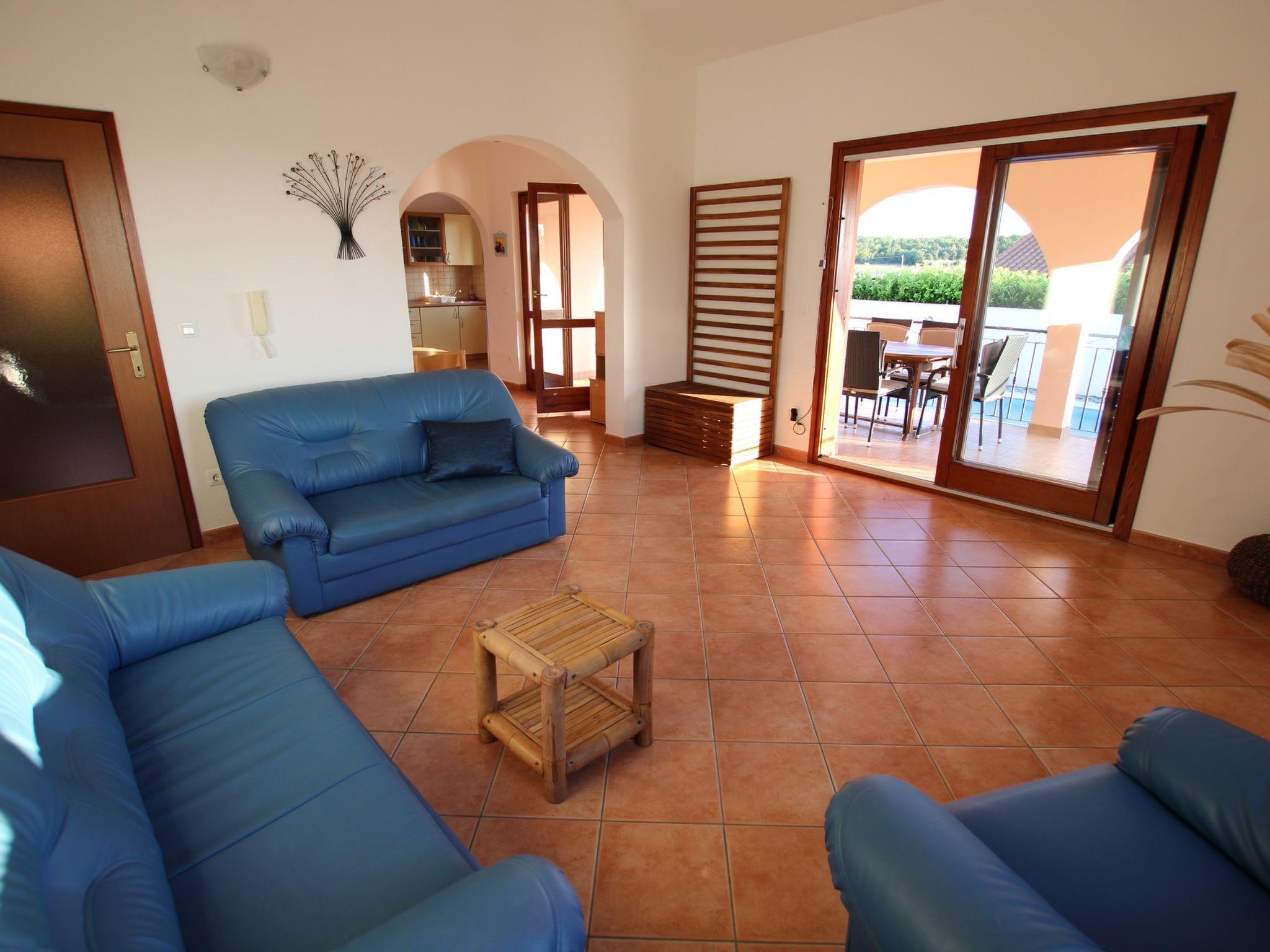 The house covers a 130 m2 ground floor with access to a 36 m2 pool with a depth of 115 cm to 170 cm.Three bedrooms are air-conditioned. One bedroom has a double bed. The second bedroom has two separate beds. The third bedroom has a bunk bed suitable for two children. The bathroom with shower, toilet and sink is located between the bedrooms, and there is also a separate toilet with a washing machine.The kitchen is equipped with a stove with 4 electric plates, an oven, a refrigerator with an icebox, a kettle and a coffee machine. A table and 6 chairs are located in the continuation of the kitchen, as well as the living room with direct access to the covered terrace and pool.The covered terrace is equipped with a table and chairs. There is a panoramic view of green olive groves and red Istrian fields.In the garden there is a charcoal grill and garden furniture with several deckchairs.Ideal for families!