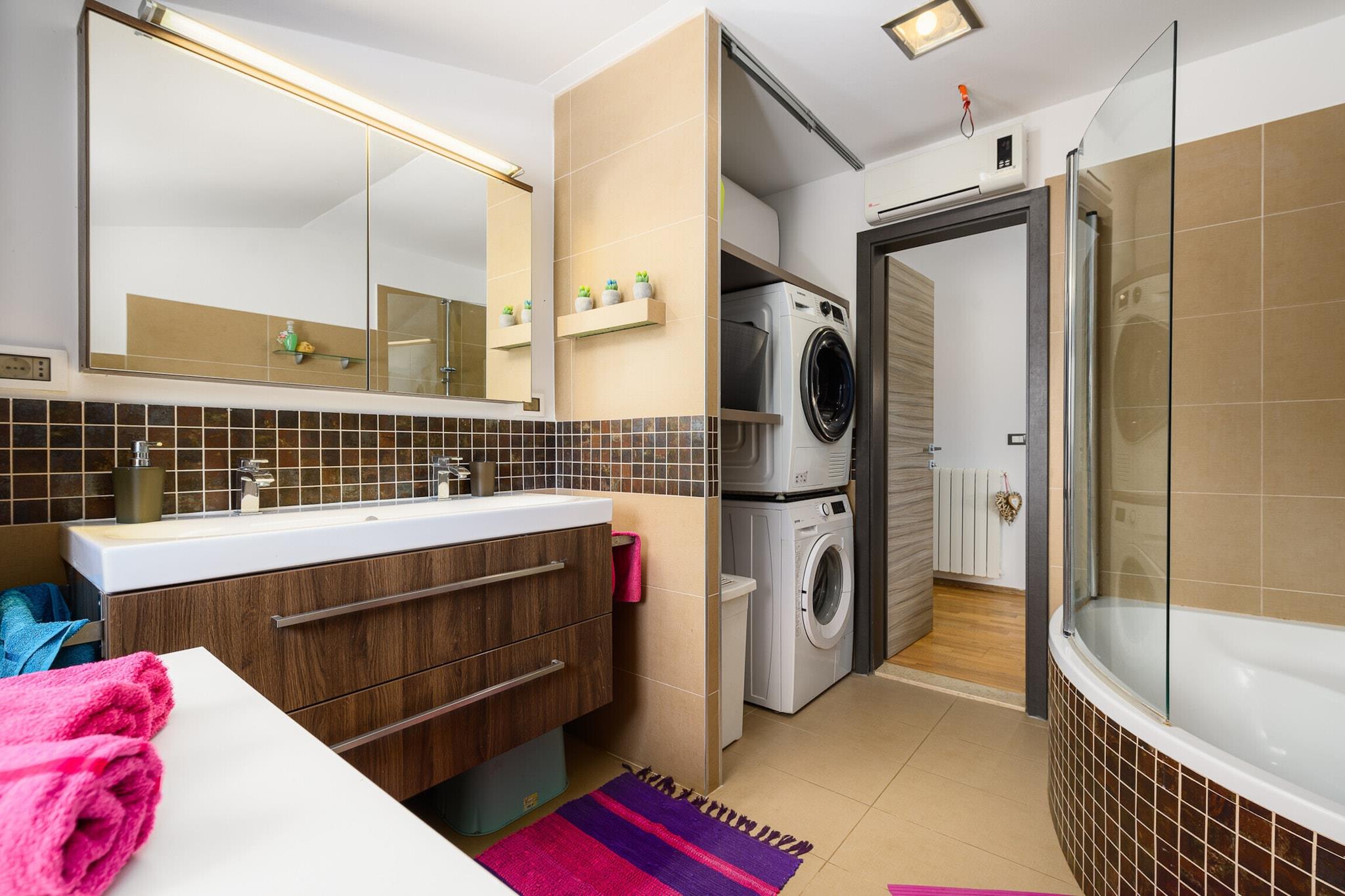The lejlighed i Dracevac har 1 soveværelse(r) og kapacitet til 3 person(er). Bolig på 88 m² nice og er moderne, med udsigt til have. Er beliggende 0 m fra golfbanen, 8 m fra supermarkedet "Porec", 3 km from the restaurant "Mica konoba, Fuskulin", 6 km fra vandland "Aquacolors Porec", 8 km fra busstationen "Porec bus station", 8 km fra byen "Porec center", 9 km fra stenstranden "Zelena Laguna", 10 km fra stranden "Marea beach Spadici, Porec", 10 km fra forlystelsesparken "Funtana Dino Park", 21 km fra floden "River Mirna", 45 km fra naturparken "Fazana- Brijuni Islands", 50 km fra togstationen "Pula train station", 53 km fra lufthavnen "Pula Airport" og er beliggende i en ideel for familier område og i en forstad. Tilbyder have, terrassemøbler, indhegnet grund, vaskemaskine, grill, kamin, strygejern, internet (wifi), hårtørrer, altan, børneområde, varmepumpe, aircondition, utildækket parkering til den samme bygning, 2 Fjernsyn, satellit (Sprog: Engelsk, Tysk). The amerikanske køkken, på keramiske kogeplader, med service og køleskab, mikroovn, ovn, fryser, opvaskemaskine, tallerkener/bestik, køkkenredskaber, kaffemaskine, brødrister og kedel.