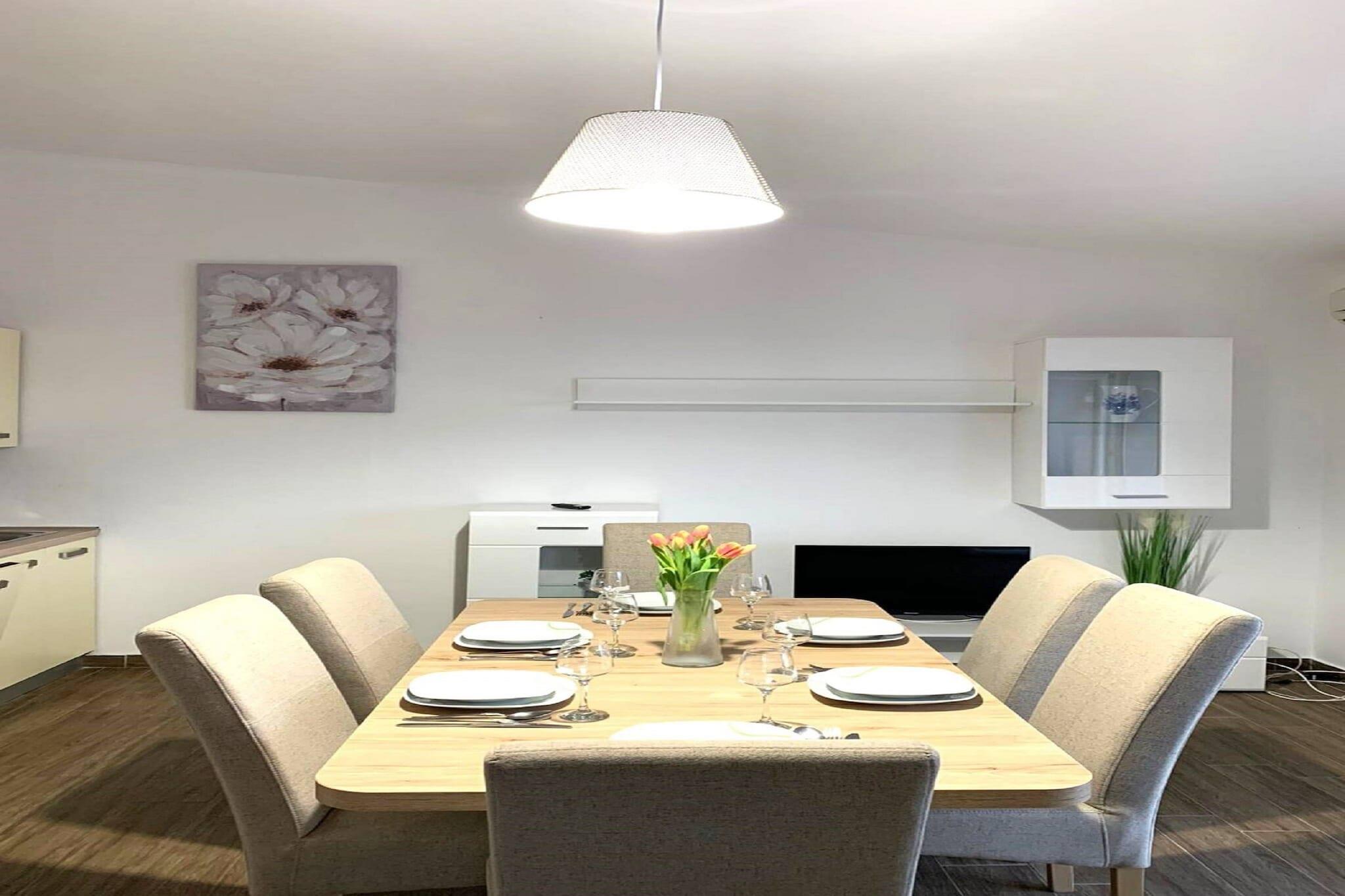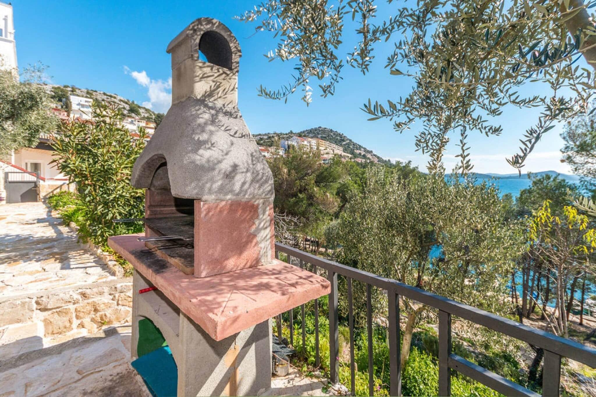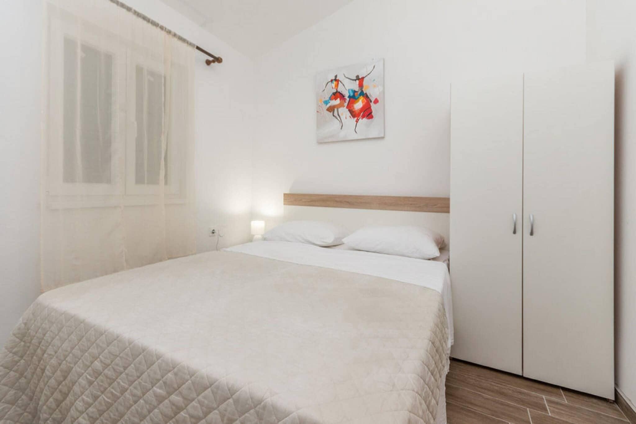 Velkommen til denne hyggelige lejlighed i Drage, der tilbyder en fantastisk beliggenhed lige ved vandet i et familievenligt område. Denne lejlighed er kompakt, men effektiv på 50 m² og kan rumme op til 6 personer. Den har 2 soveværelser og en komfortabel opholdsstue, hvilket gør den perfekt til familier eller små grupper. Det åbne, elektriske køkken er fuldt udstyret med køleskab, mikrobølgeovn, ovn, opvaskemaskine, fryser, kaffemaskine og alt nødvendigt køkkenudstyr. Beliggenheden er virkelig exceptionel, da du kun er 40 meter fra en sandstrand, en restaurant og en café - perfekt til ubesværet ferieliv! Lejligheden har en behagelig terrasse på 20 m² og en balkon med havemøbler med udsigt over den indhegnede have. Gæsterne kan nyde udendørs madlavning med den medfølgende grill og slappe af ved pejsen (sandsynligvis en udendørs pejs, givet størrelsen). Komforten inkluderer aircondition i stuen, Wi-Fi-internetadgang og udendørs parkering på ejendommen. Ejendommen er veludstyret med faciliteter som vaskemaskine, strygejern, hårtørrer og tv. Du finder ekstra bekvemmelighed med myggenet i soveværelset og en elektrisk myggemaske. Lejligheden ligger tæt på den umiddelbare havnefront og er bekvemt placeret i nærheden af et supermarked (200 m) og den charmerende by Pakoštane (3 km). Naturelskere vil sætte pris på nærheden til naturparken Vrana-søerne (3 km) og flere nationalparker, hvilket gør den til en god base for at udforske den dalmatiske kyst.