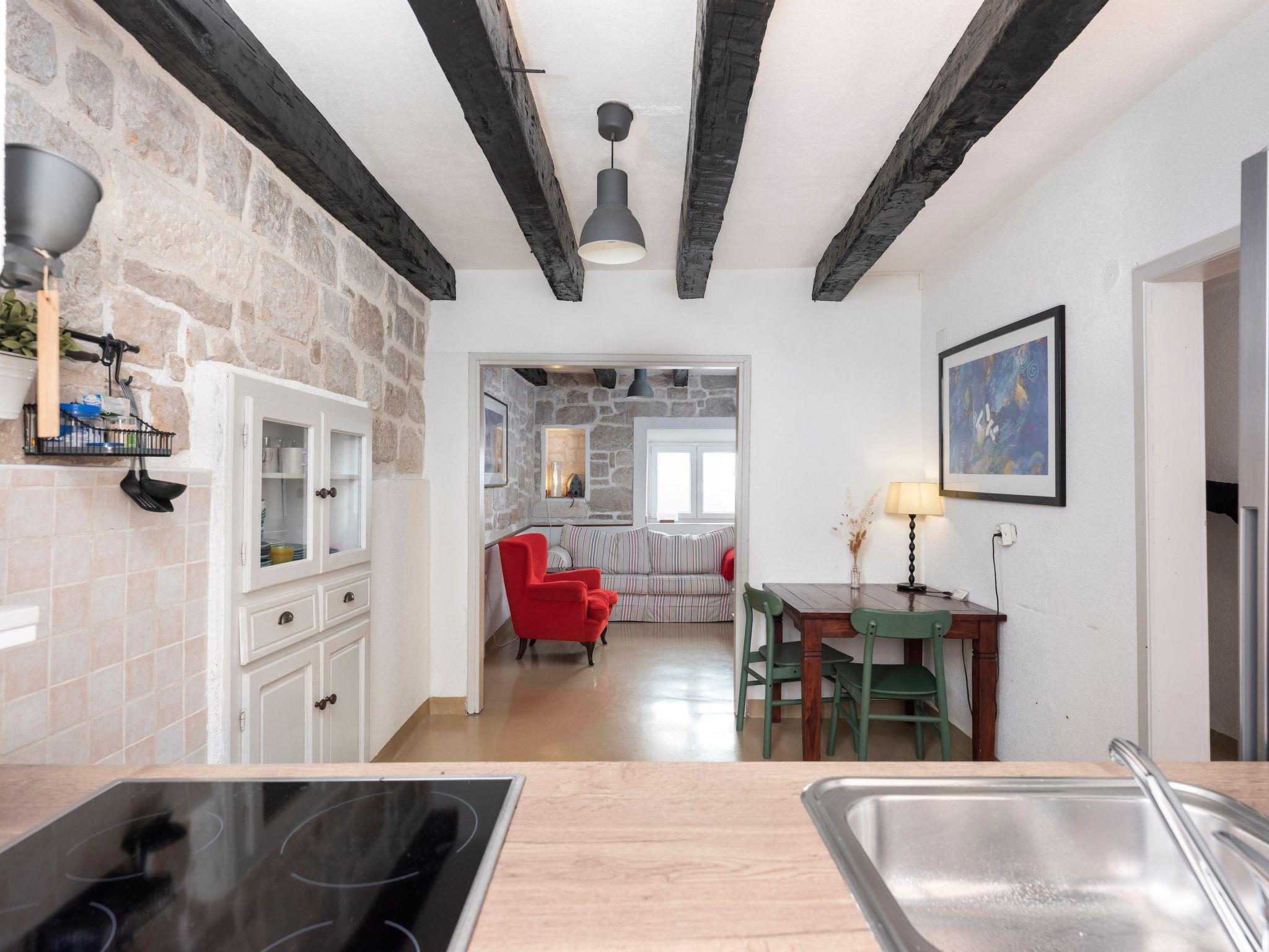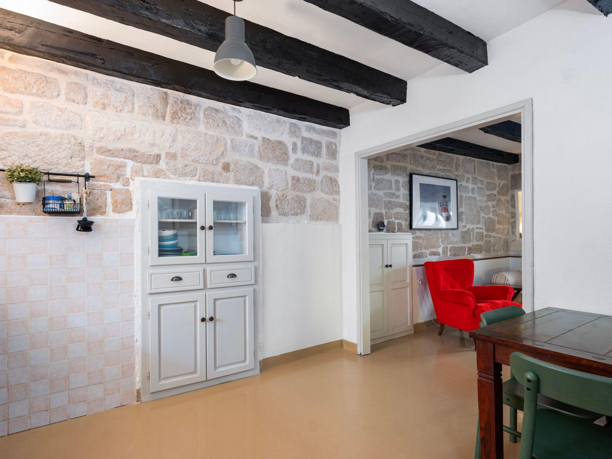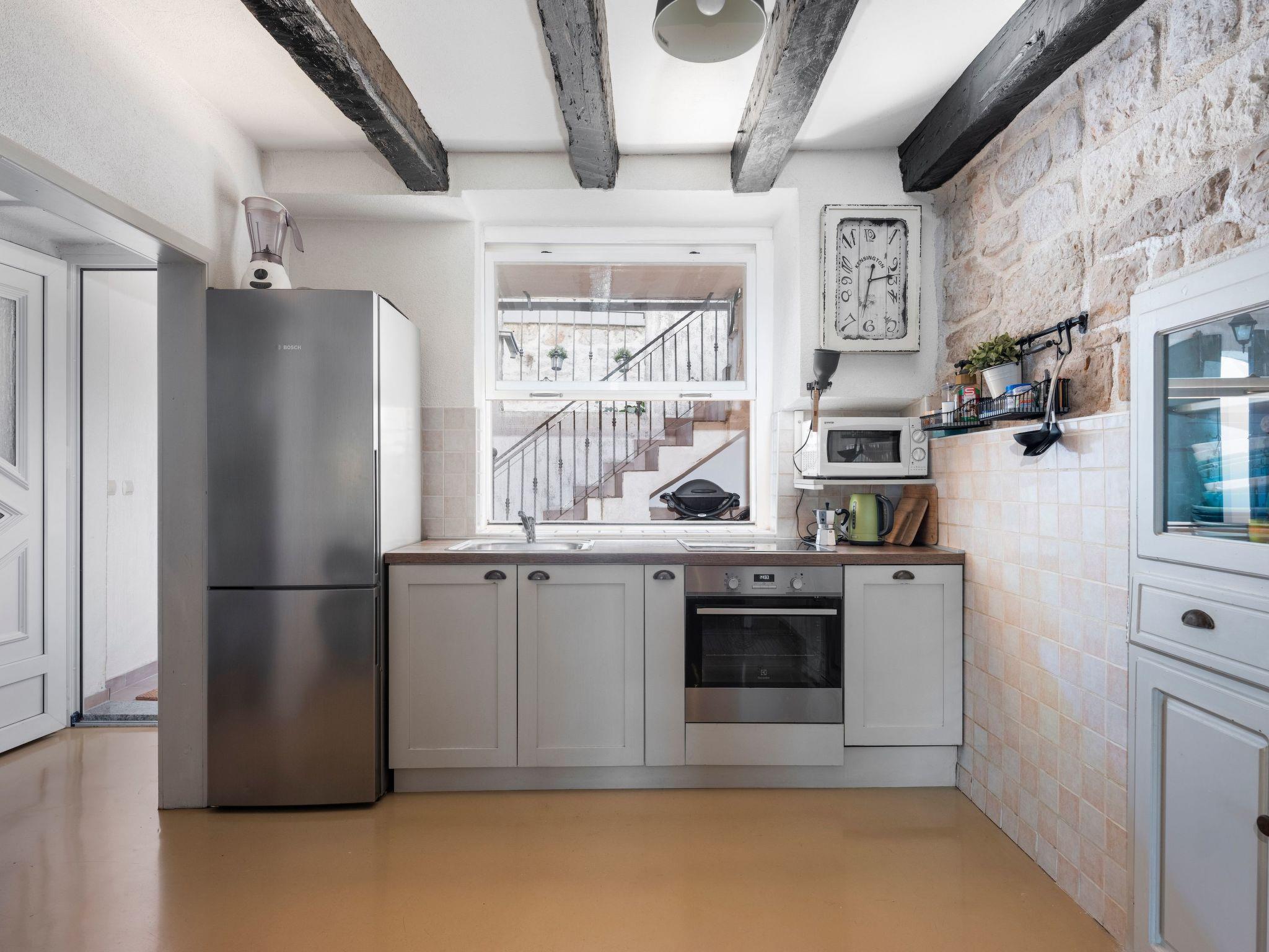 Your holiday house is less than 30 metres from the blue sea and about 300 metres from the nearest beach with crystal clear water. The cafés and restaurants, bars, bakeries and colourful markets of the old town are about 150 metres away. A boat trip to the islands of the nearby Kornati National Park should definitely be on your trip list.