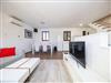 The generous 140m² apartment (68m² indoor space plus 72m² terrace) on the ground floor of the two-storey stone house consists of a living and dining room flooded with daylight and with an integrated open kitchen, two bedrooms and a modern daylight bathroom. The living room provides a spacious corner sofa suite, a wide flatscreen TV with satellite channels, a DVD player, a stereo system and a dining table with a glass top and six chairs. The white glossy built-in kitchen next to it is equipped with a four-zone electric hob, a fridge with a freezer compartment, a microwave, a toaster and ample crockery and cutlery. Of the two bedrooms, one is furnished with a double bed (160 x 200cm) and the other with a bunk bed (each 90 x 200cm) and an additional single bed of the same size. The sofa in the living room can be converted into a further double bed (140 x 200cm). The daylight bathroom with light tiles is fitted with a shower cubicle, a washbasin with a wall mirror and a toilet. A washing machine is available in the house for shared use. A highchair can be provided on request. Plenty of bed linen and towels are provided and the reliable wireless Internet connection in the apartment can be used free of charge.